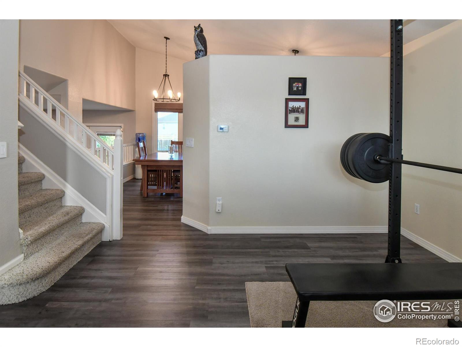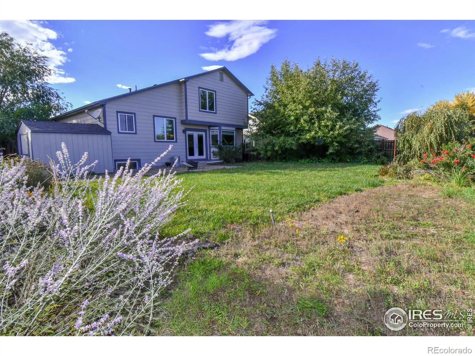 NO HOA! Well maintained home with many upgrades. Luxury vinyl plank flooring on the main level. Custom light fixtures throughout. Tall vaulted ceilings on main level. No HOA! Low Weld County taxes. Greenbelt behind the back fenced yard. Huge beautiful trees give shade and beauty. Large corner lot with large front and back yard. New roof with upgraded shingles installed in 2023. Gas range in kitchen. Unfinished basement. Central AC. 2 car attached garage has metal tool boxes and nice wooden shelves throughout. Brand new grocery store and shopping area recently built close by. Beautiful lawn and flower gardens in the front and back.
