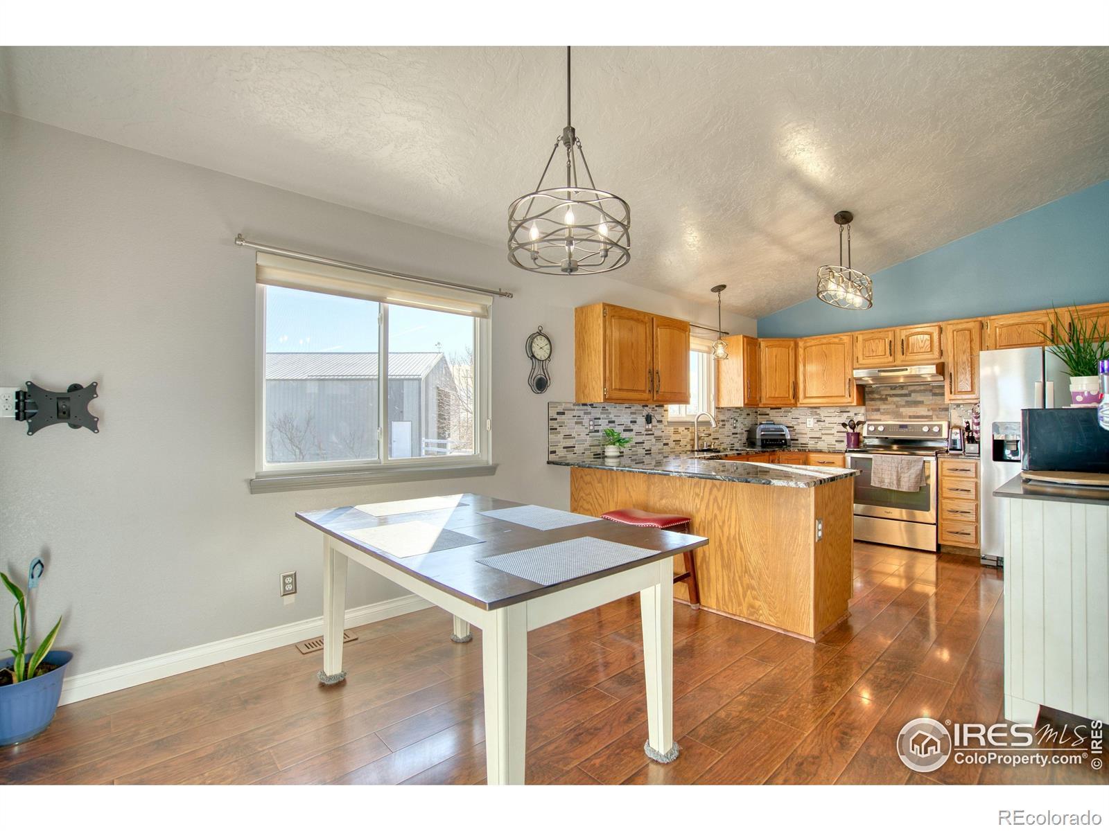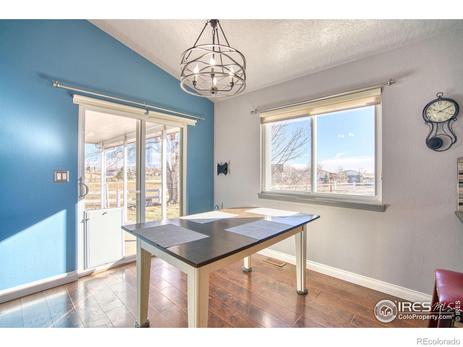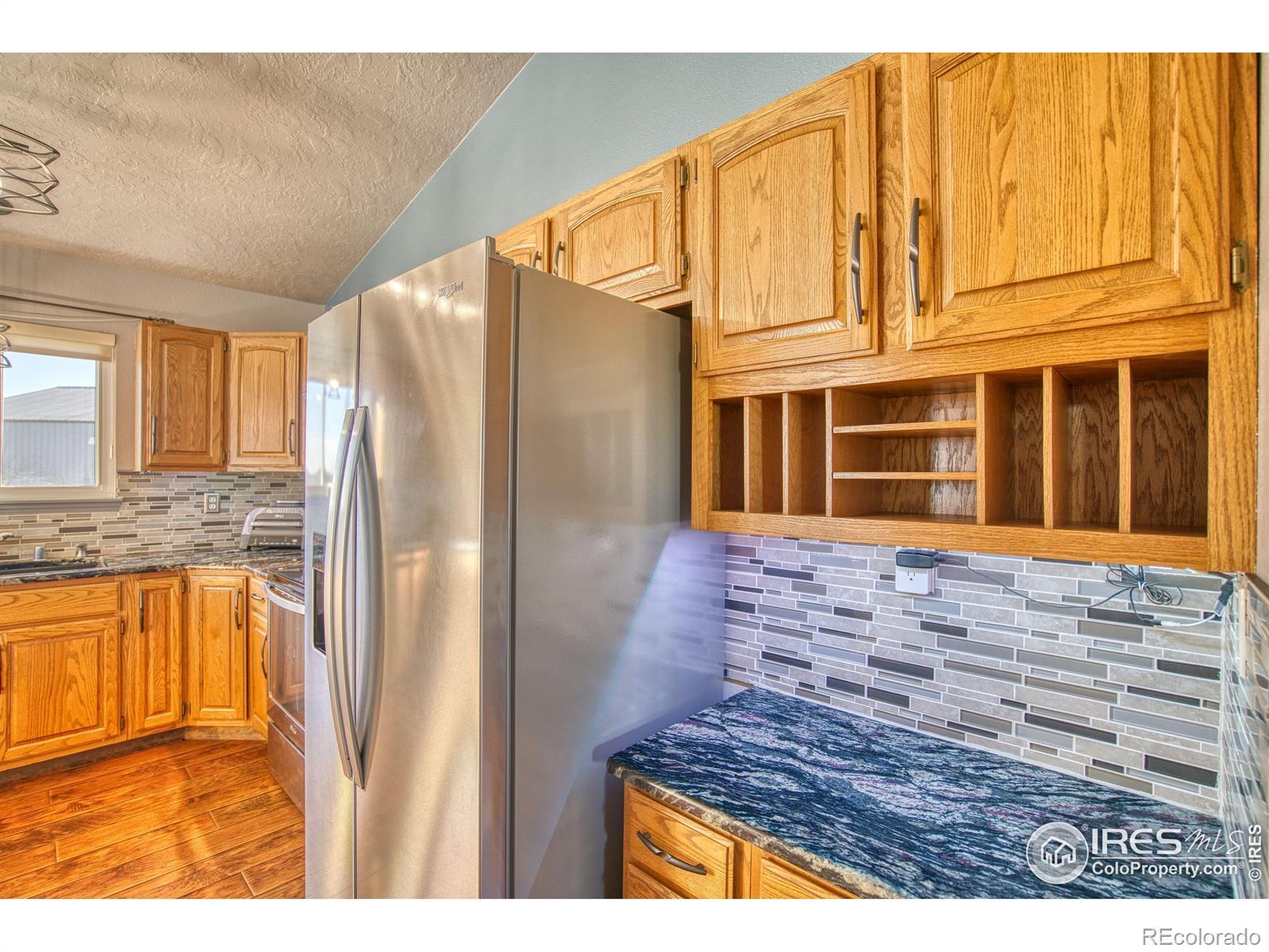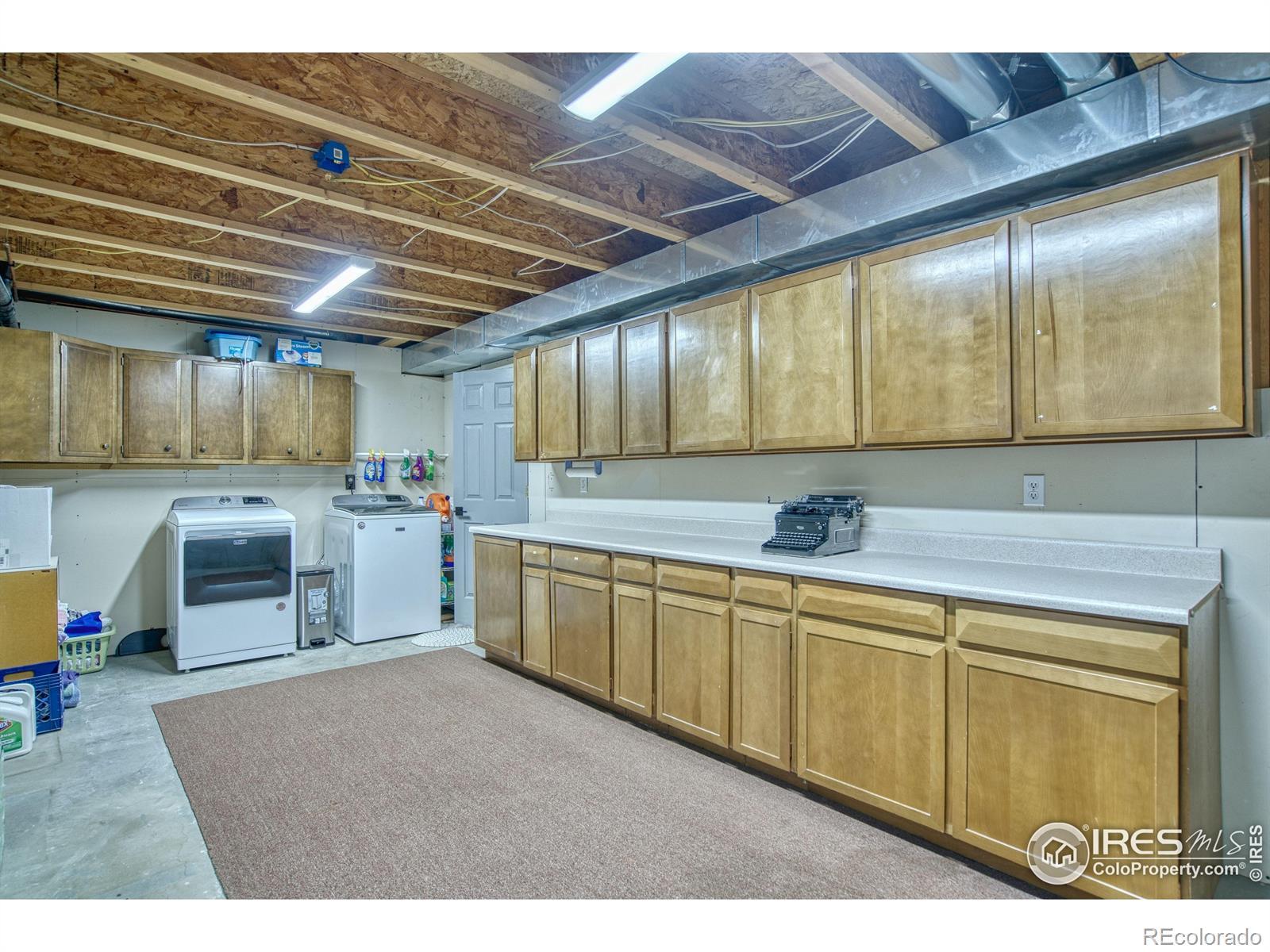 This well-maintained ranch-style home with a finished basement offers the ideal balance of country & convenience. Situated just outside of town yet within walking distance of Kersey, this property provides access to local amenities & high speed fiber internet while giving you space to enjoy! The main level features a spacious living room providing a comfortable gathering space, three main-level bedrooms include a primary suite with an ensuite bath and two closets, a second full bathroom and an attached two-car garage. Completed with open kitchen and dining area with granite countertops, under-cabinet lighting, and a sliding glass door with custom-installed pet door to the patio and fenced backyard. The finished basement expands the living space with a large family room with flexible use options, custom dimmer lights for the hallway, large 4th bedroom with customizable accent lighting, and a 5th bedroom is currently configured as a walk-in closet for the adjacent bedroom. The additional bathroom, large laundry & storage room, 2nd storage room with workbench & shelving round out the basement, giving you that extra inside space you always need. Outdoor features include a patio off the dining area that is wired for a hot tub and includes a mounted TV, creating an inviting space for outdoor enjoyment and entertainment. The landscaped yard offers a sprinkler system, mature trees, a fenced backyard, and a separate fenced dog run area. Additional storage is available in the backyard shed. A standout feature of the property is the 42' X48' shop, equipped with an oversized door, concrete floor, electricity, and additional "party" lighting-providing excellent utility and versatility. Property comes with 1 year First American Home Warranty.