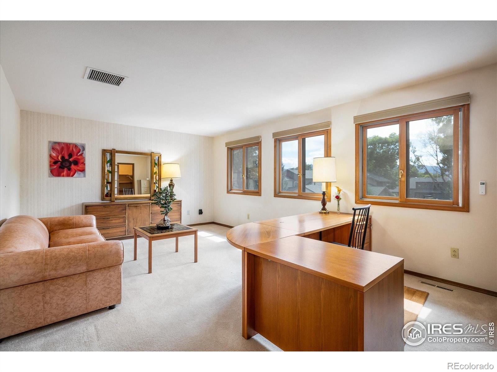 Welcome to 4936 Clubhouse Circle, a light-filled townhome tucked into a peaceful Boulder neighborhood near the Boulder Country Club. Vaulted ceilings and skylights enhance the open layout, with a spacious living area anchored by a wood-burning fireplace and an overhead loft offering flexible space for work or relaxation. The spacious patio backs to a quiet community greenbelt, adding privacy and a connection to nature .You'll find plenty of room to spread out with a mostly finished basement, generous storage, and an attached two-car garage. A newer water heater provides peace of mind, and the well-maintained interior offers great potential to make the space your own. With easy access to nearby trails, Twin Lakes, and all that Gunbarrel has to offer, this is a wonderful opportunity in a sought-after location.