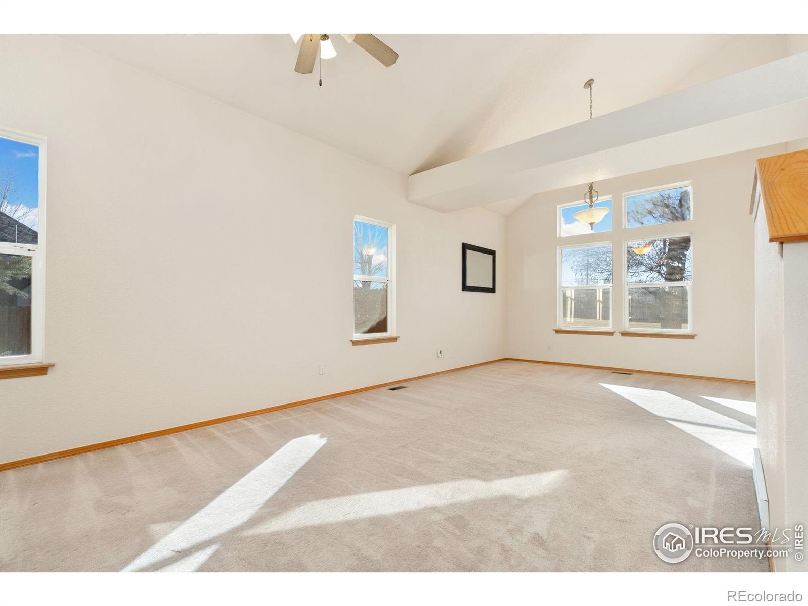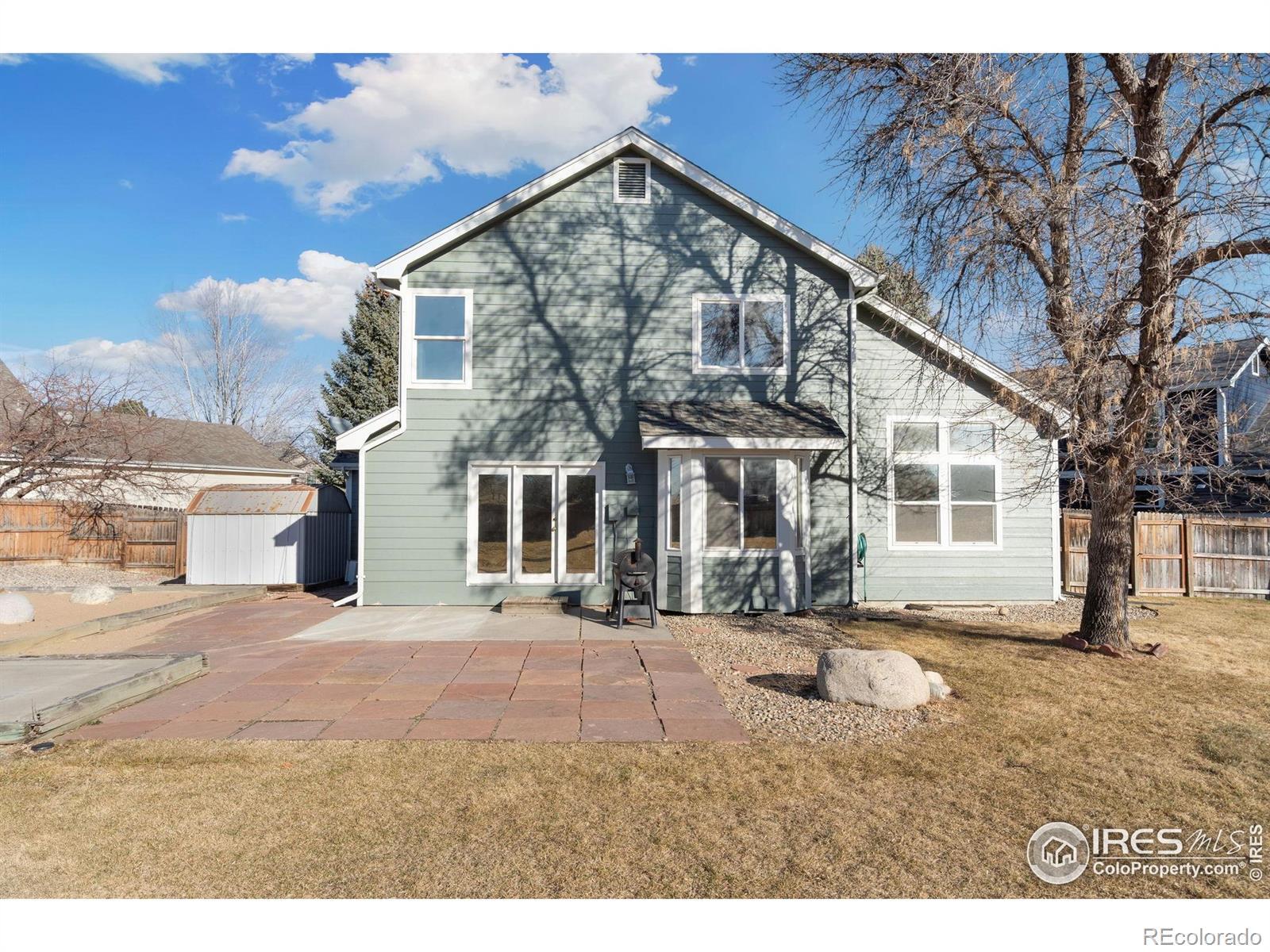 Space, style, and location come together in this two-story home in South Fort Collins! Situated on .34-acres in Brittany Knolls, this brick home shines with numerous updates, including fresh paint throughout, creating a clean and move-in ready feel inside and out. High, vaulted ceilings greet you at the entry, opening into a spacious living and dining area, offering an airy layout perfectly suited to both everyday living and entertaining. The kitchen features modern black appliances, generous prep space, and ample storage to keep everything within reach, and also includes a breakfast nook with bay window views of the backyard, adding a cozy spot to start the day. The adjacent family room centers around a classic brick fireplace, creating a warm and comfortable space to relax and unwind. Three bedrooms are located on the upper level, including the spacious primary suite with vaulted ceilings, a walk-in closet, and a well-appointed 5-piece ensuite bathroom. The basement offers a versatile area that can easily serve as a guest suite, complete with a closet and a full bathroom, while still leaving room to adapt the space to future needs. Outside, the fully fenced backyard is built for enjoyment, with a brick patio, dedicated firepit area, and a storage shed, all surrounded by plenty of open space to entertain. The three-car garage provides ample space for vehicles, tools, and extra storage. Prime location situated just minutes from Fossil Creek Reservoir, with easy routes to Old Town Fort Collins and Loveland amenities.