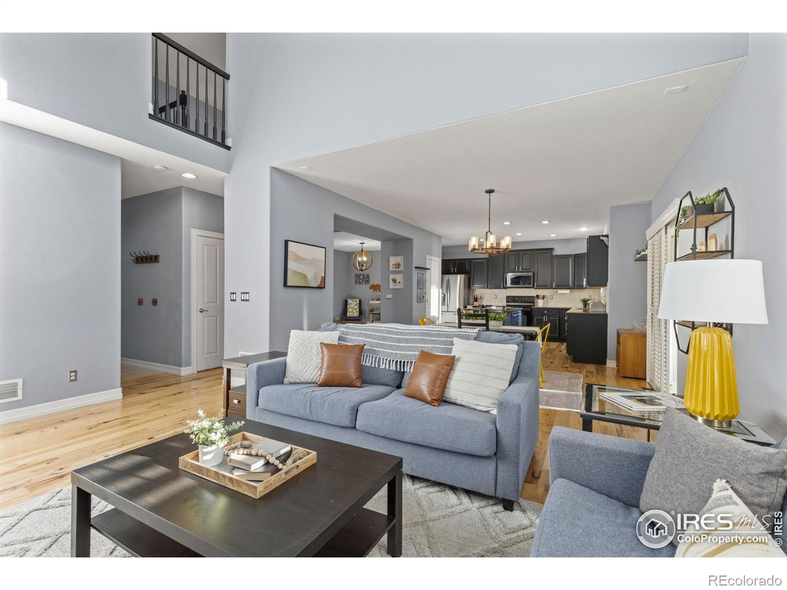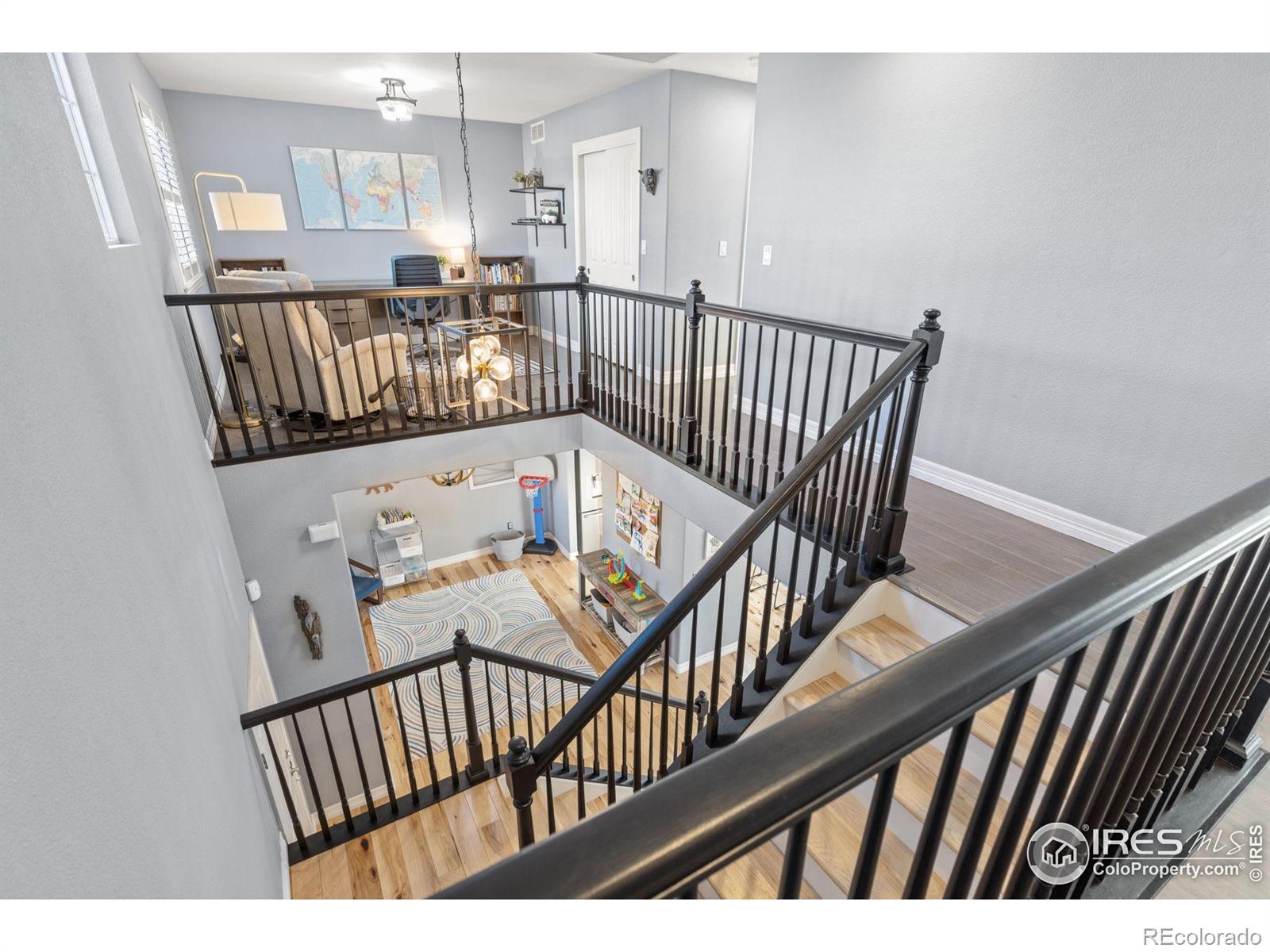 Nestled at the base of the Rocky Mountain foothills, where wide skies and mountain backdrops set the tone for everyday living, this beautifully maintained 5-bedroom, 3.5-bath home is located in the sought-after Hunter's Run subdivision. Designed for comfort and flexibility, the home offers multiple living spaces, including an open main level with wood floors, abundant natural light, and a cozy gas fireplace, plus an open loft ideal for work or play. The thoughtful layout includes three bedrooms upstairs and two bedrooms in the finished basement. The gorgeous primary suite features a spacious retreat and large walk-in closet. Throughout the home, thoughtful upgrades include a whole-house fan, humidifier, UV air purifier, deep pantry shelving, window shutters, and Pulse high-speed internet. Enjoy a covered patio and private backyard with mature trees, a rare advantage over new builds limited by Wildfire Urban Interface guidelines. A three-car garage, low-maintenance yard, neighborhood pool, low HOA with no metro district, and easy access to Loveland, Fort Collins, Longmont, and Boulder complete this exceptional opportunity. We'd love to show you it today!
