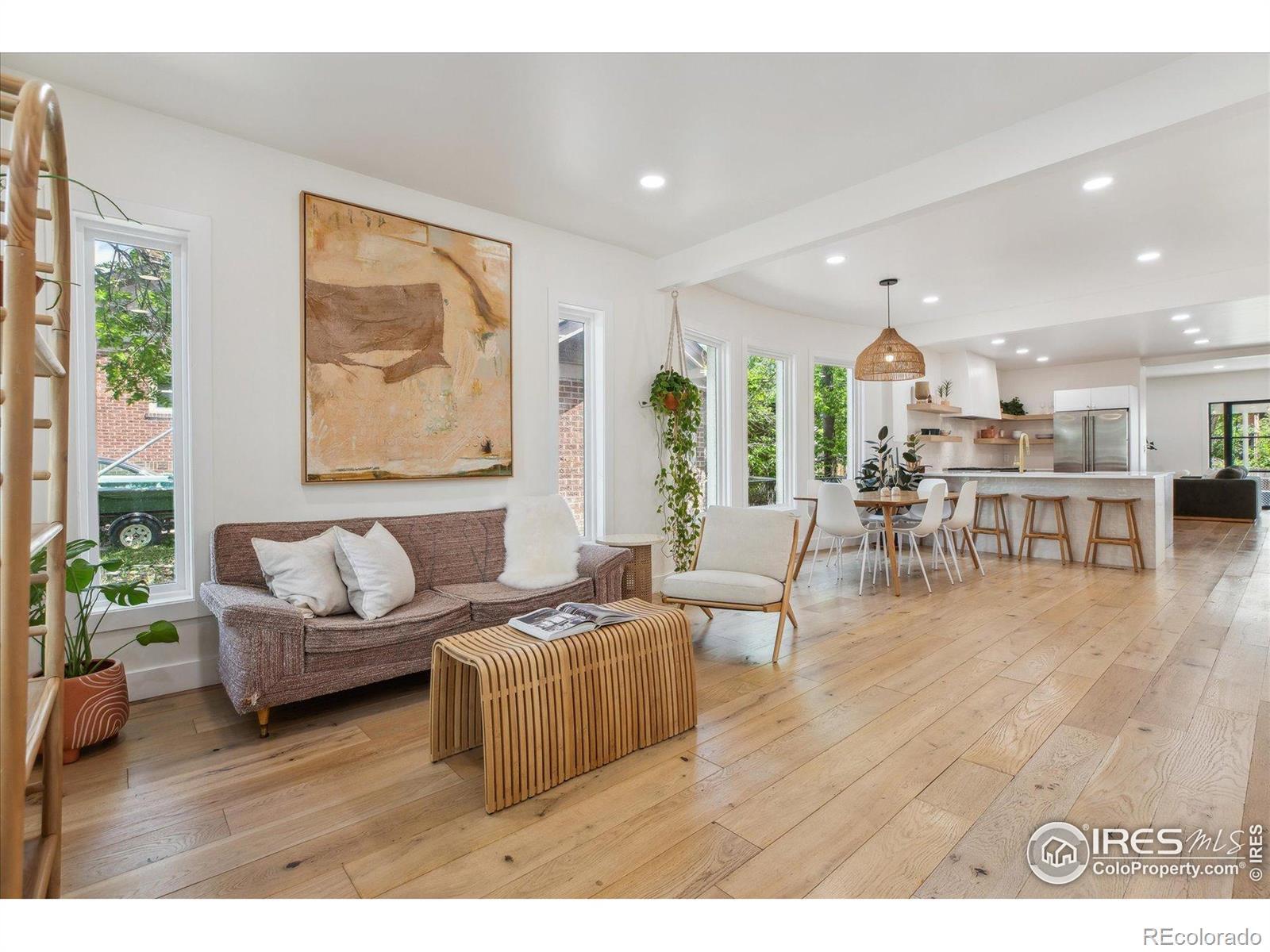 Double lot / Walk to Sloan's Lake, coffee & dining / Walk to West Highlands / Highlands Square / STR potential / 2-car garage / This architecturally refined 1922 residence was fully renovated in 2021 and occupies a rare double lot in the West Highlands, within walking distance of Sloan's Lake Park and the restaurants, coffee shops, and retail of Highlands Square. The open-concept main level balances craftsmanship and functionality, anchored by a kitchen with custom cabinetry by Denver-based Work Shop, quartz countertops, white oak open shelving, and a full Monogram appliance suite, including a 48-inch gas range with dual ovens. The adjoining living area features a fireplace, built-in shelving, and steel-framed glass French doors opening to a covered deck and expansive outdoor space, offering seamless indoor-outdoor flow. Two main-level bedrooms provide generous closets and southern exposure, served by a centrally located full bath. The upper level is dedicated to a private primary suite with vaulted 12-foot ceilings, oversized windows, a custom walk-in closet, and a five-piece en-suite with soaking tub and Euro glass shower. Two additional upper-level rooms include one conforming bedroom and one non-conforming room, offering flexibility for guest space, office, or bonus use. The finished basement includes both interior and private exterior access and is currently configured for short-term rental use. A dry bar, non-conforming bedroom, three-quarter bath, bonus room, and laundry hookups provide versatility and privacy. A detached two-car garage and updated systems complete this thoughtfully renovated home.