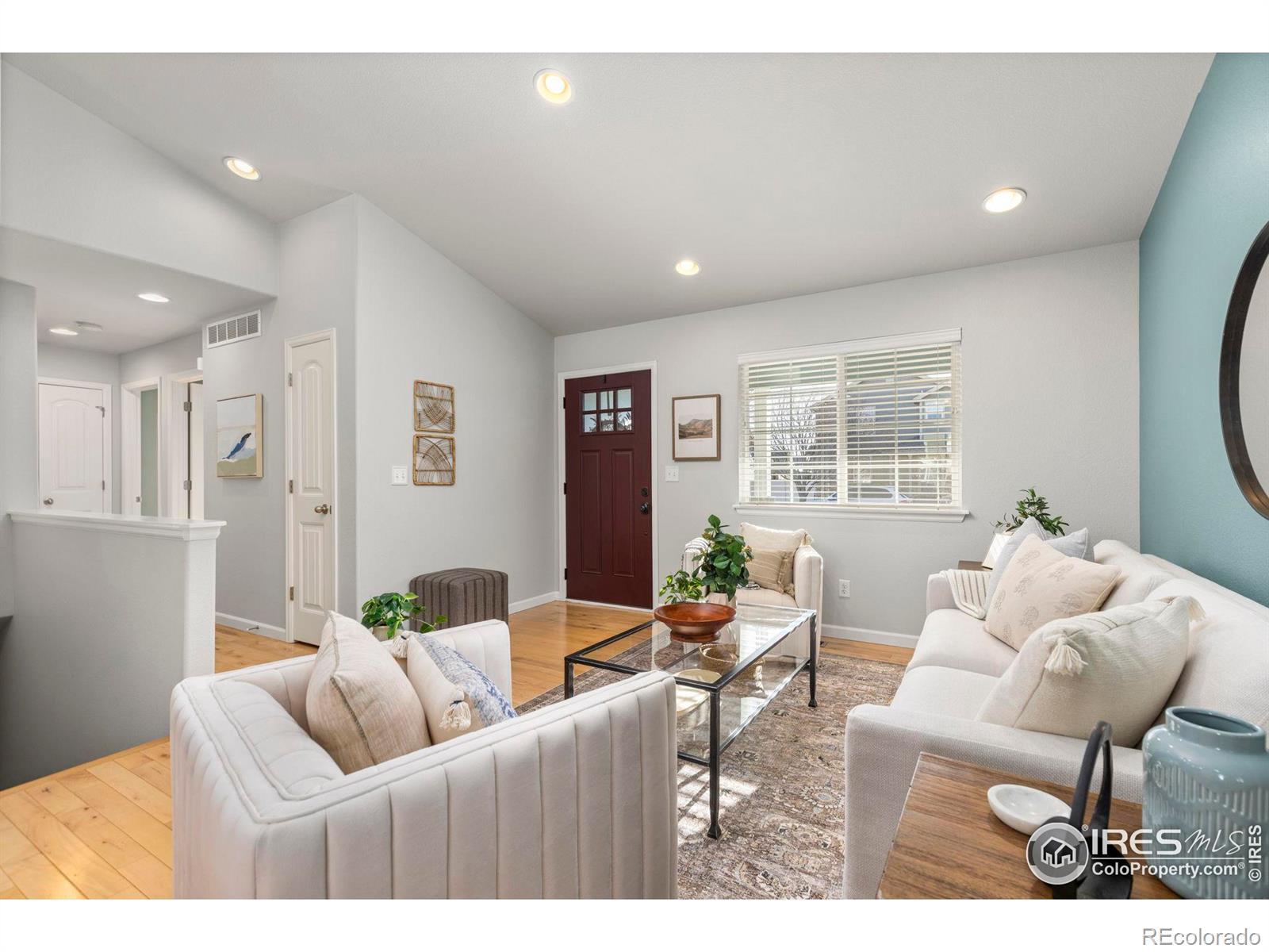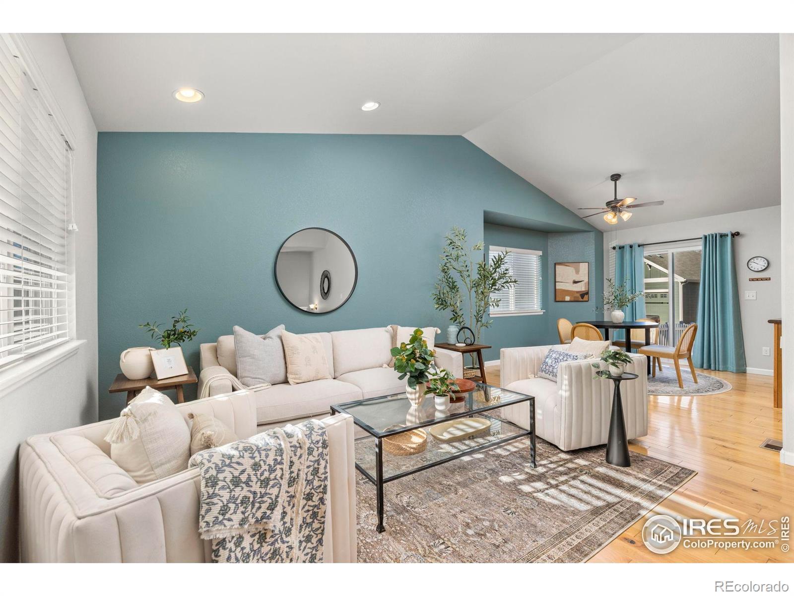 Welcome to this impeccably cared for home with gorgeous wood floors, main floor laundry, and a low maintenance and fully fenced yard. Stepping through the front door you are immediately greeted by a bright and spacious living space that flows seamlessly into your kitchen and out onto a back patio for entertaining and indoor/outdoor living. The main floor is bright with plenty of windows, newer paint, and newer carpet in each of the three main floor bedrooms. Main floor laundry (plus a second laundry area in the basement) provides simple main floor living along with a spacious, unfinished basement for all your storage needs or finished square footage in the future. The fully fenced backyard and two-car garage are the perfect compliments to this fantastic property. Conveniently located just south of Eisenhower/US 34, this home is a quick drive to downtown Loveland, Centerra, I-25, and plenty of local amenities.