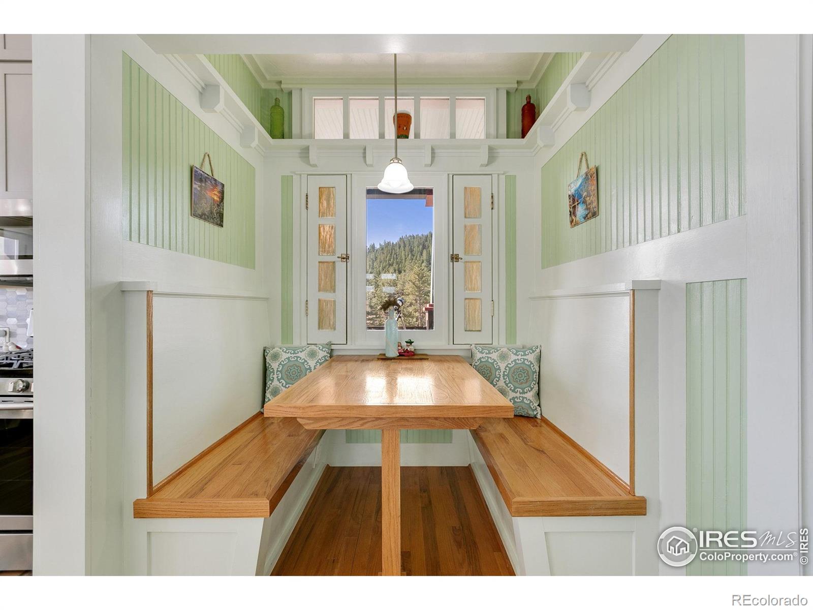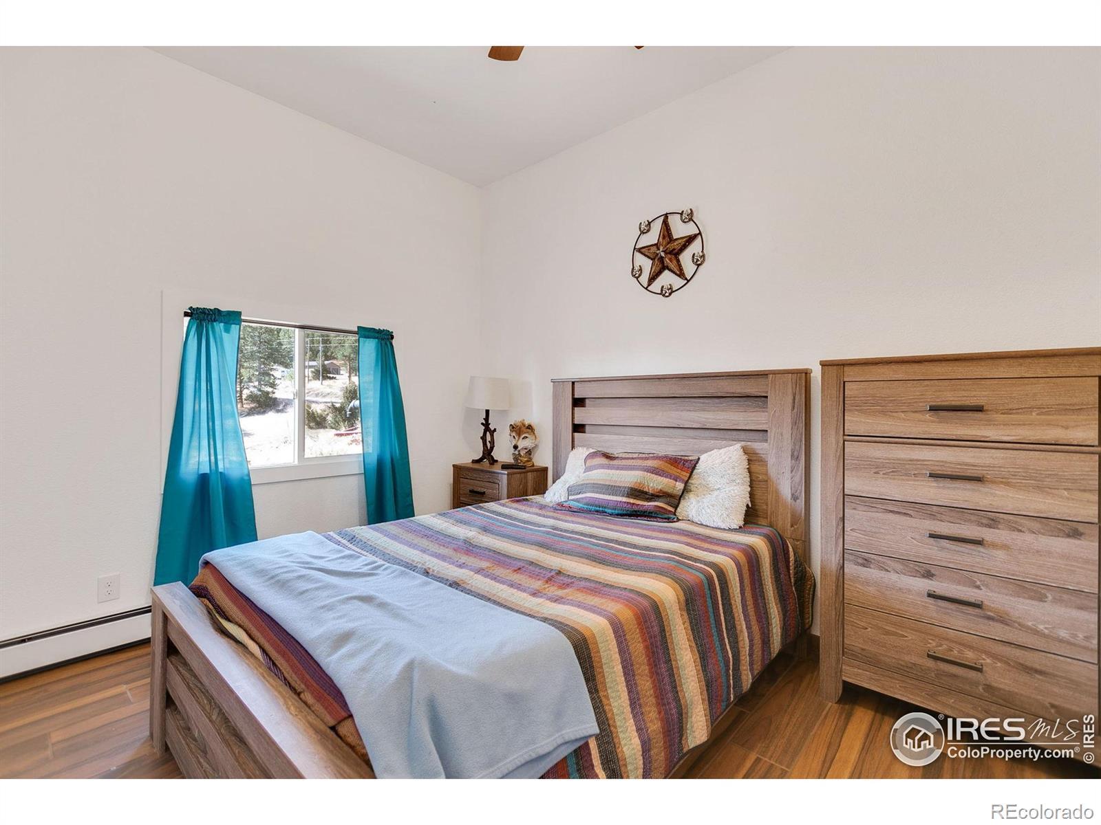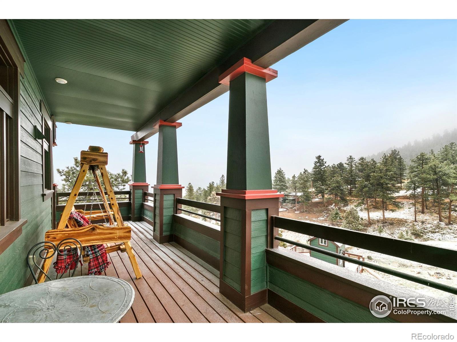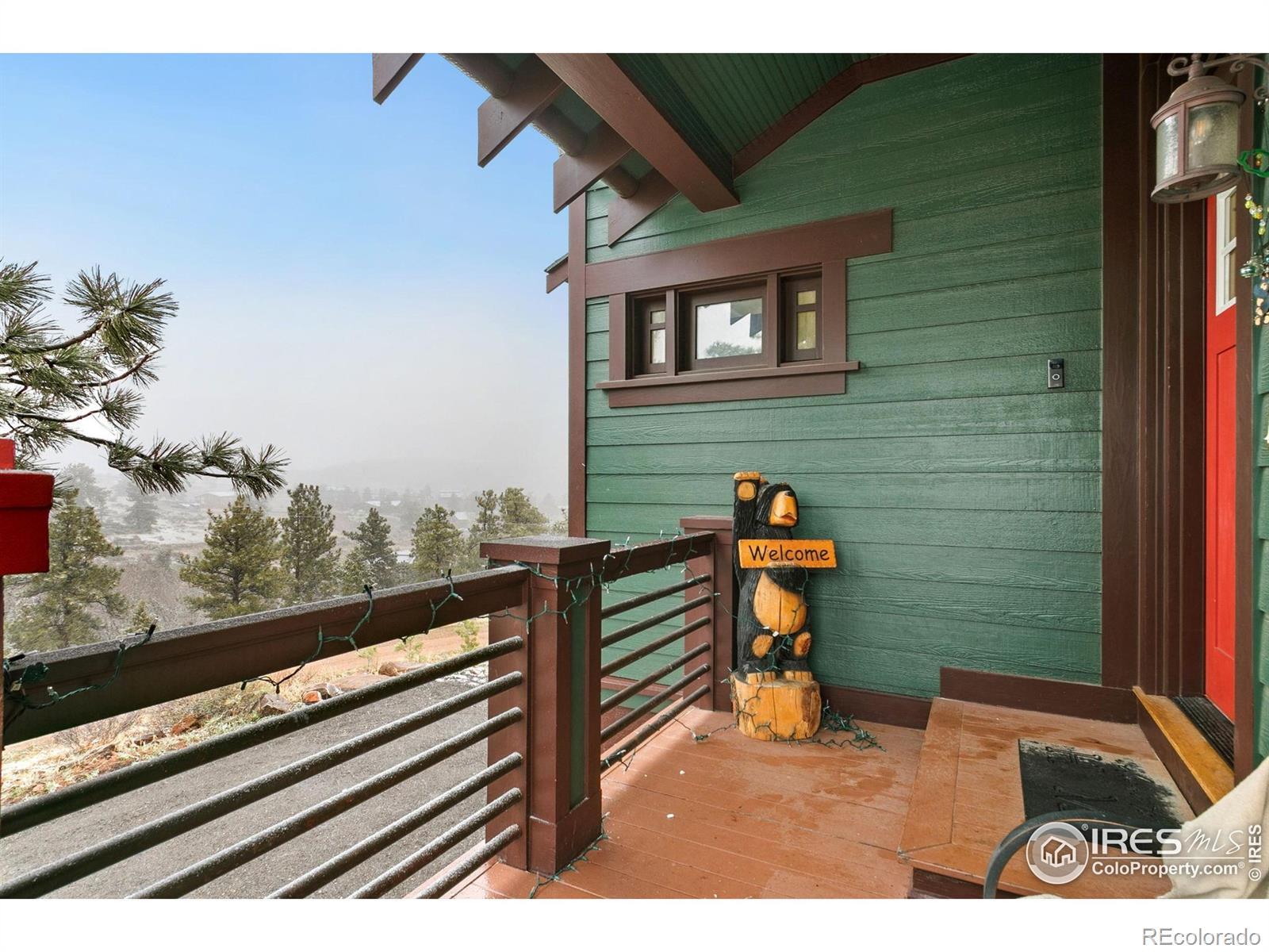 Perched above the treetops with sweeping mountain views, this custom-built retreat is designed for unforgettable stays and great short-term rental performance. The home offers a layout and amenities guests seek out-and return for. It could be your mountain dream home or home away from home. Wall-to-wall windows frame the scenery from the expansive entertaining kitchen, complete with dual under-counter refrigerators and a charming built-in Dutch-style dining nook. Multiple levels of outdoor decks and three private balconies create ideal spaces for relaxing, entertaining, and soaking in the views year-round.The home features 5 bedrooms, 4 bathrooms, offering flexibility for owners and rental guests alike. The spacious primary suite is a true sanctuary with a custom five-piece bath, freestanding soaking tub, walk-in closet, and private fireplace. On the lower level, an impressive private movie theater with seating for 13 and a full concession stand delivers a true cinematic experience-one of the home's most popular guest features. Additional highlights include hydronic heating, fireplaces in the great room and primary suite, and an adorable outdoor playhouse. Beautifully furnished (furniture is included), this turnkey mountain getaway is just 30 minutes from Fort Collins and minutes from fishing, boating, mountain biking, hiking, and outdoor recreation. Whether you're seeking a luxury personal escape, a high-performing VRBO investment, or both-this one truly delivers. A rare opportunity to own a proven short-term rental in an unforgettable mountain setting. Must see to fully appreciate.