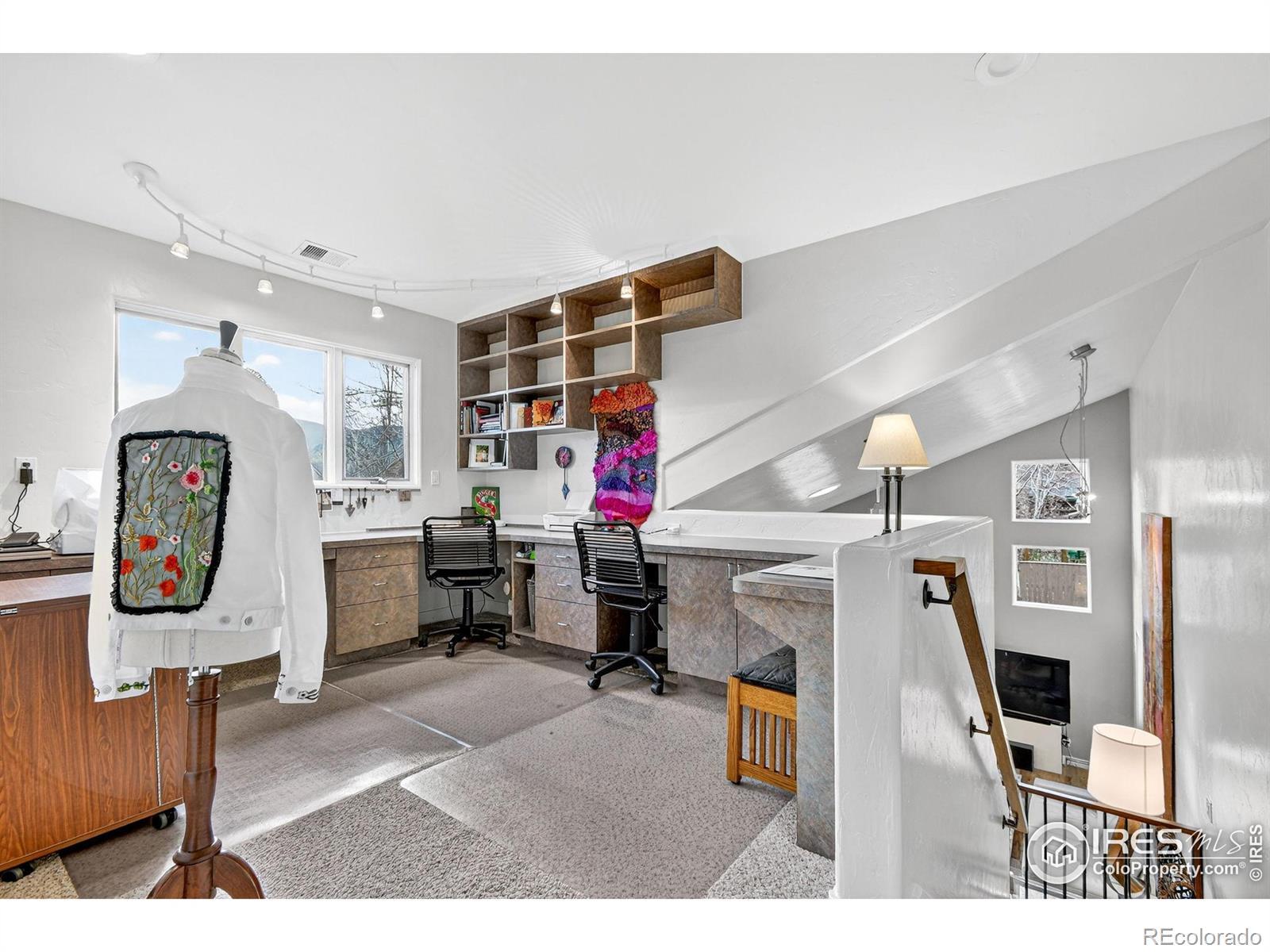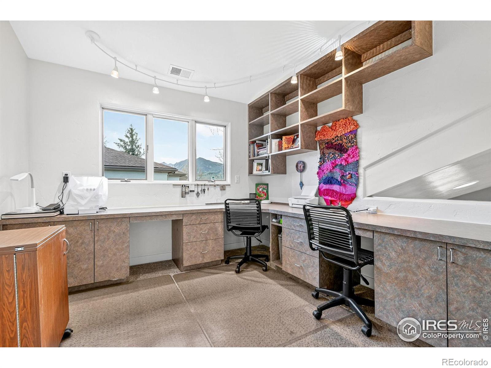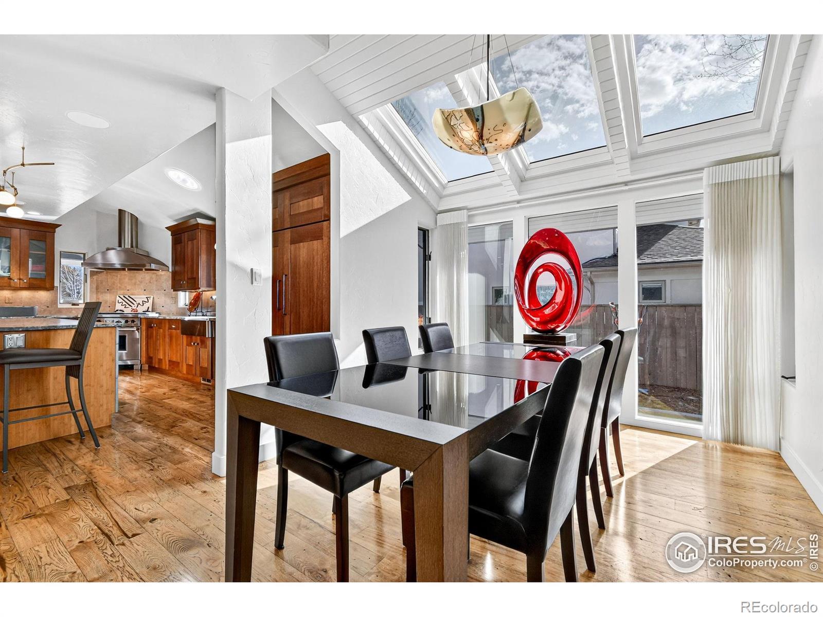 This stunning modern house is waiting for your living pleasure. Upon entering this light filled home you are drawn to the dramatic fireplace flanked by foothills views in the vaulted ceiling living area. Indoor outdoor spaces that flow for beautiful entertaining ease in this quiet charming centrally located neighborhood. Functional artistic touches abound. Enjoy the chef's kitchen with Granite countertops, Sub Zero and Wolf appliances with an elegant dining area adjacent. Office separated by unique French doors. Main floor Primary en-suite bedroom.Upstairs are two separate bedrooms, a full bathroom and a vaulted ceiling area with extra flex space with custom built-in cabinetry and flatiron views. A fully finished basement for TV or game night, a spacious guest bedroom and private bath. Beautiful wood bookshelves complete with a secret movable door to a private room behind, a customized workout area. A new roof installed August 2025. Freshly painted interior and exterior September 2025. Stackable washer and dryer installed October 2025. HVAC is only 2 1/2 years old. An oversized two car garage with new custom flooring with workspaces and cabinetry to suit your every need. Close to Ideal Market, Santos restaurant and Beliza coffee shop. Community gardens, hiking trails and North Boulder Recreation Center minutes away. Combine this with location and it will be hard for your buyers to resist!