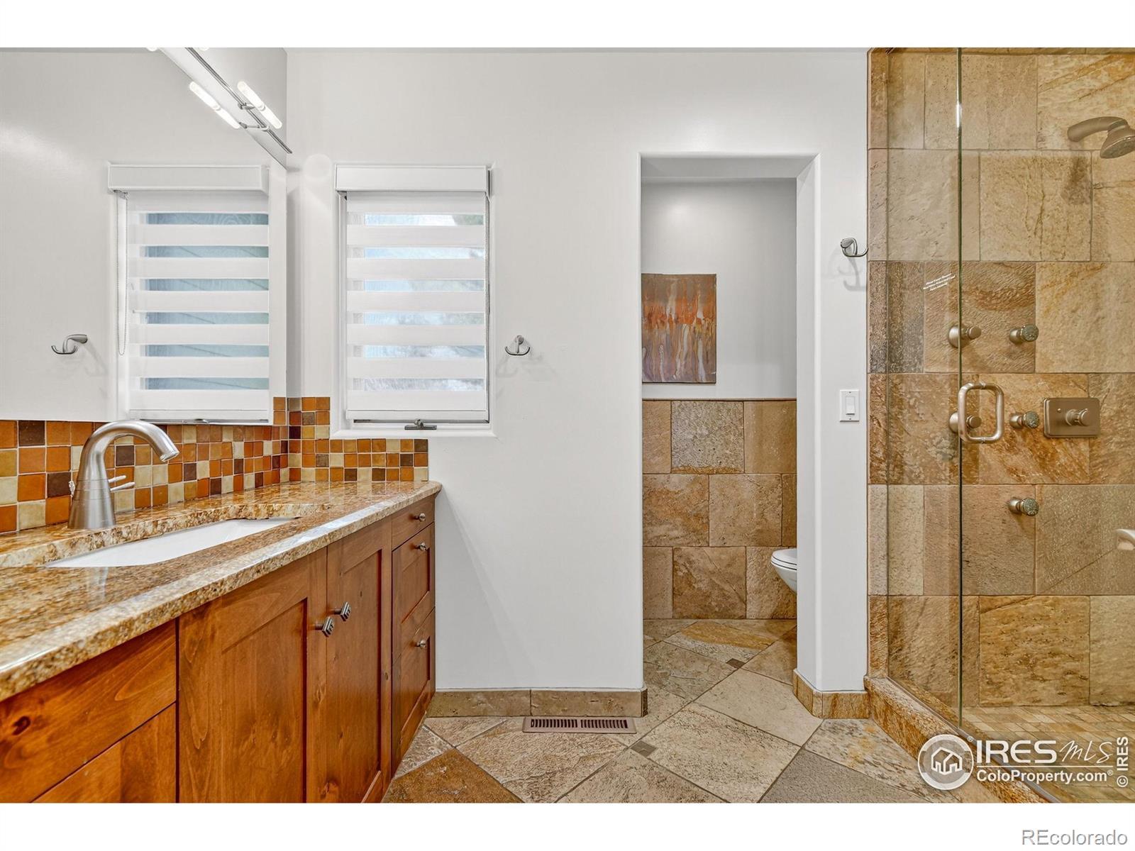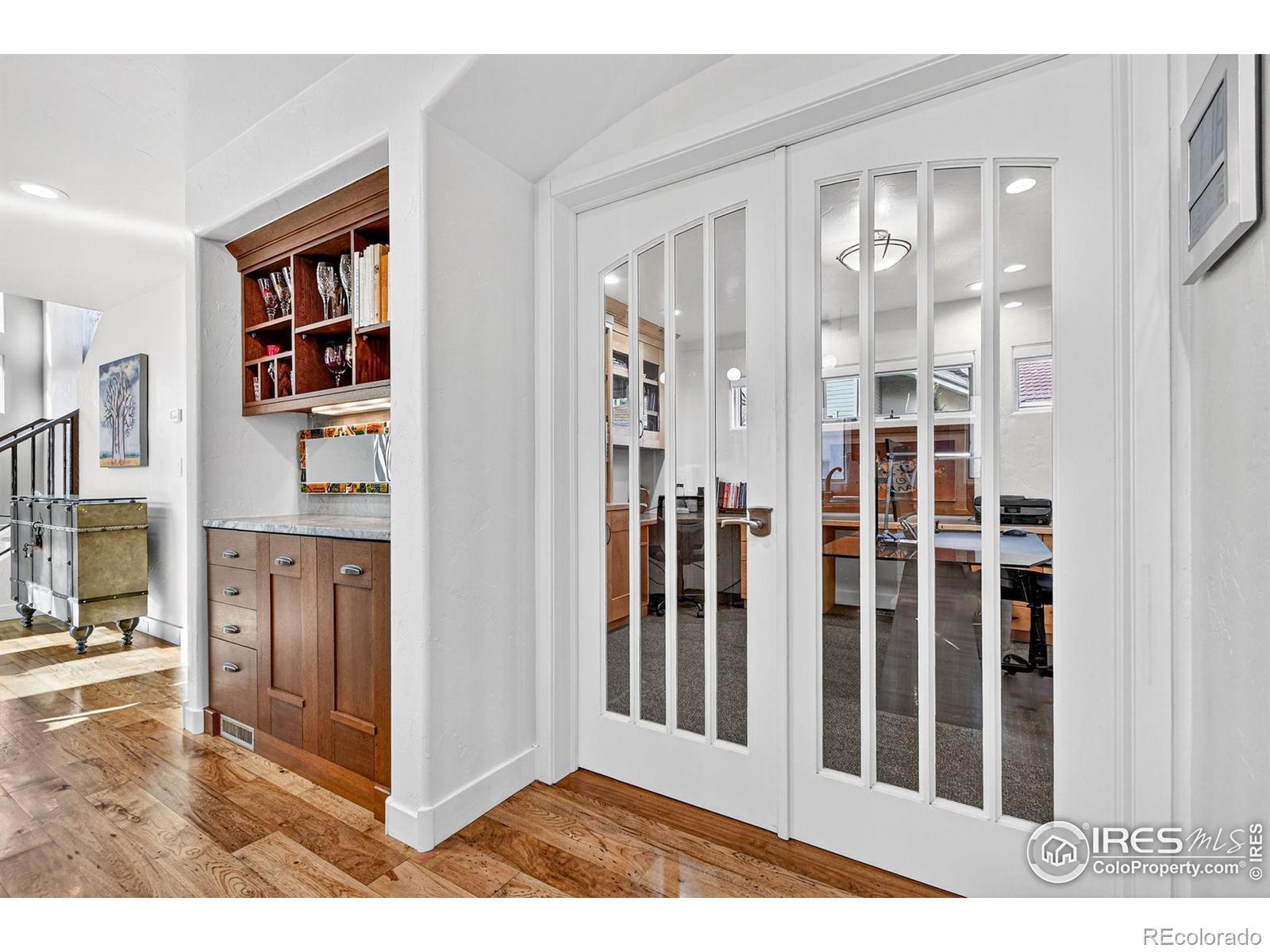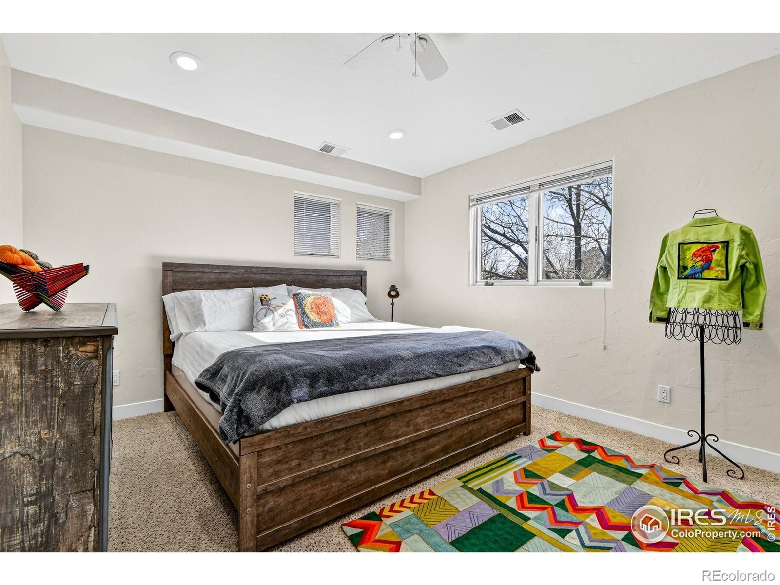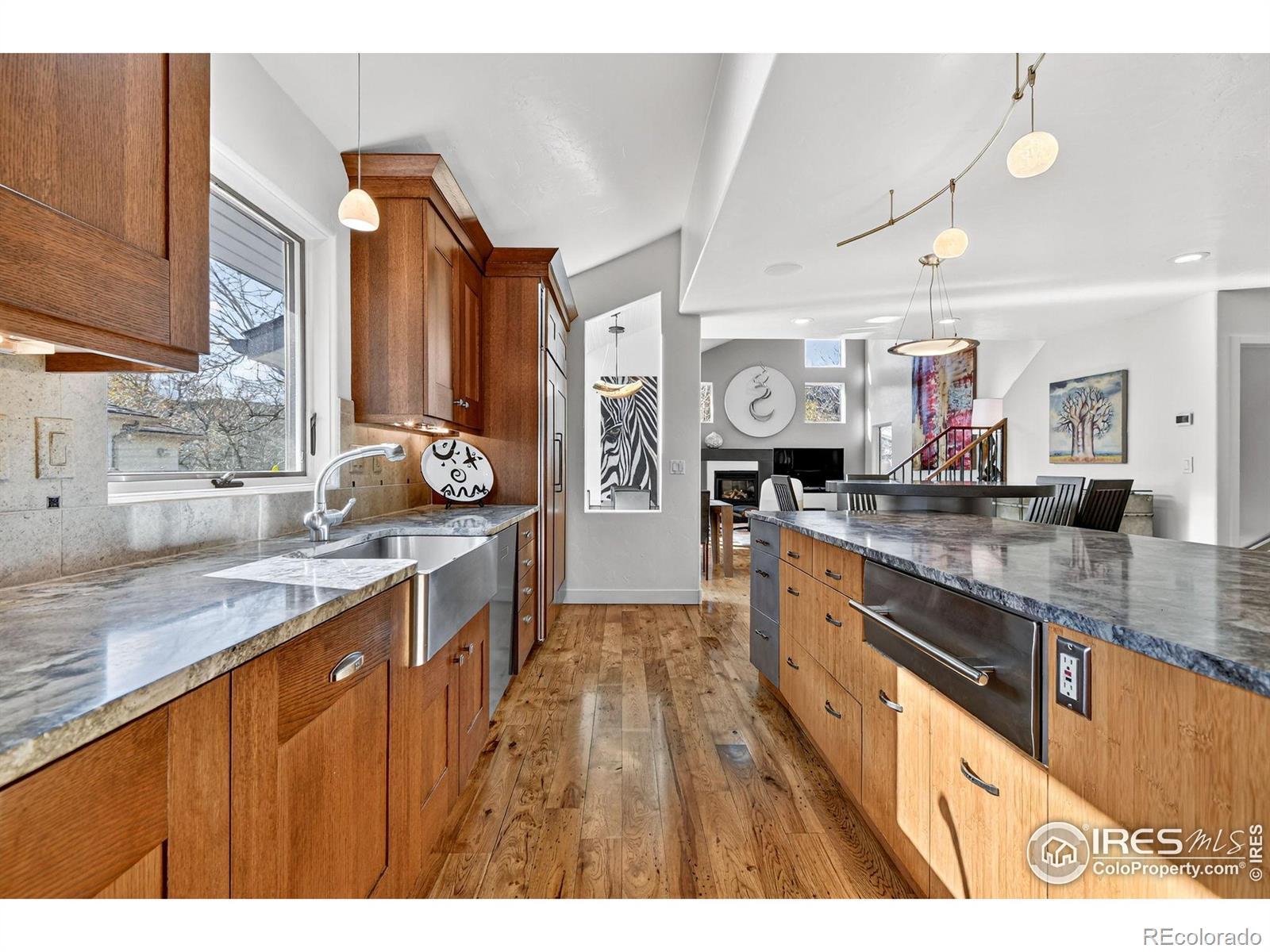 This stunning modern house is waiting for your living pleasure. Upon entering this light filled home you are drawn to the dramatic fireplace flanked by foothills views in the vaulted ceiling living area. Indoor outdoor spaces that flow for beautiful entertaining ease in this quiet charming centrally located neighborhood. Functional artistic touches abound. Enjoy the chef's kitchen with Granite countertops, Sub Zero and Wolf appliances with an elegant dining area adjacent. Office separated by unique French doors. Main floor Primary en-suite bedroom.Upstairs are two separate bedrooms, a full bathroom and a vaulted ceiling area with extra flex space with custom built-in cabinetry and flatiron views. A fully finished basement for TV or game night, a spacious guest bedroom and private bath. Beautiful wood bookshelves complete with a secret movable door to a private room behind, a customized workout area. A new roof installed August 2025. Freshly painted interior and exterior September 2025. Stackable washer and dryer installed October 2025. HVAC is only 2 1/2 years old. An oversized two car garage with new custom flooring with workspaces and cabinetry to suit your every need. Close to Ideal Market, Santos restaurant and Beliza coffee shop. Community gardens, hiking trails and North Boulder Recreation Center minutes away. Combine this with location and it will be hard for your buyers to resist!