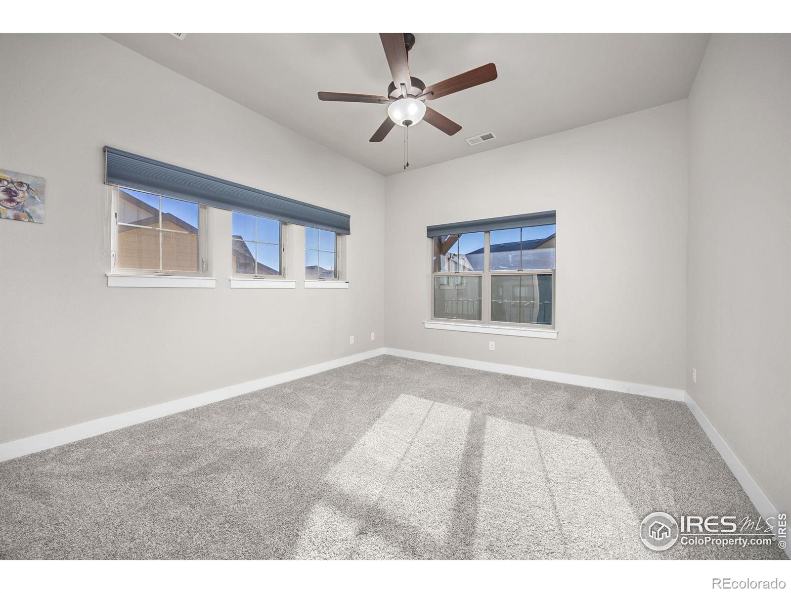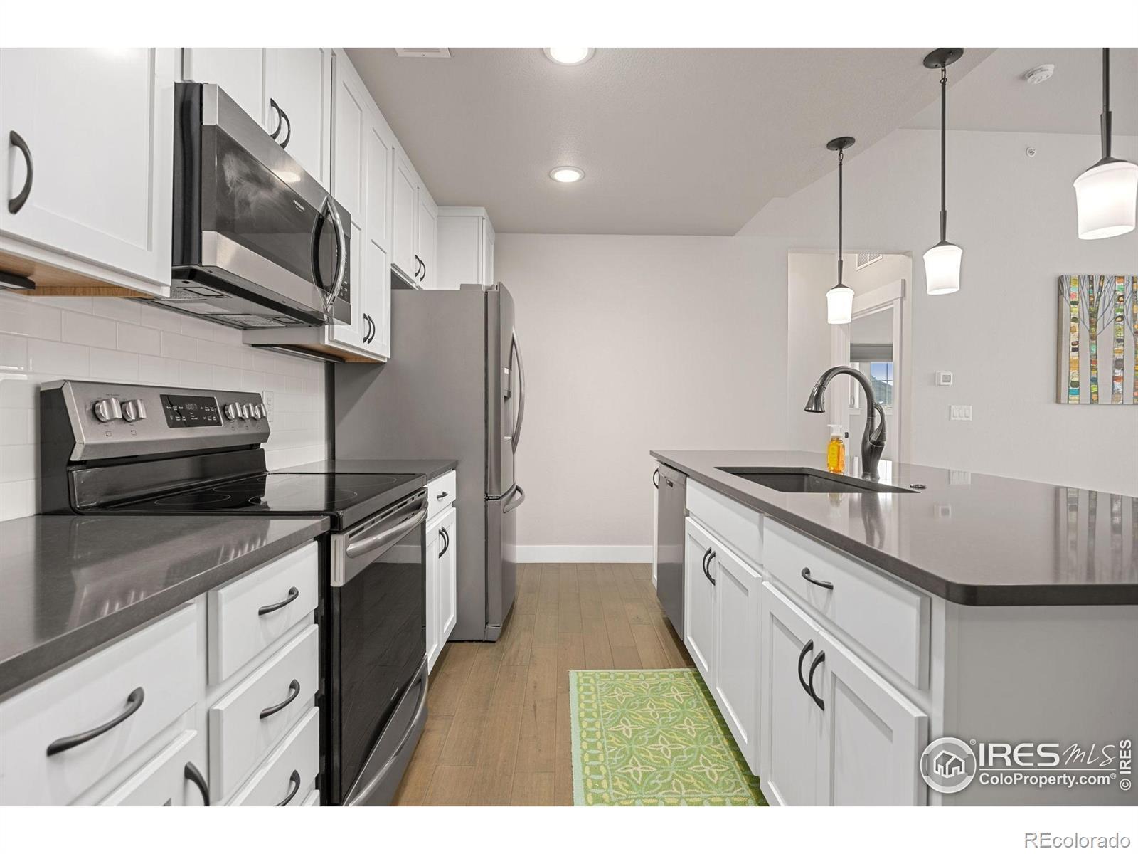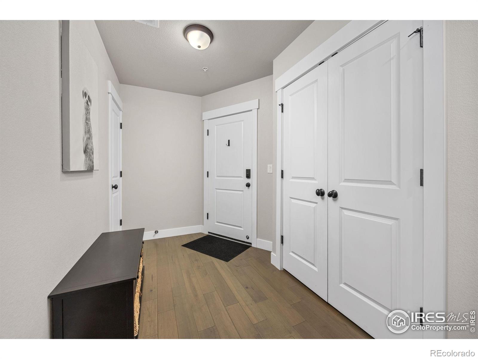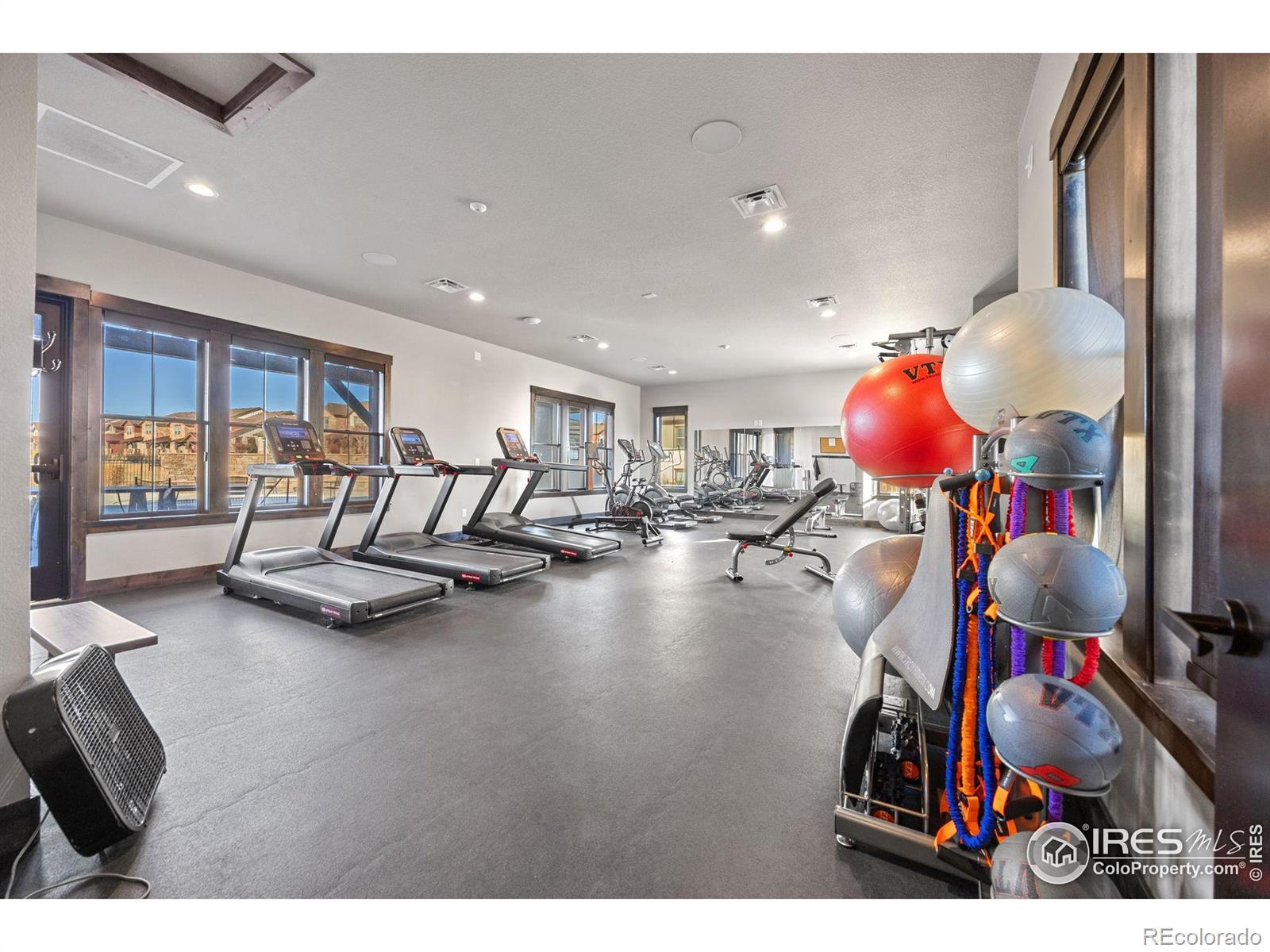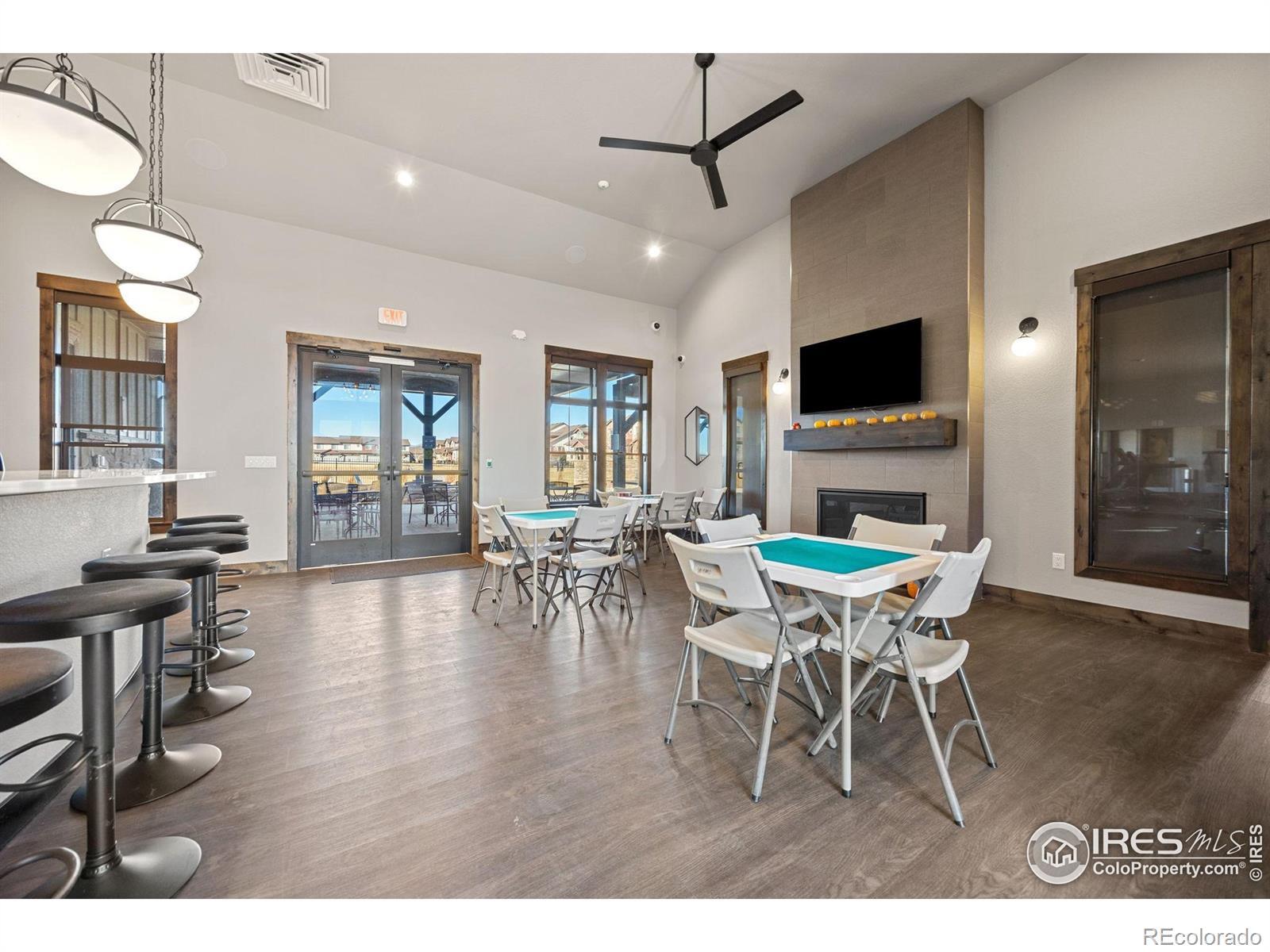 Discover luxury living in this stunning two-bedroom, two-bath end-unit condo at Portofino Flats at La Riva in beautiful Windsor, Colorado.Soaring 12-foot ceilings create an airy, open atmosphere throughout, accentuated by sleek modern finishes and abundant natural light. The spacious living room serves as the heart of the home, perfect for entertaining or relaxing by the fireplace on cool Colorado evenings.The gourmet kitchen impresses with gleaming stainless steel appliances, elegant quartz countertops, and ample cabinetry for effortless meal preparation. Enjoy the convenience of automatic blinds that add a touch of sophistication and privacy at the touch of a button.Retreat to generously sized primary bedroom with en-suite bath, offering comfort and tranquility.This desirable end-unit includes elevator access, one-car garage with extra storage space, Internet and cable TV, Water included in HOA fees. Residents of Portofino Flats enjoy resort-style amenities, including a relaxing hot tub and sauna, state-of-the-art gym, and more-all designed for an elevated lifestyle.Don't miss this opportunity to own a piece of modern elegance in a vibrant communit