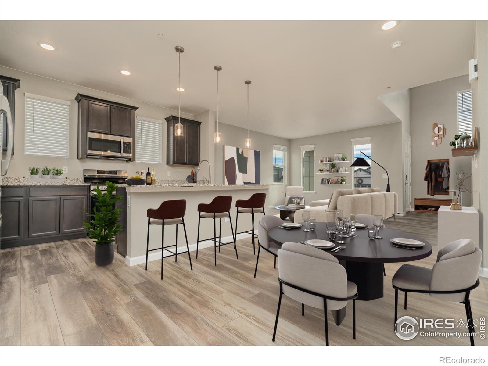 Modern Comfort Meets Low-Maintenance Living in Registry Ridge.Welcome to this stylish and spacious townhome in the desirable Registry Ridge community of Fort Collins, offering 1,638 square feet of thoughtfully designed living space and a 2-car attached garage.This 3-bedroom, 3-bathroom home features an open, functional layout accented by 9-foot ceilings and luxury vinyl flooring, creating a bright and contemporary feel throughout the main living areas. The kitchen is both beautiful and practical, showcasing granite countertops, ample cabinetry, and a layout ideal for everyday living and entertaining.Upstairs, generously sized bedrooms provide comfort and flexibility, including a primary suite with a private bath and roomy walk in closet space. With three bathrooms, the home easily accommodates guests, work-from-home needs, or multigenerational living.Designed for today's lifestyle, this townhome combines modern finishes with low-maintenance convenience, all within the highly regarded Thompson R2-J School District. Enjoy close proximity to parks, trails, shopping, dining, and easy access to major routes-making it simple to enjoy everything Northern Colorado has to offer. Spacious. Modern. Ideally located.This Registry Ridge townhome delivers comfort, style, and practicality in one exceptional package.