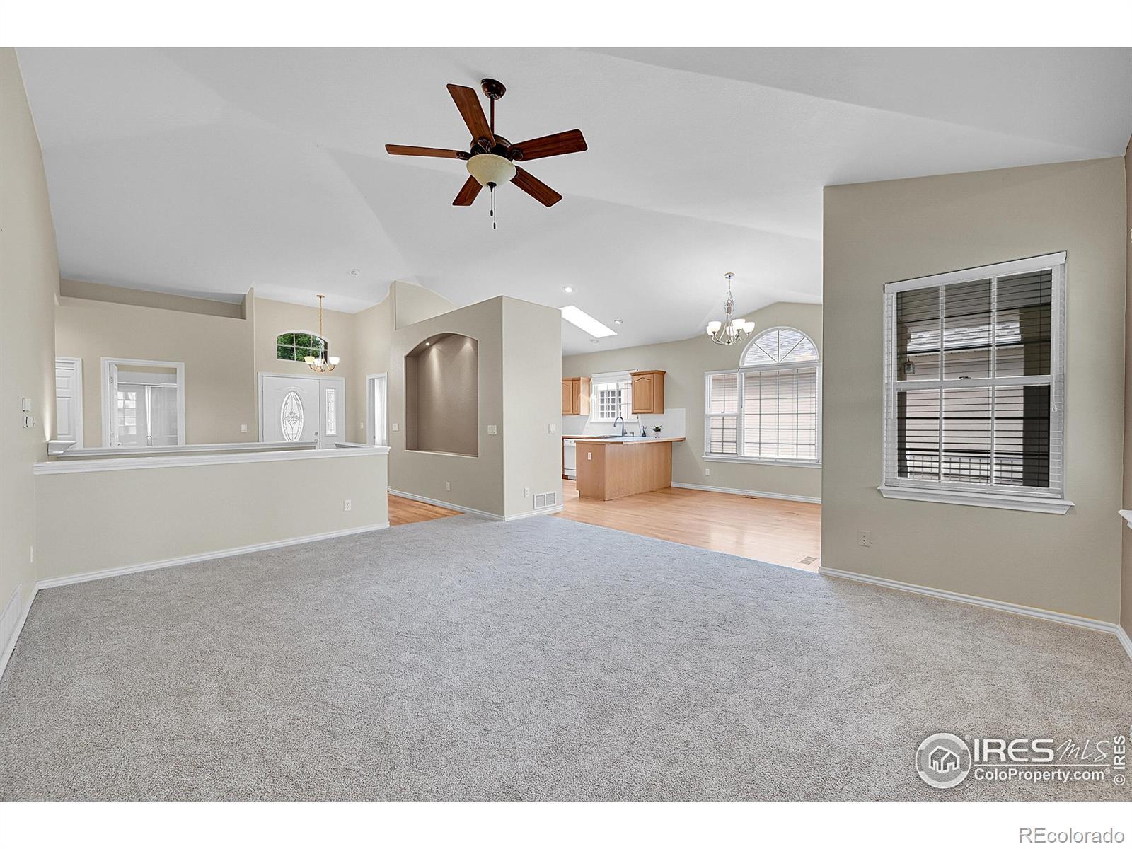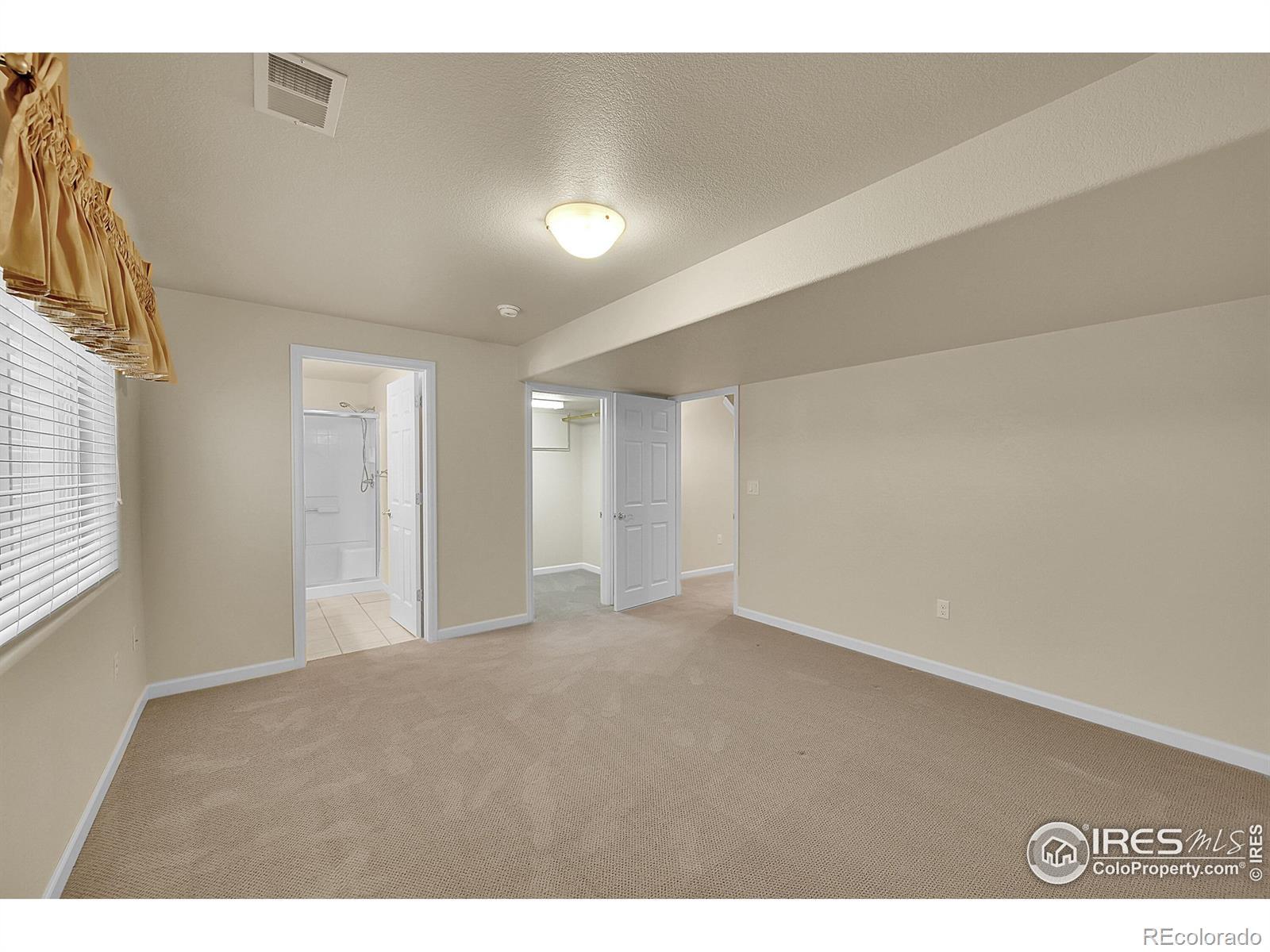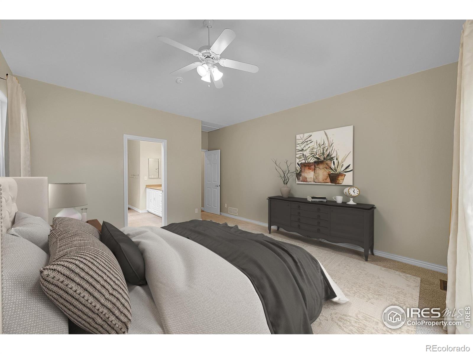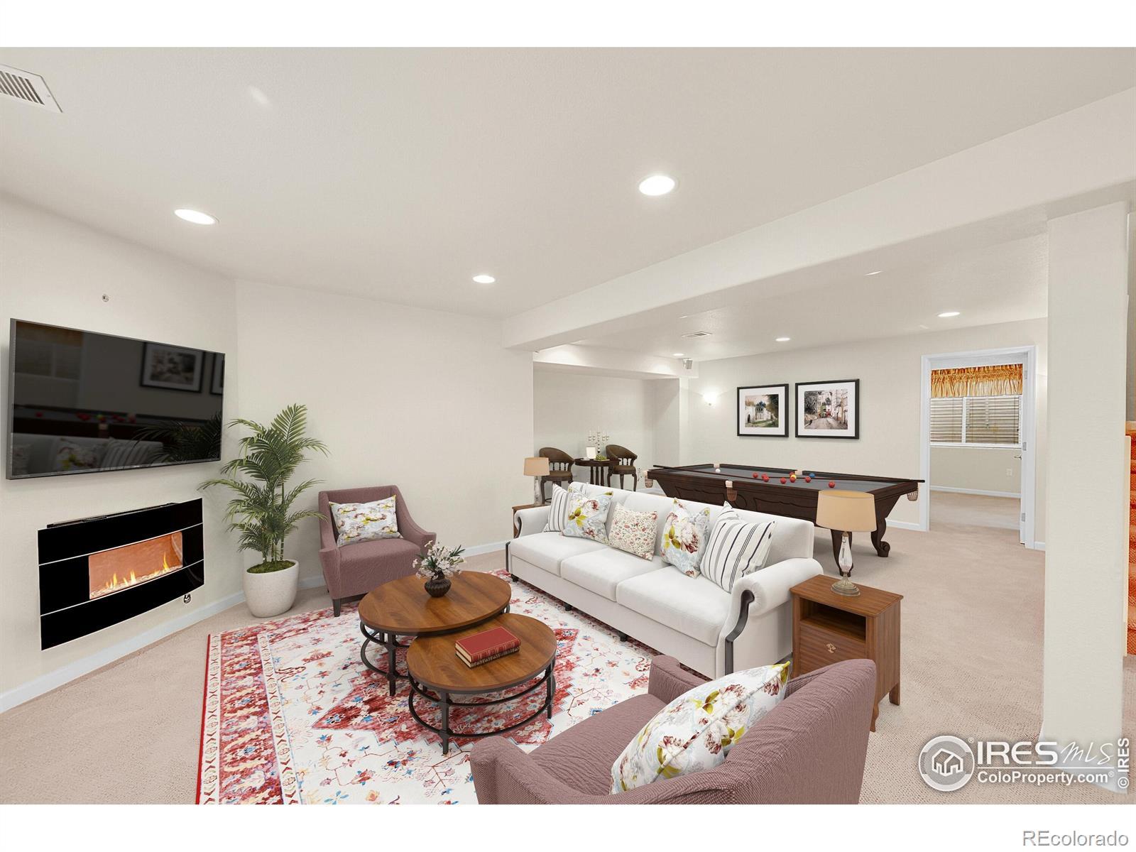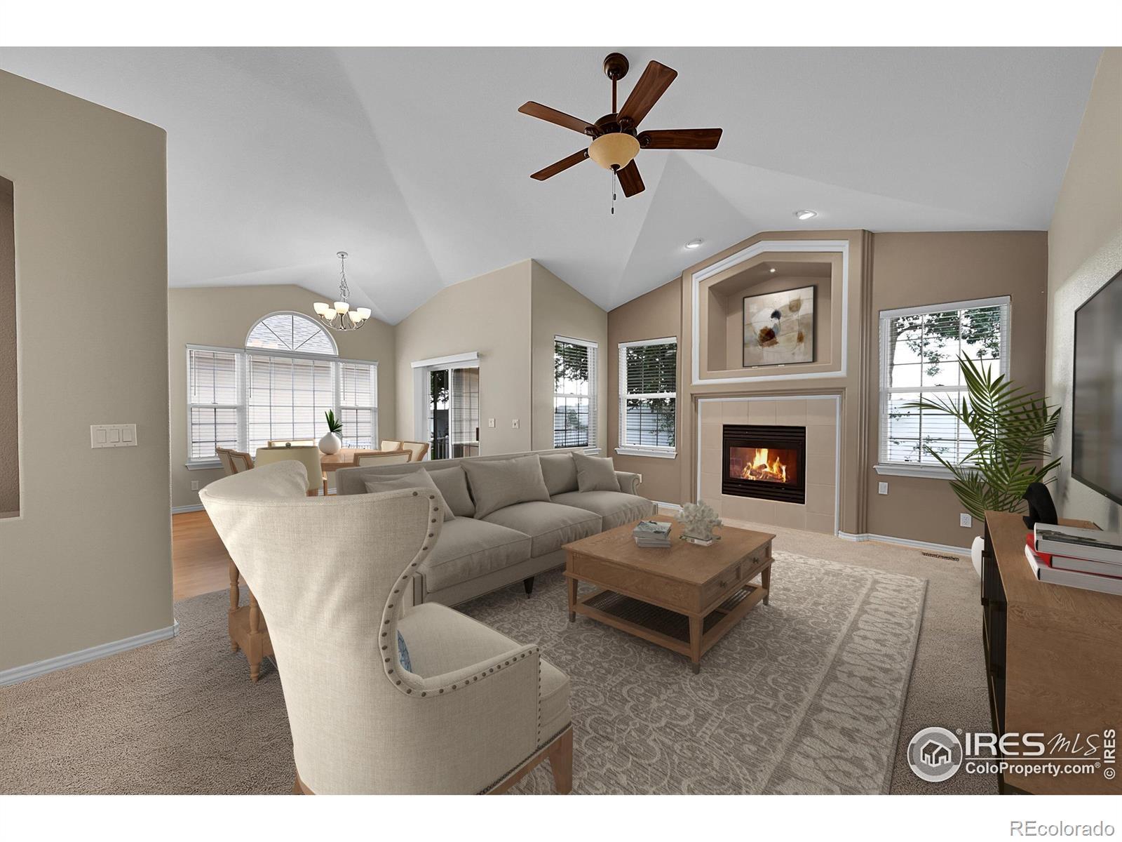 Welcome home to this inviting patio home in the highly desirable Champion Greens neighborhood, ideally located near the Twin Peaks Golf Course. Designed for easy living, the HOA takes care of exterior maintenance including mowing, watering, and snow removal-allowing you to simply enjoy your home.The main level offers a bright and spacious living room with vaulted ceilings and a cozy gas-log fireplace. The primary suite provides a comfortable retreat with a walk-in closet and a private five-piece bath.The finished basement is an entertainer's dream, featuring a generous recreation room with a wet bar, beverage refrigerator, and electric fireplace-perfect for gatherings or relaxing evenings. Two additional bedrooms are located on this level, including one with an en-suite bathroom and walk-in closet, offering excellent flexibility for guests or additional living space.Recent updates include new carpet in the primary bedroom and living room (2024) and a new roof (2023). A well-cared-for home that offers space, comfort, and low-maintenance living in a sought-after community.