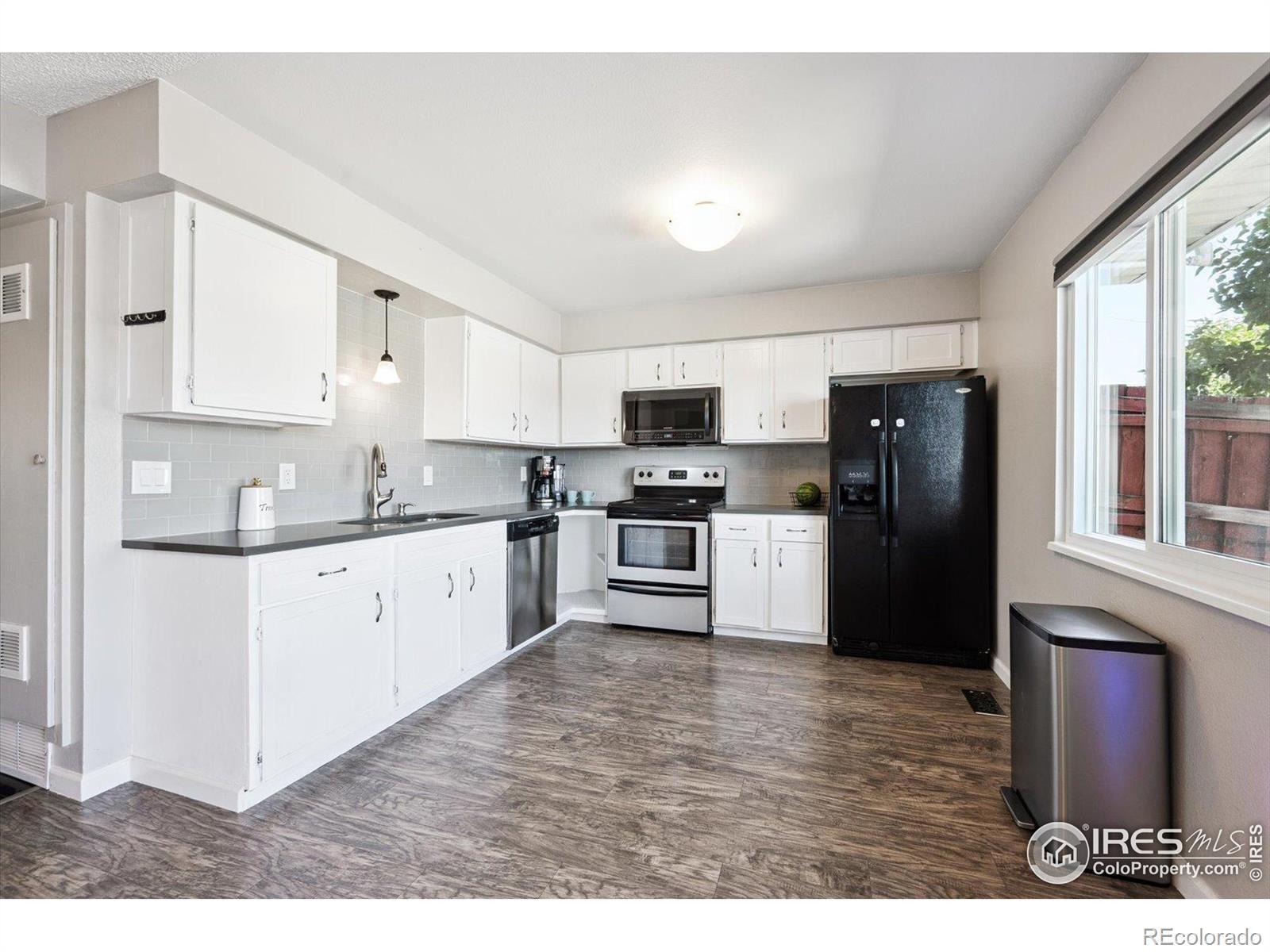 Gorgeous Park North Home with Fully Fenced Yard & 2-Car Carport! As you step inside, you're greeted by an updated kitchen boasting quartz countertops, designer glass tile backsplash, and stainless-steel appliances and an adjacent dining area with lots of natural light. The main level also features a spacious living room overlooking the adjacent greenbelt, a convenient laundry room with built in storage and room for a full size washer and dryer, an updated powder bathroom with a modern vanity and designer tile all complimented by fresh paint and gorgeous laminate floors throughout. Upstairs, the primary suite offers a peaceful retreat with a private ensuite bath featuring a large walk-in shower, updated vanity, and designer tile finishes. Three additional bedrooms share a completely upgraded full bathroom with a tiled tub surround, modern vanity, and designer tile flooring-plus a ceiling light with built-in Bluetooth speaker for added convenience. All bedrooms include newer ceiling fans for comfort year-round. Enjoy peace of mind with major system upgrades completed in 2024, including a new furnace, new central AC, electrical enhancements and upgrades, new carpet, and new interior paint. Storage is plentiful with built-in linen closets, a large under-stairs storage area on the main level, and the backyard storage shed. Superb Location: Step outside from the kitchen and dining area into your private, fully fenced yard-perfect for entertaining or relaxing. The yard features a newly poured concrete patio, low-maintenance artificial turf, and a storage shed. A gate leads directly to the detached 2-car carport, located just behind the home for easy access. Additional highlights include nearby guest parking and a prime location within walking distance to parks, trails, Hyland Hills Sports Complex, Water World, shops, restaurants, and cafes. Quick access to major highways makes commuting to downtown Denver a breeze.