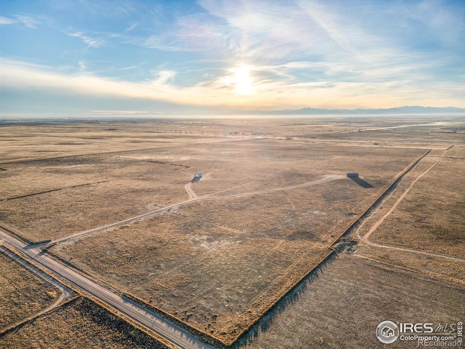 35+ acre buidling site with one of a kind, panoramic views of the Rocky Mountain front range. Conveniently located 10 minutes from downtown Eaton! Pipe entry at CR 51 opens to a new gravel road extending West approximately 1/4 mile to a majestic location for your home. Property features 32x56 shop with 16ft side walls and overhead door with opener. Well is drilled. Underground power is installed approximately 500 feet West of CR 51. Located in Eaton School District. Additional parcels available.