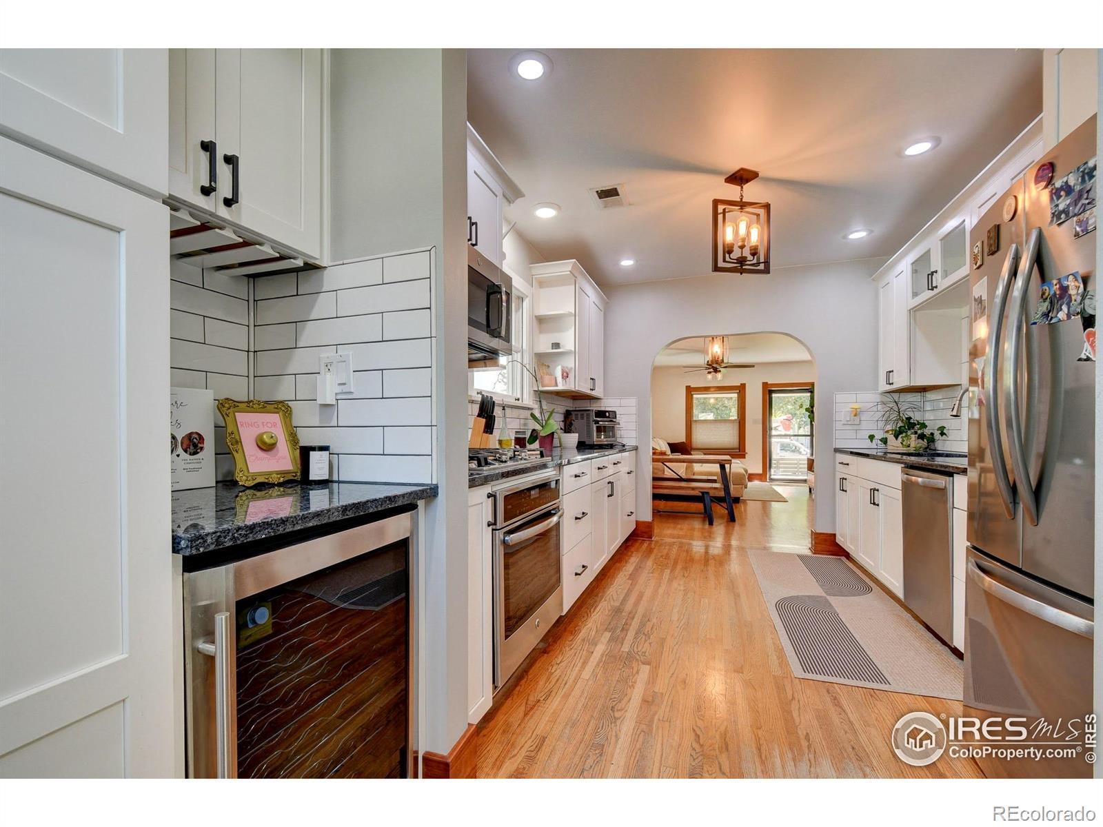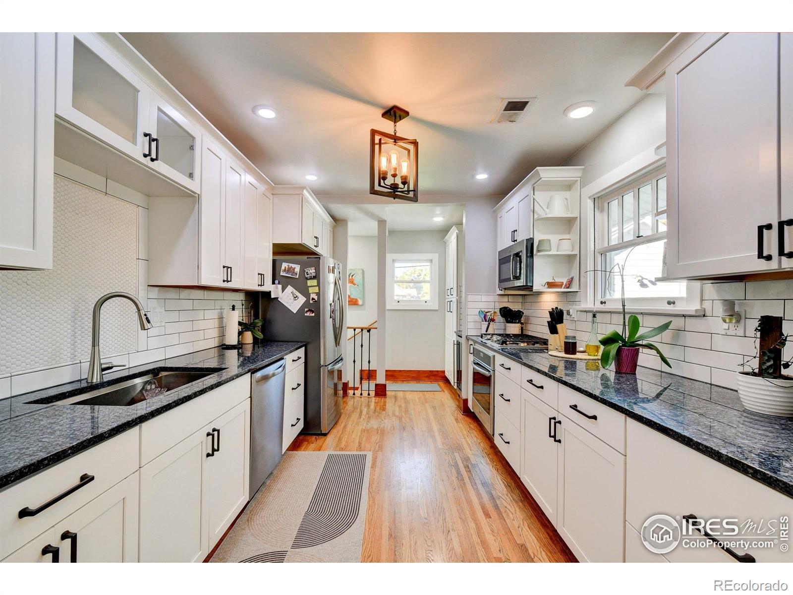 Discover this beautifully updated, move-in ready 1919 ranch bungalow in the heart of downtown Loveland. The well-appointed kitchen features stainless steel appliances, a 5-burner gas range, granite countertops, and a beverage cooler. Inside, find two spacious bedrooms, 1.5 baths, a bright living/dining area, and a finished basement with a large rec room and ample storage. Step outside to a private, fenced backyard with a patio and detached 2-car garage. Best of all, there's plenty of space to build an Accessory Dwelling Unit (ADU) or carriage house. Enjoy easy walkability to local shops, restaurants, and recreation.