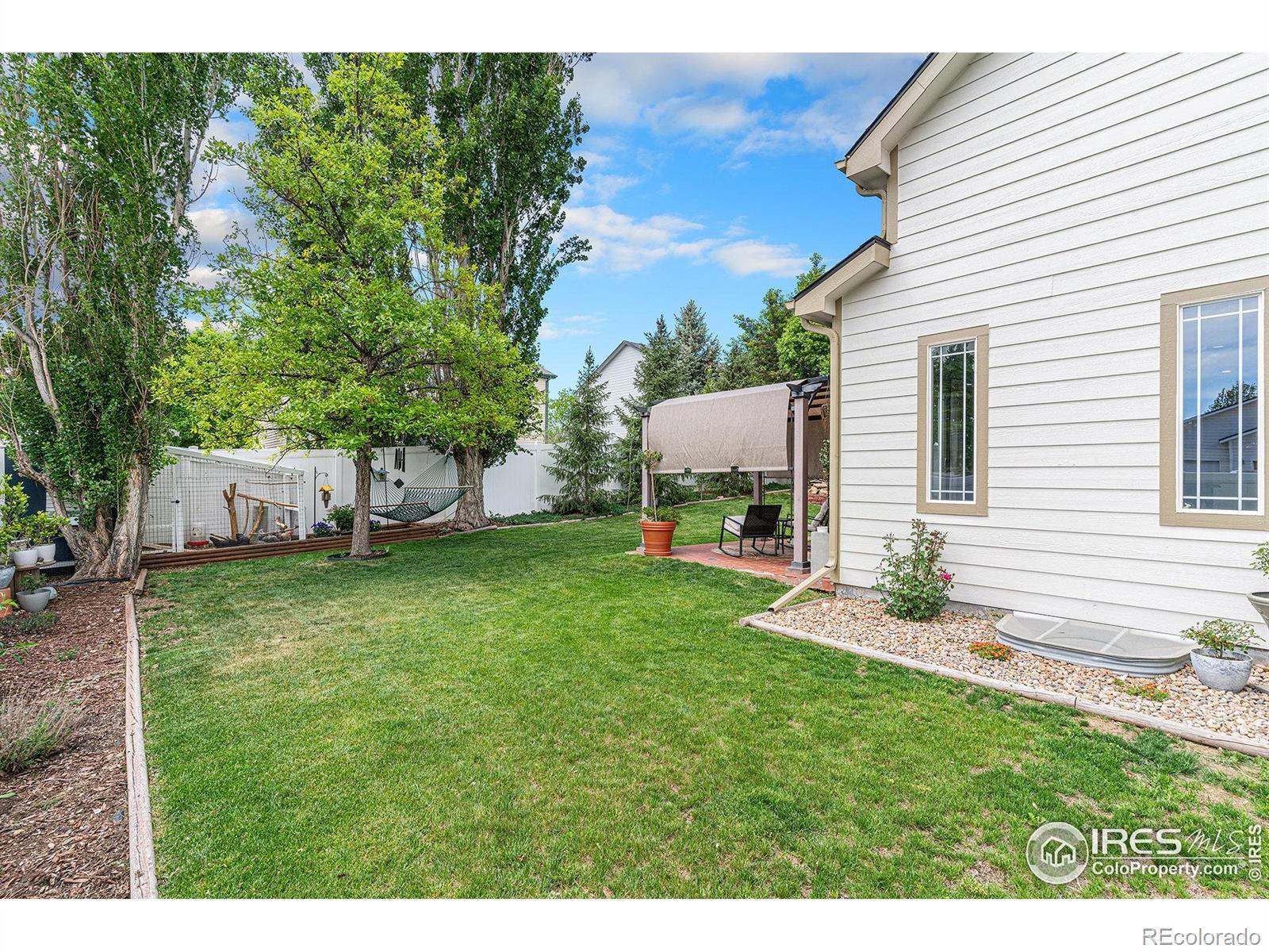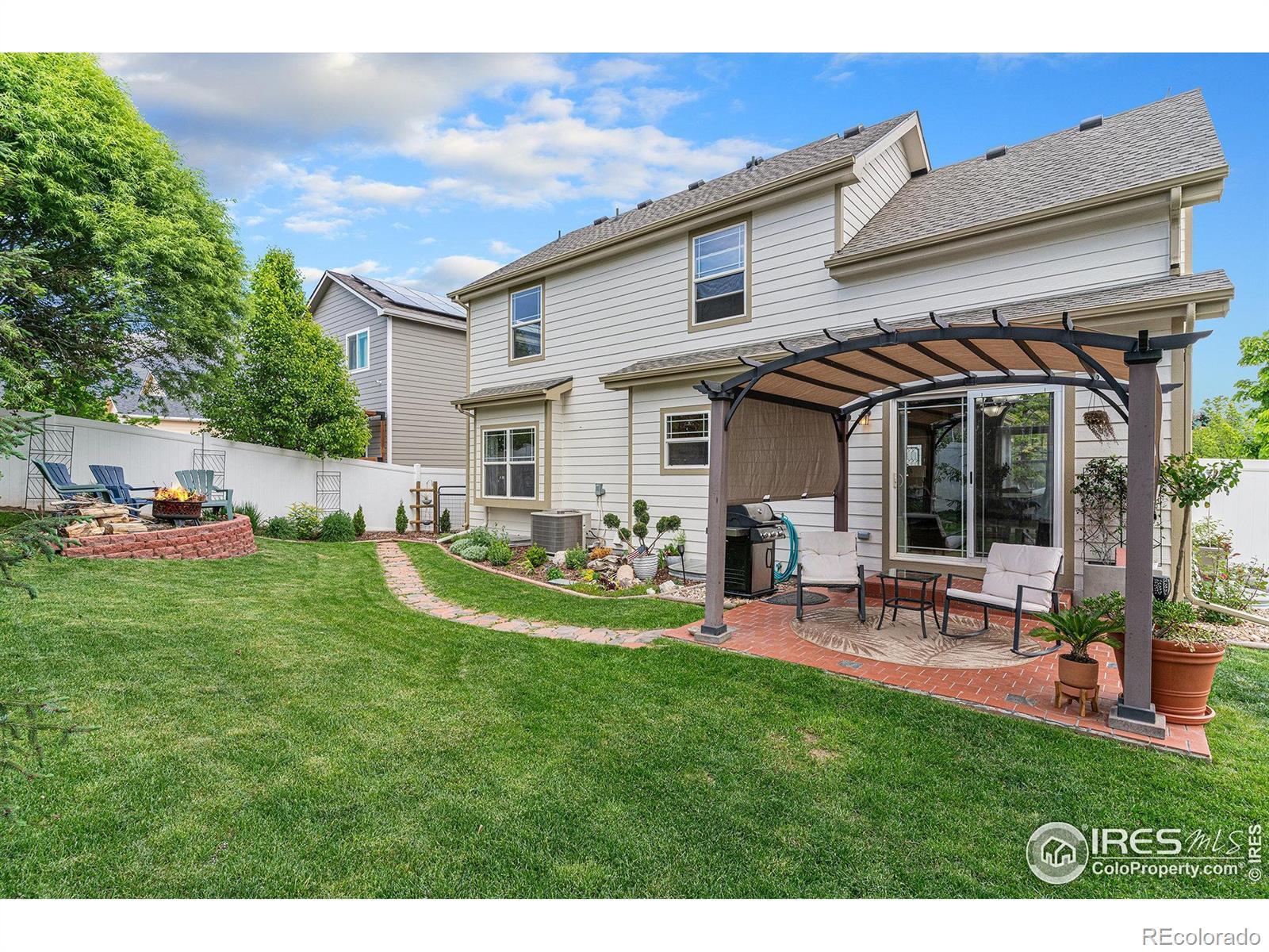 This home features a new roof, newer furnace and central A/C, updated exterior paint, and upgraded lighting. Unwind under the pergola-covered patio or gather around the flagstone firepit area on cooler evenings, all while enjoying tranquil winter mountain views of Longs Peak. With no Metro Tax and an incredibly low HOA of just $260/year. Don't miss this opportunity to own a piece of Johnstown paradise! Welcome home to this stunning 2-story residence, ideally situated on a desirable corner lot in highly sought-after Johnstown. Boasting 4 bedrooms and 3.5 baths across a spacious 2904 finished square feet, this home offers comfort and convenience for everyone. Enjoy the elegance of hardwood floors throughout the main level, featuring a coveted main floor primary bedroom for easy living. The fully finished basement expands your entertainment options with a fantastic game/rec room and a stylish wet bar, perfect for gatherings. Step outside to your private, fenced yard, complete with a dog run and a delightful chicken coop (yes, chickens are allowed!).