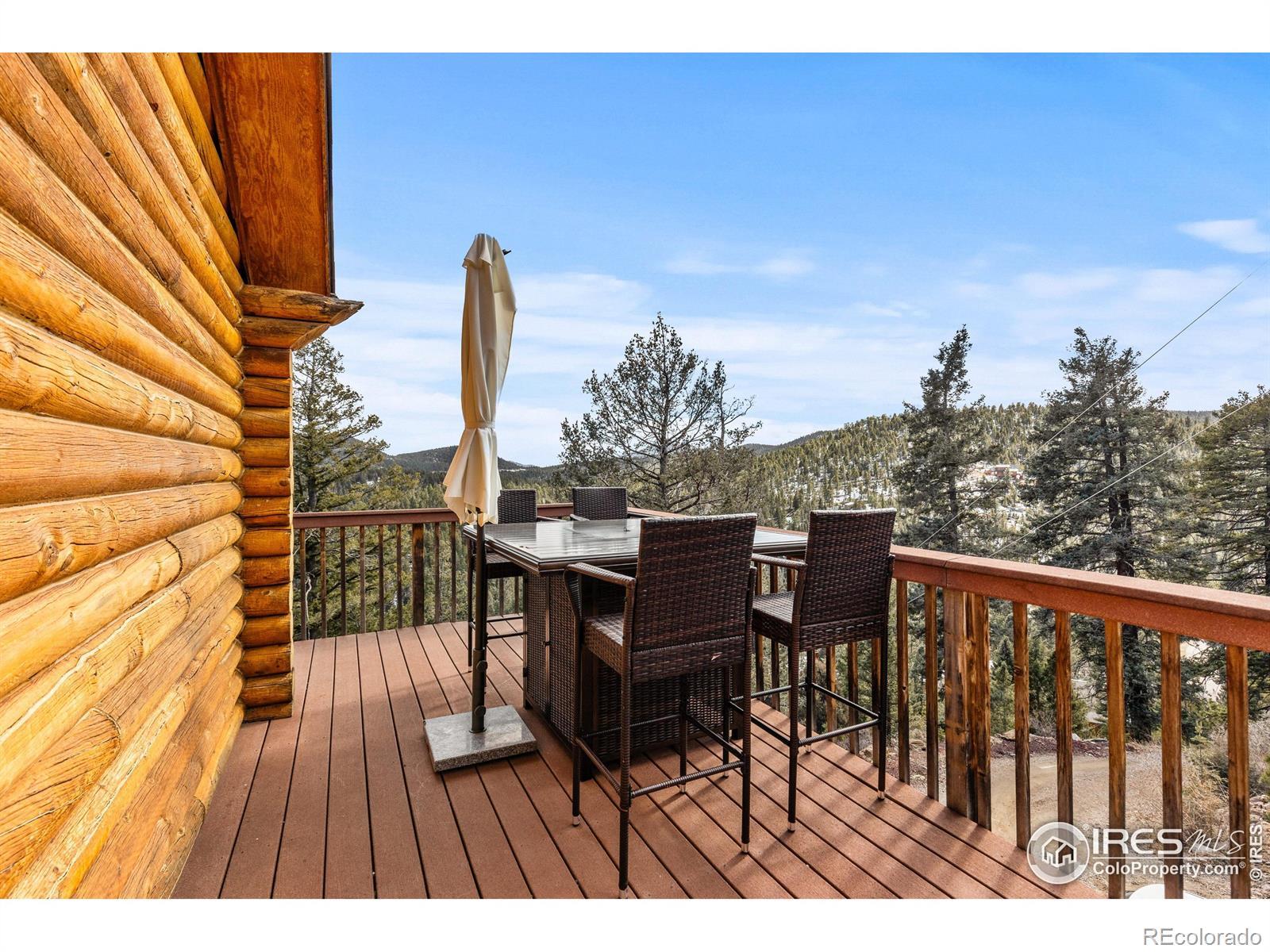 Experience true mountain living in this charming log home on over two private acres in Conifer, CO on a sunny south facing lot. Perched above the other homes on Blue Sky Trail, this property offers breathtaking, unobstructed views of the foothills and ultimate privacy. The oversized three-car garage provides ample storage for vehicles, outdoor gear, or a workshop. Inside, the open-concept living, dining, and kitchen area is perfect for entertaining, with stainless steel appliances in the kitchen, a cozy fireplace in the living room, and expansive windows that flood the space with natural light. Step outside onto the wrap-around deck to take in the sweeping vistas or access the functional flat yard, ideal for kids, dogs, or outdoor gatherings. Upstairs, you'll find two spacious bedrooms and a full bathroom with a skylight, adding warmth and brightness. The walkout basement features a third bedroom, another full bathroom, a laundry room, and a flexible living space that can serve as a home office, gym, additional living room, or entertainment room. Enjoy the recently added laminate flooring to the basement to make an additional living space. This home offers the perfect blend of rustic charm and modern convenience, located just minutes from grocery stores and restaurants in Aspen Park and Conifer, and only 35 minutes from Denver. This property is a short sale. Please contact broker for details.