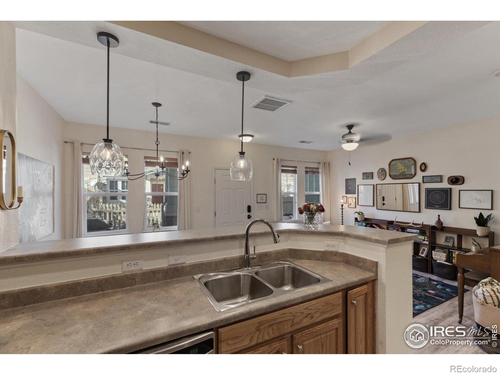 This thoughtfully designed two-bedroom, three-bath townhome-style condo offers an easy,flexible layout with room to live, work, and gather. The open main level flows naturally between kitchen, dining, living, and outdoor spaces -well suited for everyday life and casual entertaining.A standout feature is the generously sized, fenced front yard - ideal for grilling, outdoor dining,or simply enjoying a bit of fresh air and privacy.Upstairs, the spacious primary suite includes an ensuite bath and walk-in closet. A secondary bedroom with full bath provides comfortable accommodations, while the loft offers adaptable space for a home office, music area, book nook, or play space. An attached two-car garage adds everyday convenience and storage.Take a turn around the block for a stopover at the Reunion Coffee House, or venture moments further to the Reunion Recreation Center (pool, gym, sport courts) accessible via a scenic playground the lake surrounded by mountain views. With restaurants and groceries just minutes down the road, this is a well-balanced home that exemplifies practical living within one of Reunion's most loved locations.