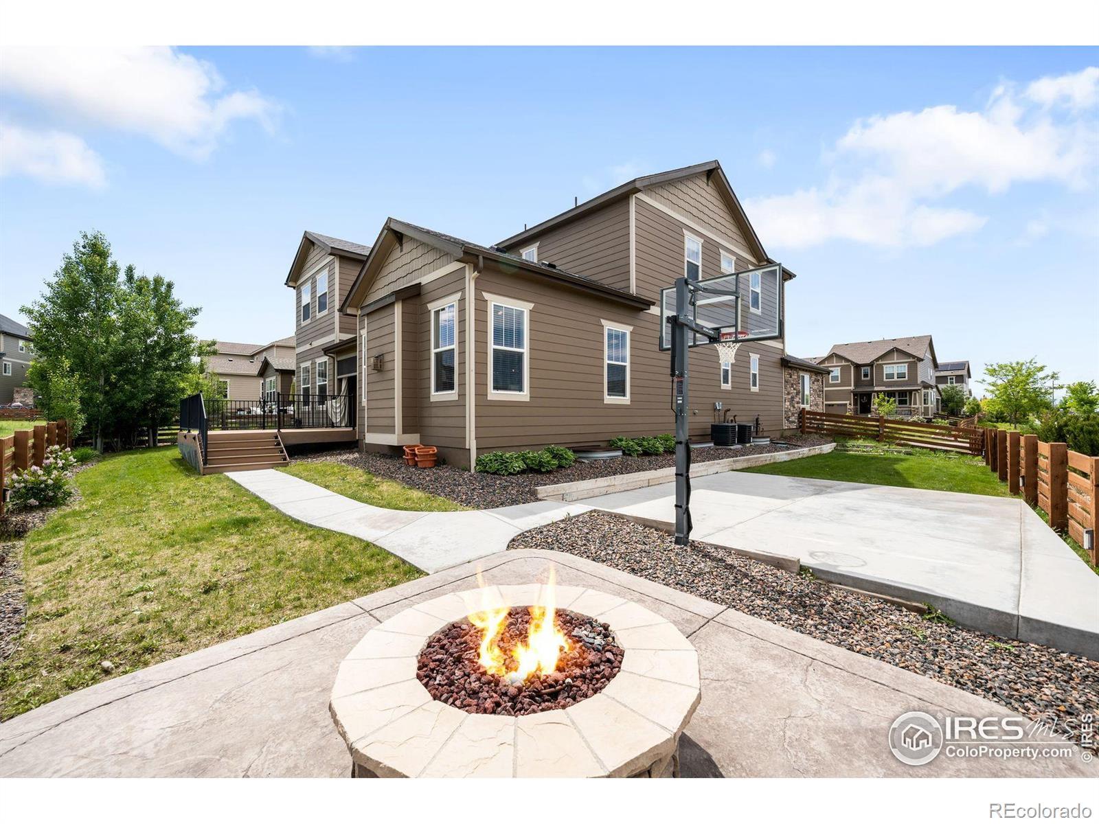 Welcome a beautifully crafted custom home offering a perfect blend of functionality and comfort across three finished levels. Inside, the main floor features a spacious living room centered around a cozy fireplace, seamlessly flowing w triple sliding glass doors to a covered patio with a custom shade and its own outdoor fireplace-ideal for entertaining year-round. A dining area offers space for gatherings, while a dedicated office provides a quiet place to work from home. The main level also includes a convenient powder room and a private bedroom with an en-suite bath featuring a walk-in shower. Upstairs, the expansive primary suite is a relaxing retreat, complete with dual sinks, a soaking tub, a walk-in shower, and a custom California Closet walk-in. The loft area provides a comfortable sitting space or reading nook. Two additional bedrooms share a Jack and Jill bathroom, and a third upstairs bedroom features its own walk-in closet with access to a second full bath. The upstairs laundry room includes a utility sink for added convenience. In the finished basement, you'll find a spacious bedroom with a walk-in closet and an adjacent bathroom with a walk-in shower-perfect for guests or multigenerational living. Parking and storage are easy with a total of three garage spaces: a two-car garage and a separate one-car garage, offering plenty of room for vehicles, gear, or a workshop setup. Step outside to enjoy a beautifully designed outdoor space, complete with a covered patio with shade covering and a dedicated basketball court with hoop and concrete pad-perfect for recreation and play. Thoughtful upgrades include a custom California Closet system in the primary suite, custom pantry shelving, enhanced shelving throughout, and the addition of the patio covering and basketball court. Nestled in a desirable neighborhood, this home offers both community charm and modern livability-designed for everyday ease, elevated living, and memorable moments.