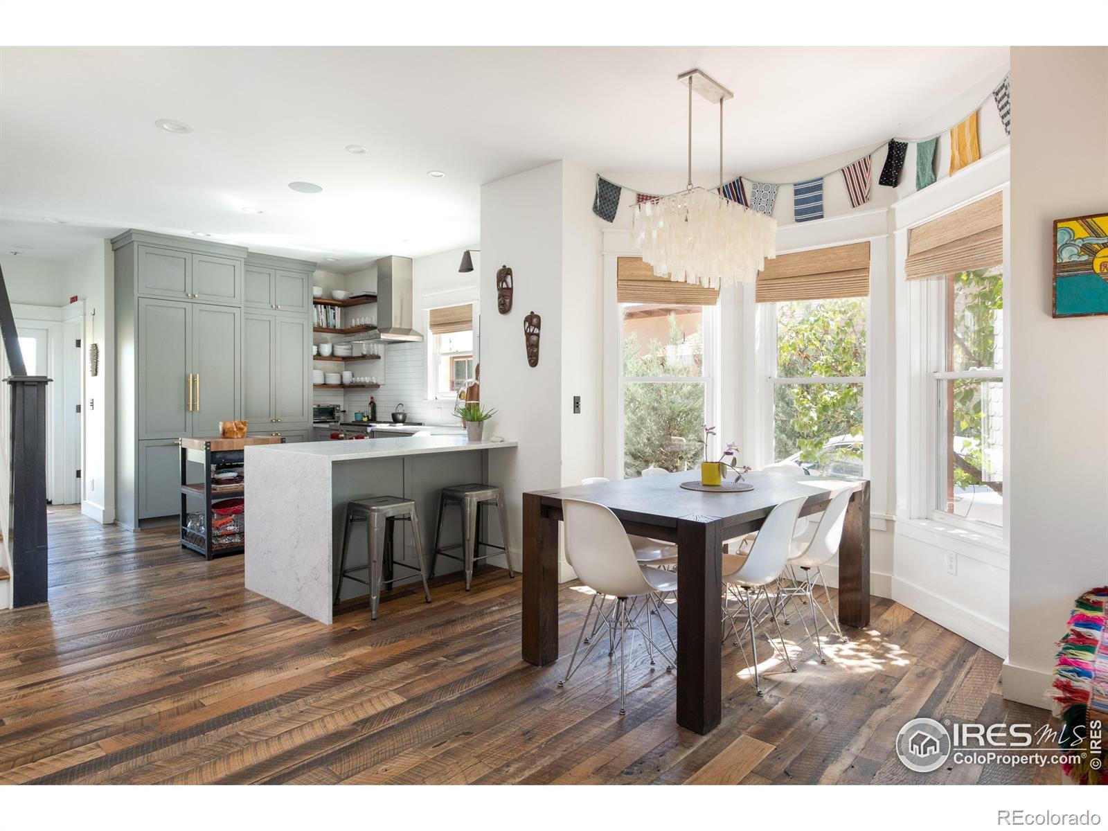 The best of all worlds - exceptional location, pristine condition, breathtaking views, and a thoughtful floor plan - paired with all the charm of Mapleton Hill without being in the Historic District. This stunning home seamlessly blends classic character with modern design. Fully remodeled, it features an open main-level layout, a state-of-the-art kitchen and spa-like bathrooms. The upstairs primary bedroom is a true retreat, offering a luxurious bathroom, spacious walk-in closet, abundant natural light, views and exceptional privacy. The second level also includes a charming office nook tucked into the iconic turret and a convenient upstairs laundry room. A main-level bedroom and an additional lower-level bedroom provide flexibility and separation of space. The expansive deck and backyard feel endless, overlooking the horizon and rolling hills to the north. An oversized gear shed and covered bike rack offer ample storage for all your outdoor equipment, while three off-street parking spaces keep your vehicles tucked away while you enjoy a walkable lifestyle. Just steps from Mount Sanitas open space trails, North Boulder Park, top-rated schools, Ideal Market, neighborhood shops & cafes and Pearl Street.