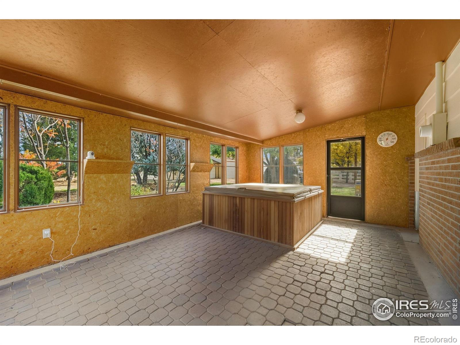 Sitting on a beautifully sized .83-acre lot, this custom-built ranch offers space, privacy, and the charm of mature trees all around. Well-maintained by its original owner, the property feels like a tucked-away retreat all in a convenient Greeley location just minutes from amenities. The main level feels bright and comfortable from the start, with well-defined spaces that maintain a seamless flow between one another. A classic brick fireplace anchors the main living area, while the kitchen keeps things simple and functional with modern white appliances and plenty of room to prep meals. A spacious sunroom with a hot tub offers the perfect year-round spot to unwind, enjoy natural light, or take in peaceful backyard views no matter the season. Three bedrooms are also conveniently located on this level, including a comfortable primary suite with its own private ensuite bathroom. Downstairs, the finished basement provides even more flexibility, featuring a large rec room that offers space for entertainment or lounging, along with two additional bedrooms and an unfinished area ideal for storage or future customization. Outside, the patio offers a gas hookup ready for your outdoor kitchen or grill setup, The property is also a dream for those who need space for hobbies or equipment, featuring an oversized shop, a detached 2-car garage, and an attached 2-car garage. That's parking for multiple vehicles, room for your RV, and endless storage for all your gear, gadgets, and seasonal storage. All outbuildings are wired with electricity, making them ready for work or play. The property also allows for small-scale hobby farming or horses. Prime location that blends quiet living with convenience, with shopping, parks, restaurants, and everyday essentials just minutes away, and only 4 miles from UNC for added ease of access. No HOA!
