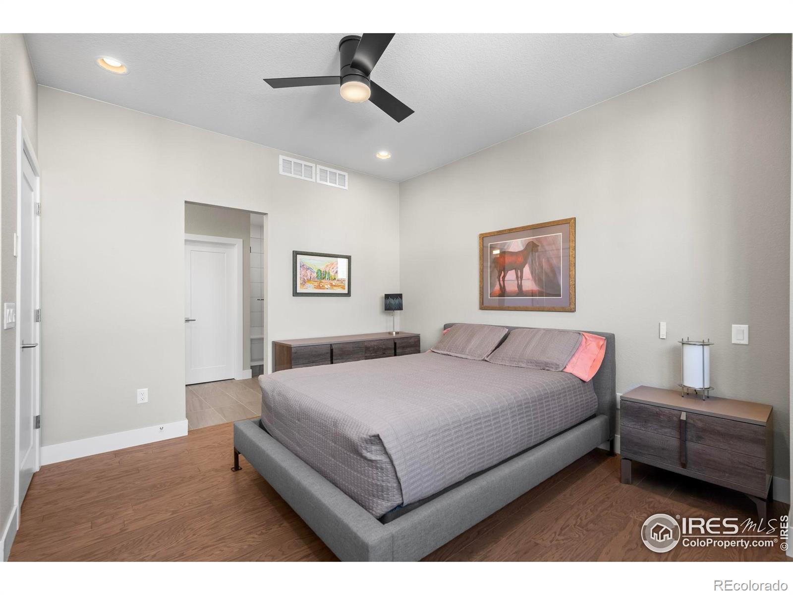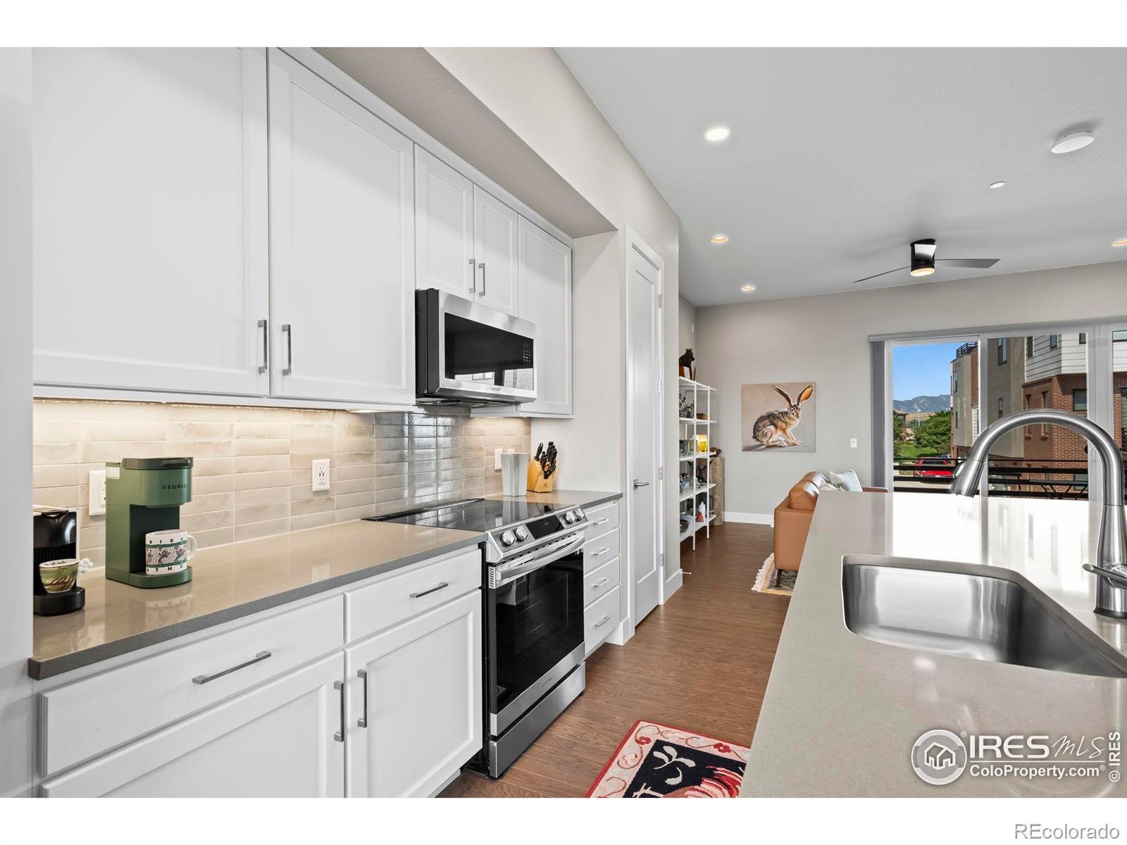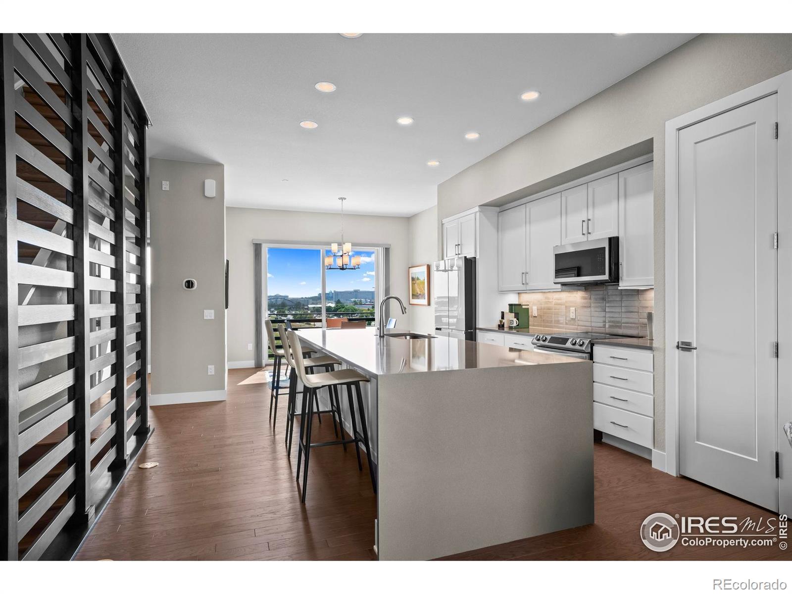 Welcome to 2673 Nicholas Way in Montmere at Autrey Shores, a lakefront community in Superior. Designed for modern living and effortless comfort, this contemporary 3 bedroom, 3.5 bath residence offers nearly 1,850 SQFT of thoughtfully curated space across three levels, highlighted by upscale finishes and stunning Flatiron views showcased thru oversized windows and multiple outdoor living areas. The open-concept main-level featuring soaring 10-foot ceilings and a chef-inspired kitchen that seamlessly connects the living and dining areas. The kitchen is appointed with a large waterfall quartz island, stainless appliances, pantry, and Samsung Bespoke 4-door refrigerator with beverage center. Each bedroom offers the privacy of its own en-suite bath, including the upper-level primary suite complete with a spa-like 5-piece bath and soaking tub, and convenient upper-level laundry with included LG Wash Tower. The first-floor bedroom & bath is ideal for guests, home office, or fitness space. Enjoy exceptional outdoor living with three private spaces: a fully enclosed front patio, a covered West-facing balcony, and a spacious rooftop deck with a gas hookup-ideal for entertaining, or relaxing under the Colorado sky with East/West views. The attached 2-car garage is fully finished with drywall, paint, epoxy flooring, and 220V outlet for EV charging. Additional highlights include upgraded wood flooring and tile thru-out (no carpet), custom-designed closets, designer window and door treatments & modern smart ceiling fans & lighting. Ideally located a short stroll to Autrey Reservoir, scenic trails, parks, open space, the Superior Community Center and Louisville Library Hub, Flatiron Crossing Mall, Lifetime Fitness, shopping, dining, and with easy access to both Boulder and Denver. Truly a place to call HOME!