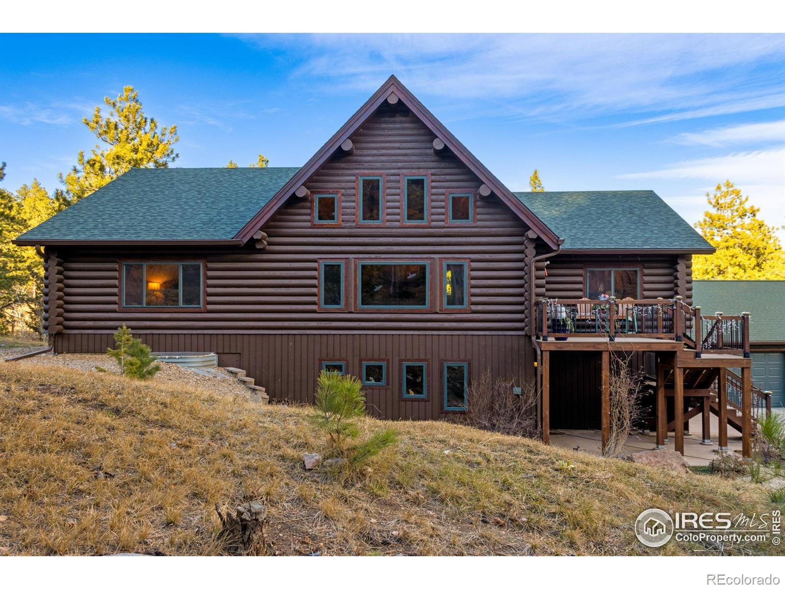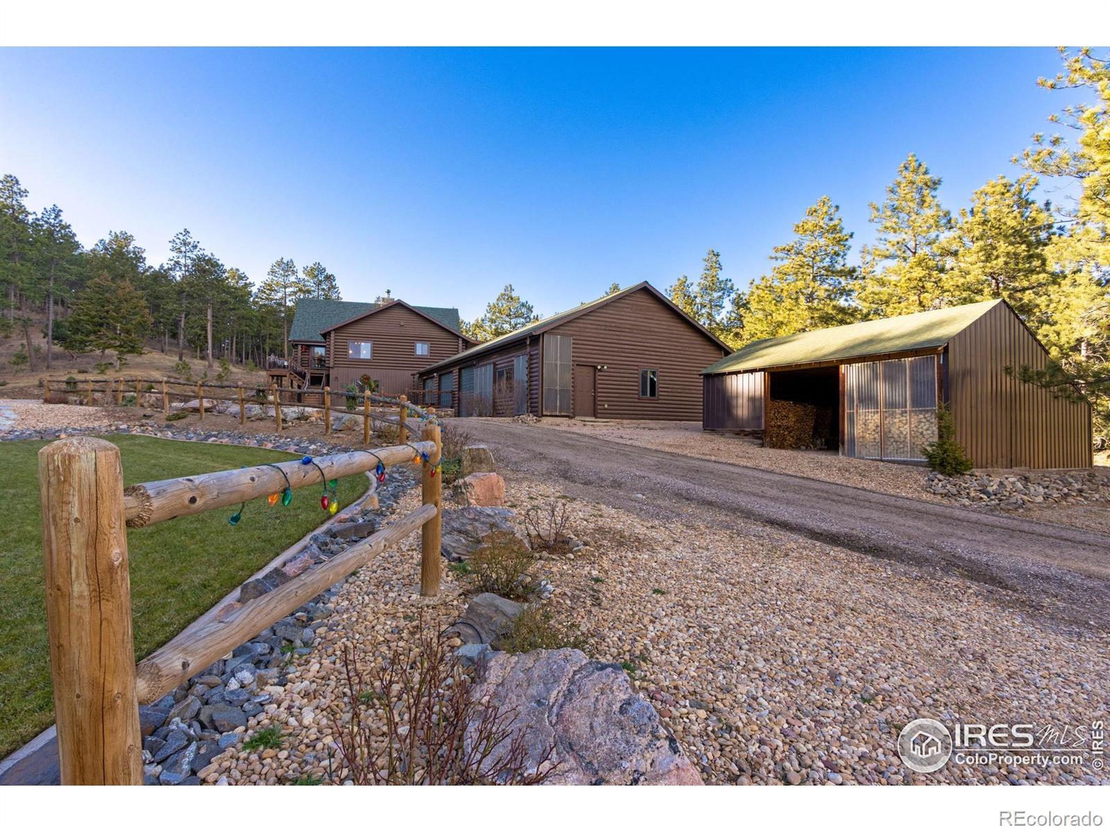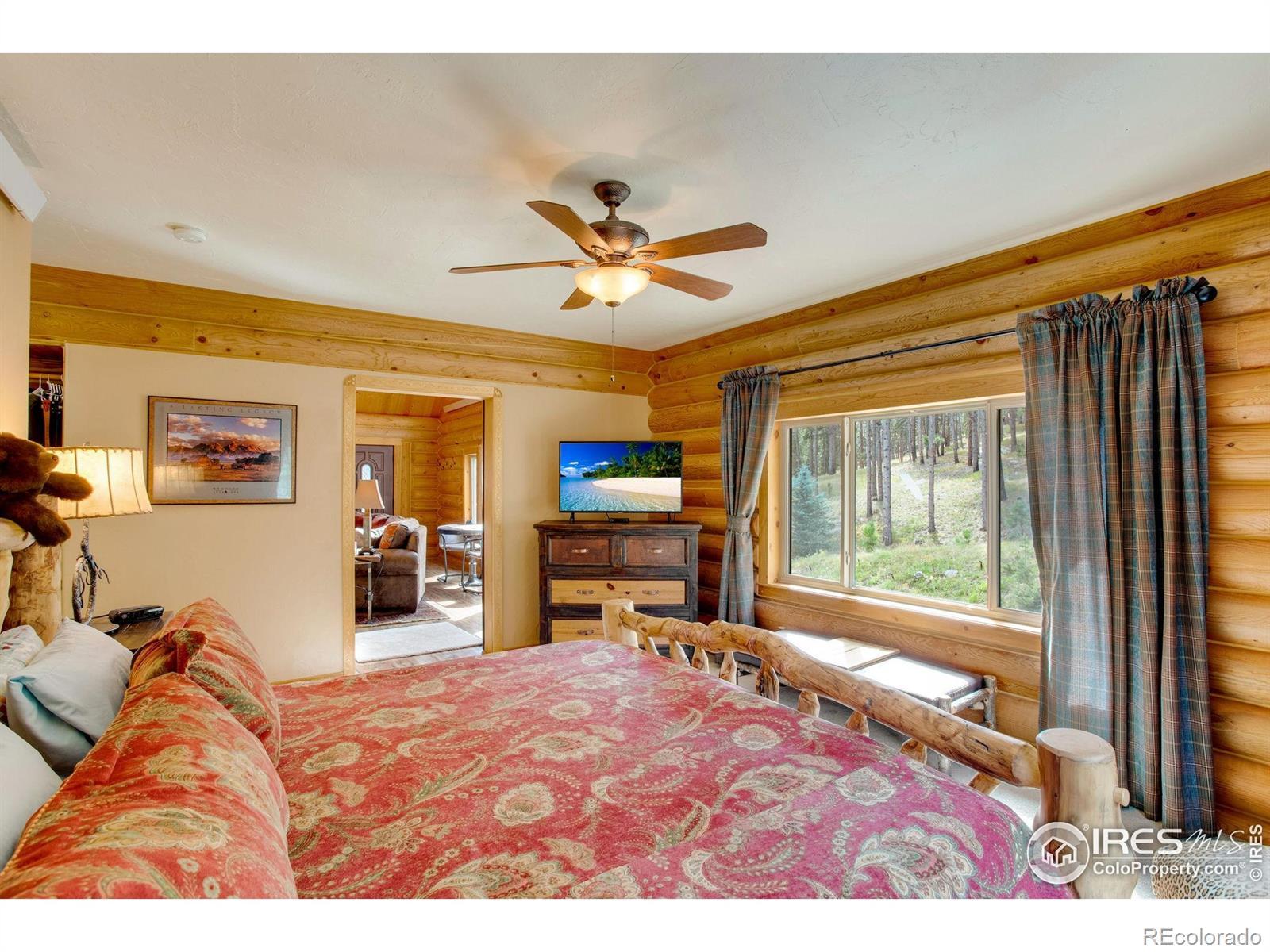 TURN KEY Option with all major furniture included. This luxurious log home sits on a 35-acre timbered lot and features abundant wildlife, a seasonal creek, rolling terrain, meadow and aspen grove. Located less than 30 minutes from Fort Collins, the property offers privacy and a true escape from the city. With 3,966 total sq. ft. and 3,638 finished, the home is solidly built and full of character and upgrades. Enter through a spacious grand foyer into a large living room with vaulted ceilings and an impressive floor-to-ceiling stone fireplace. The kitchen features granite slab counters, stainless steel appliances (all included), pantry, ample cabinetry and counter space. The primary suite offers a retreat with large closet and a 5-piece luxury bath including clawfoot tub, dual raised vanities and a spacious shower. Also on the main floor are a laundry, guest bedroom and an executive office that could serve as a TV room or formal living area. The walk-out basement includes a recreation room, family room with electric fireplace, wet bar, two additional guest bedrooms, a third full bath and two large storage areas, one designed as a cooled wine and food storage room. An attached 1,740 sq. ft. garage/shop provides ample space for vehicles and projects, complemented by a 625 sq. ft. covered wood storage area. Irrigated sodded area for fun and relaxation plus a front and back patio, water feature and so much more. Call today for a detailed feature list, floor plan or to schedule your private showing.