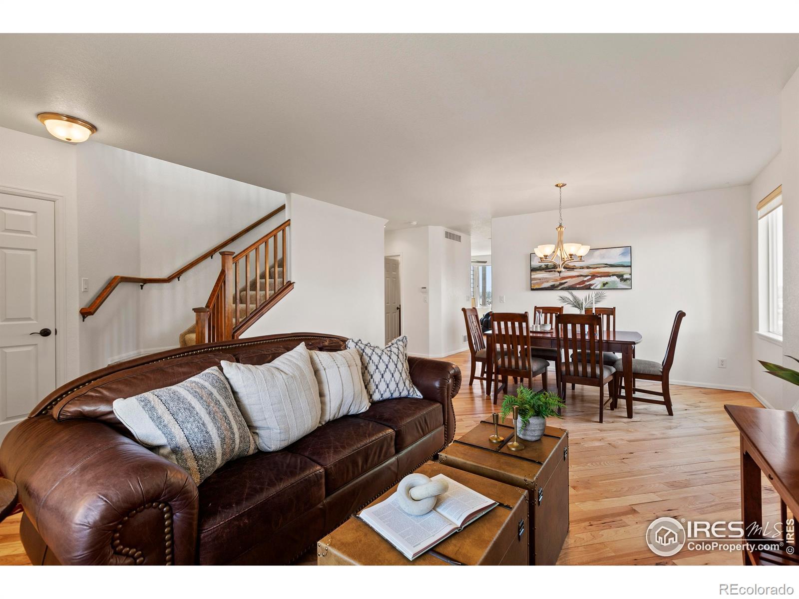 Seller is open to a seller concession with offer! Welcome and discover the perfect blend of comfort, privacy, and scenic beauty in this meticulously cared for 3 bedroom, 3 bathroom, 3 car garage, home in the heart of Timnath Ranch! Thoughtfully upgraded and lovingly maintained by a single family, this home offers a warm, welcoming, feel the moment you step inside. The main level features NEWLY REFINISHED rich hickory hardwood floors throughout and a bright open layout. The kitchen is complete with brand new appliances, custom island, granite countertops, and mountain views right from the kitchen sink window. Just off the kitchen, you'll find the living room with a gas fireplace. It's wired for surround sound which is also connected to the outdoor speakers making it ideal for entertaining or relaxing. Upstairs, you'll find a bright versatile loft space with mountain views, and two spacious secondary bedrooms (one with mountain views). Double doors open to your luxurious primary suite complete with tray ceilings and a serene 5 piece ensuite with two walk-in closets. The large laundry room is complete with a utility sink and is conveniently upstairs with the bedrooms. Just outside is a beautifully landscaped backyard, where mature trees, a custom pergola, and mountain views from some parts of the yard, offer a peaceful retreat. Enjoy the jacuzzi and the additional garden beds to the west of the yard. The home backs to open space with walking trails, rolling hills, and reservoir views, enhancing the sense of privacy and connection to nature. You're two short blocks from enjoying the community clubhouse with gym, pool, and park.