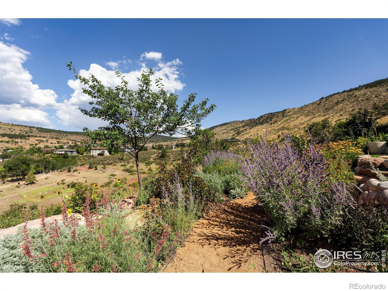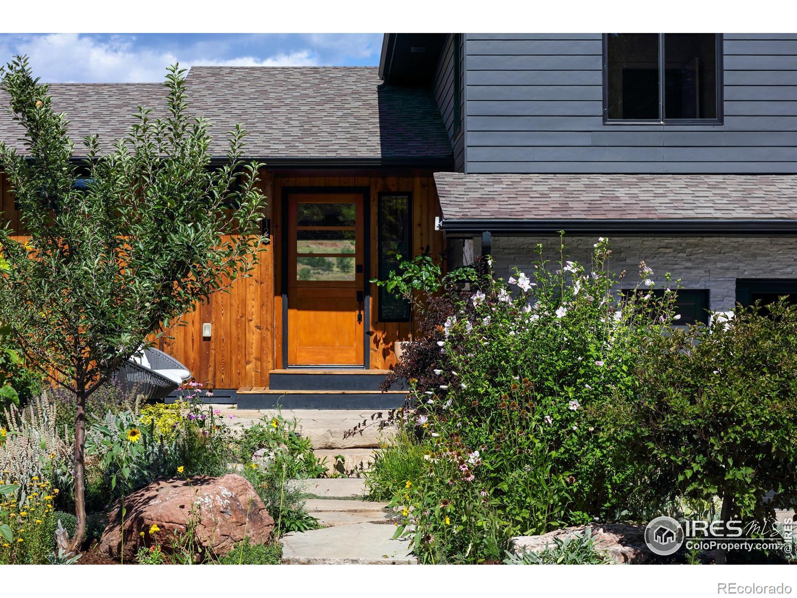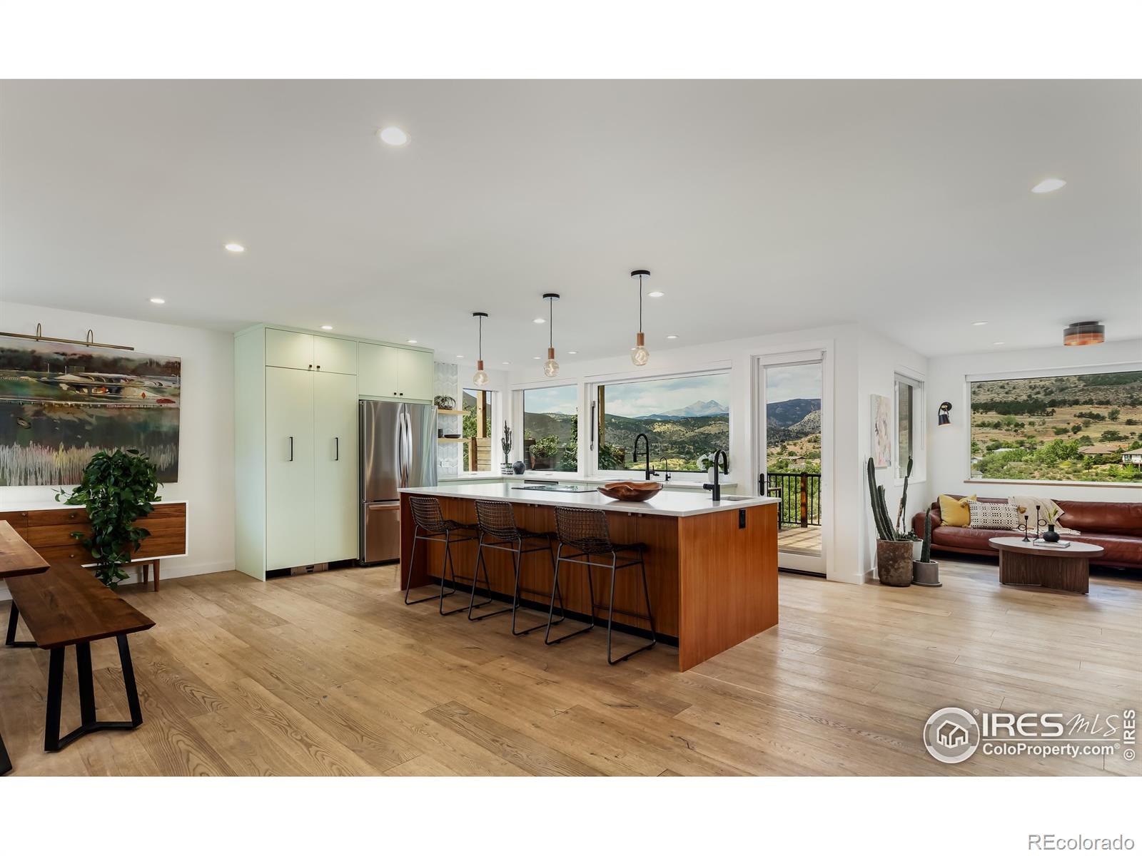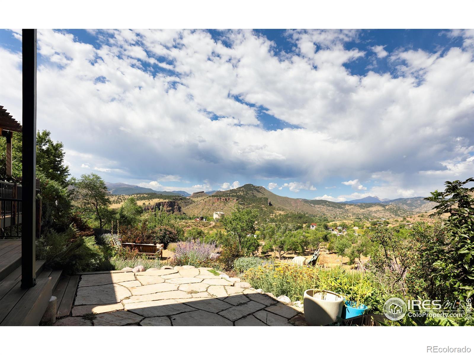 Poised above Lyons with what may be the region's most commanding views, this modern four-bedroom, four-bath residence feels like stepping into a Monet - with Colorado as the canvas. Walls of glass transform Longs Peak and Steamboat Mountain into an ever-changing work of art. A pass-through window opens to the deck, where sunsets and mountain air elevate every meal. Lush, tiered gardens spill with seasonal color, leading to stone patios and a pergola that invite lingering conversations well into the evening. Inside, clean architectural lines and wide-plank oak floors create a harmony of warmth and design. Open-plan living spaces flow effortlessly yet retain an air of intimacy, while the bedrooms are scaled with comfort and livability in mind. The chef's kitchen, anchored by an expansive custom island, opens gracefully into curated living and dining areas, making it both refined and effortless. Separate guest quarters, complete with kitchenette and private patio, provide visitors with independence wrapped in style. And when you desire connection, a brief golf cart ride carries you into the heart of Lyons for Moxie coffee, Marigold dining, or world-class music under the stars. In a county celebrated for extraordinary homes, this one stands as a true original offering elegance, livability, and unmatched views.