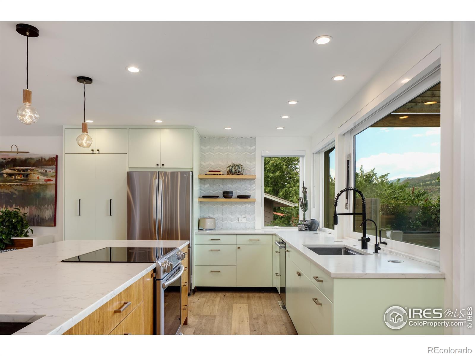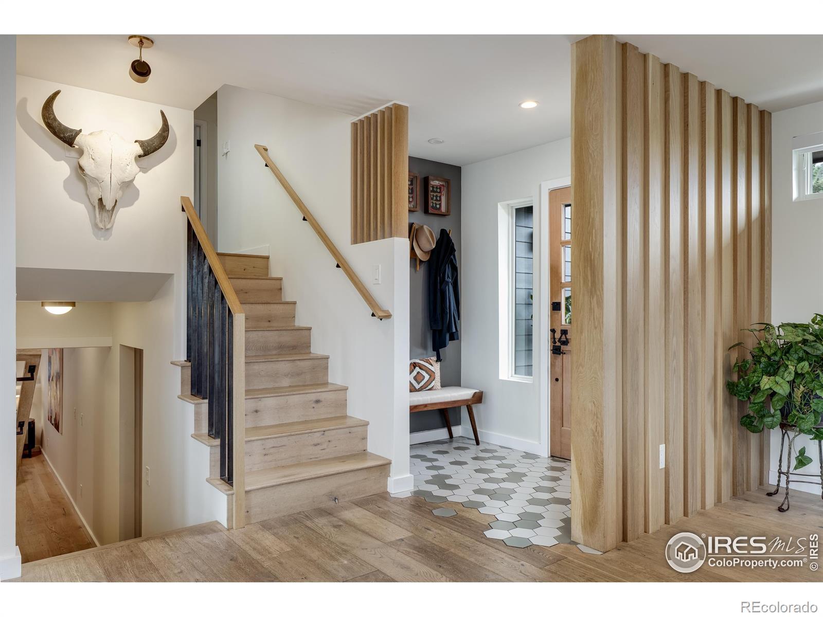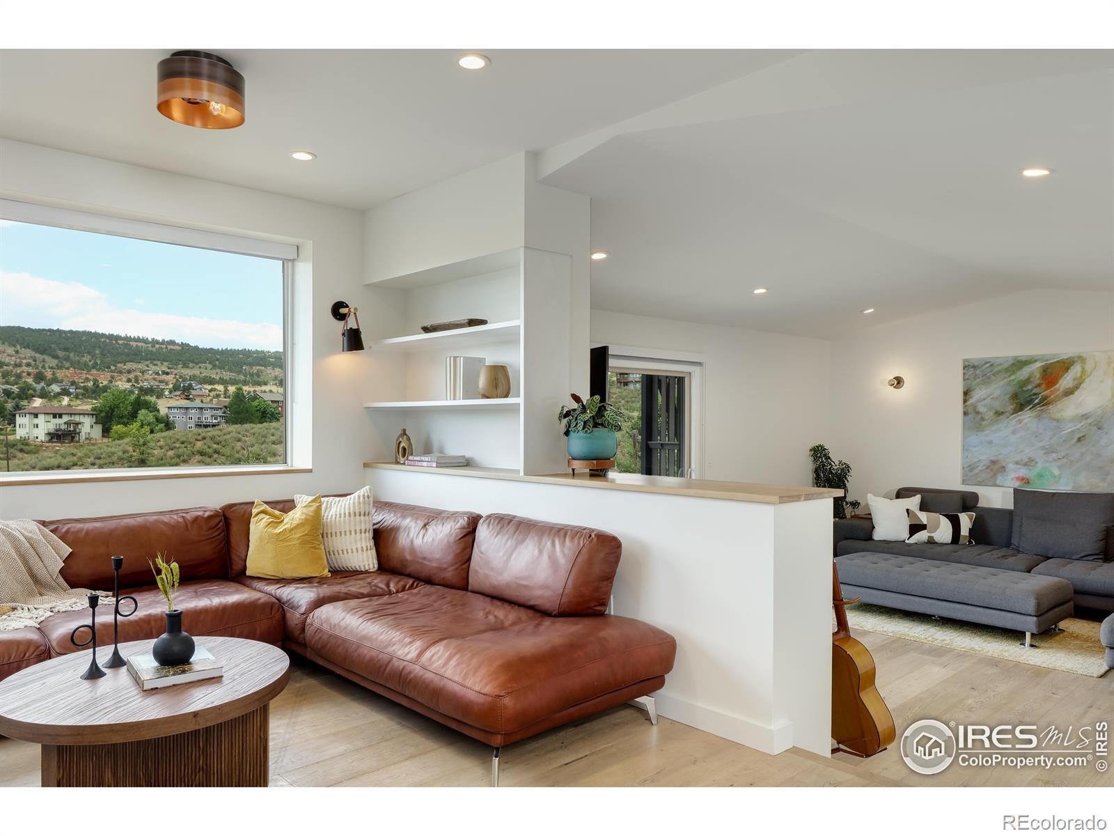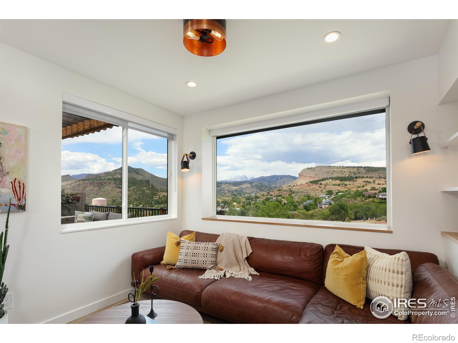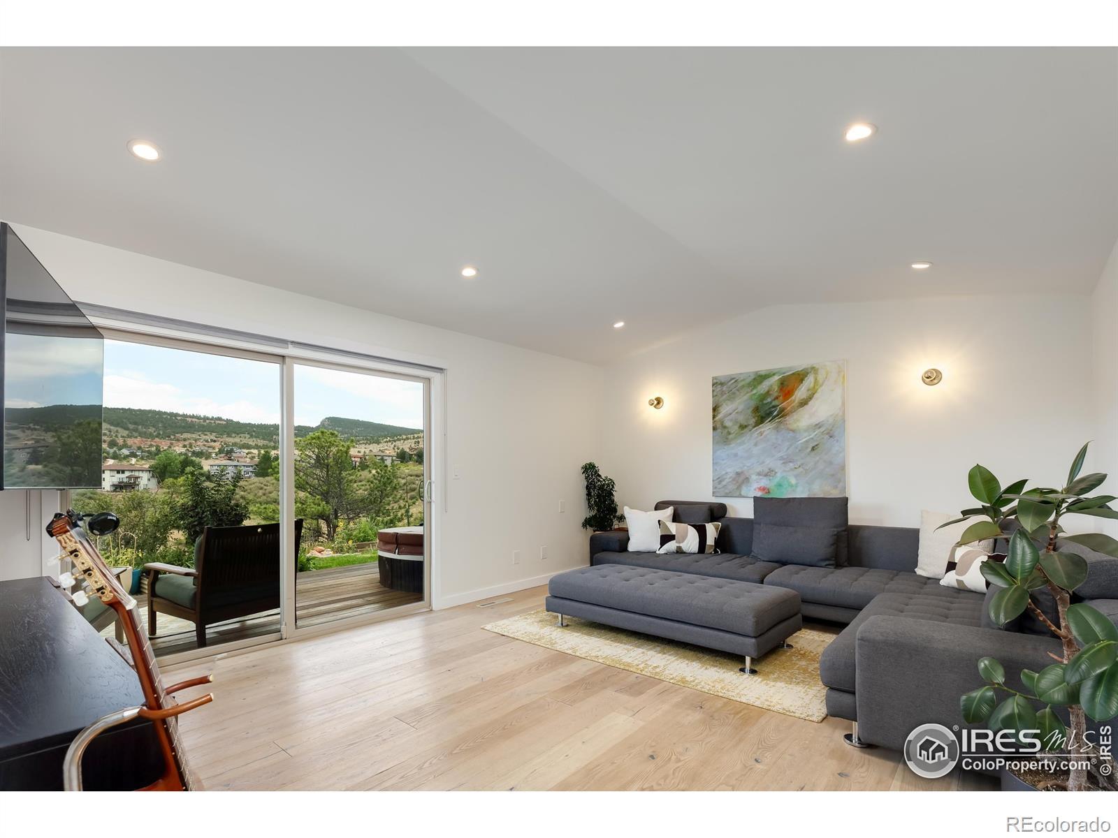 Poised above Lyons with what may be the region's most commanding views, this modern four-bedroom, four-bath residence feels like stepping into a Monet - with Colorado as the canvas. Walls of glass transform Longs Peak and Steamboat Mountain into an ever-changing work of art. A pass-through window opens to the deck, where sunsets and mountain air elevate every meal. Lush, tiered gardens spill with seasonal color, leading to stone patios and a pergola that invite lingering conversations well into the evening. Inside, clean architectural lines and wide-plank oak floors create a harmony of warmth and design. Open-plan living spaces flow effortlessly yet retain an air of intimacy, while the bedrooms are scaled with comfort and livability in mind. The chef's kitchen, anchored by an expansive custom island, opens gracefully into curated living and dining areas, making it both refined and effortless. Separate guest quarters, complete with kitchenette and private patio, provide visitors with independence wrapped in style. And when you desire connection, a brief golf cart ride carries you into the heart of Lyons for Moxie coffee, Marigold dining, or world-class music under the stars. In a county celebrated for extraordinary homes, this one stands as a true original offering elegance, livability, and unmatched views.