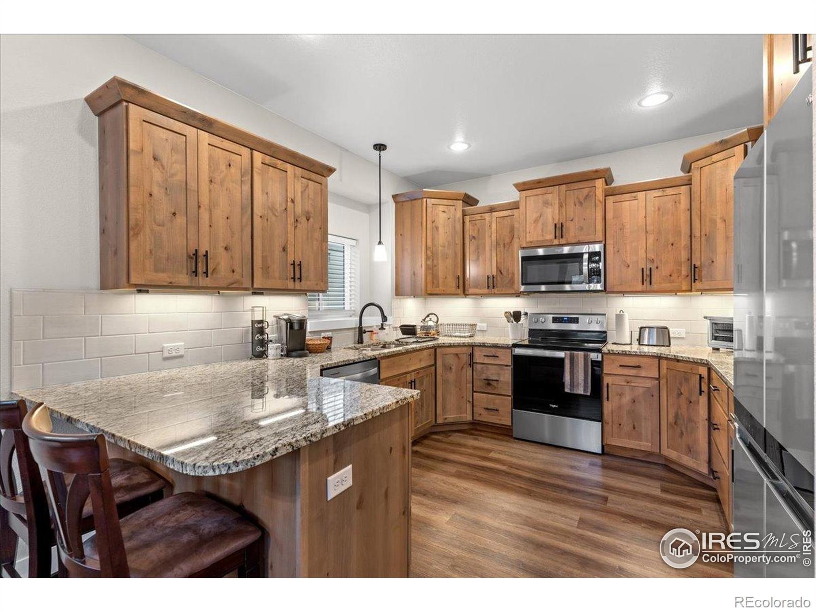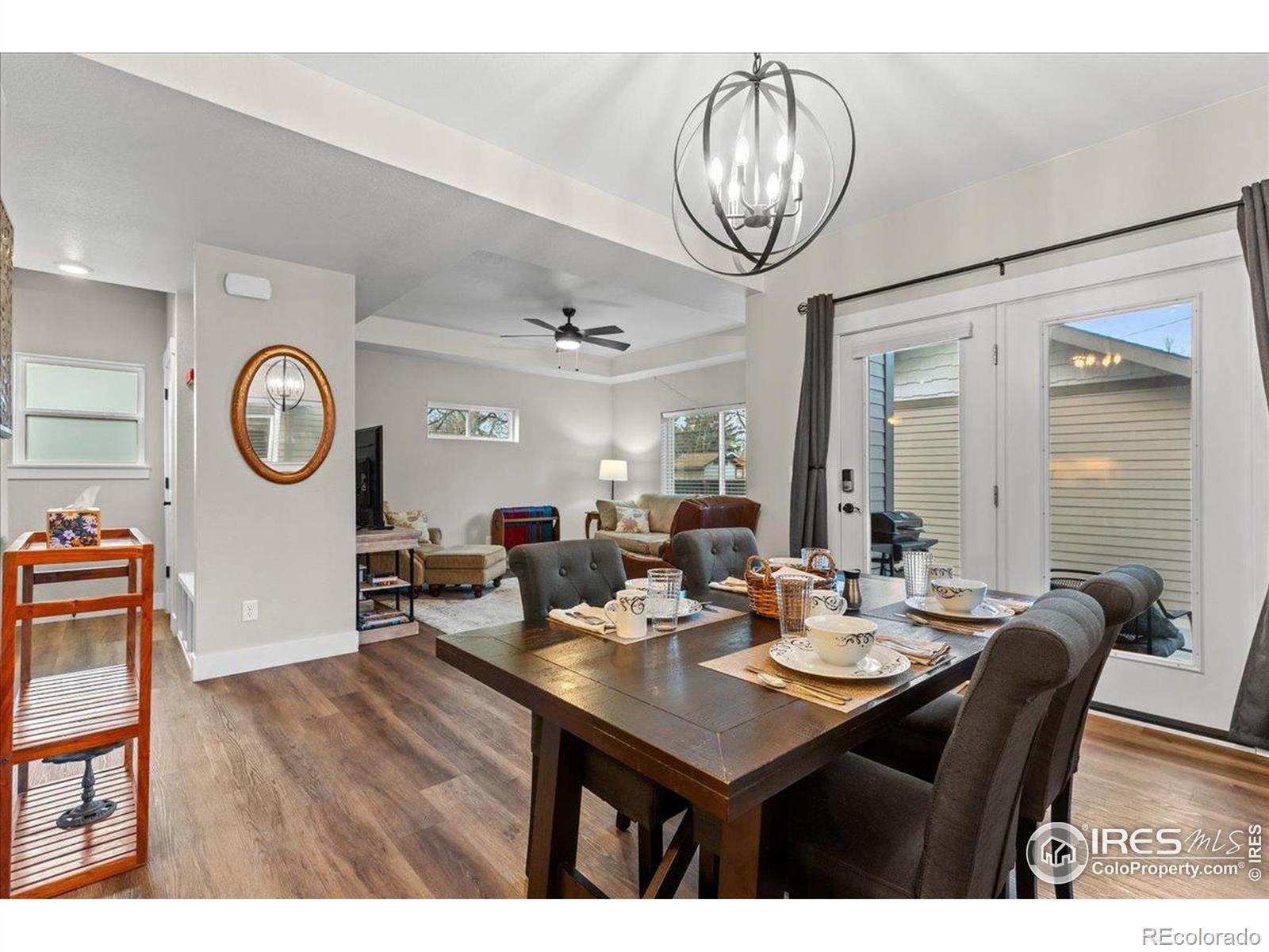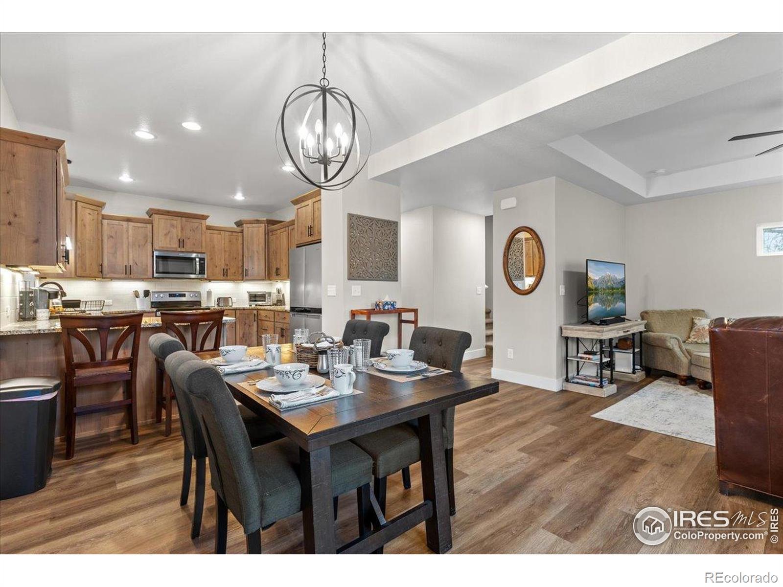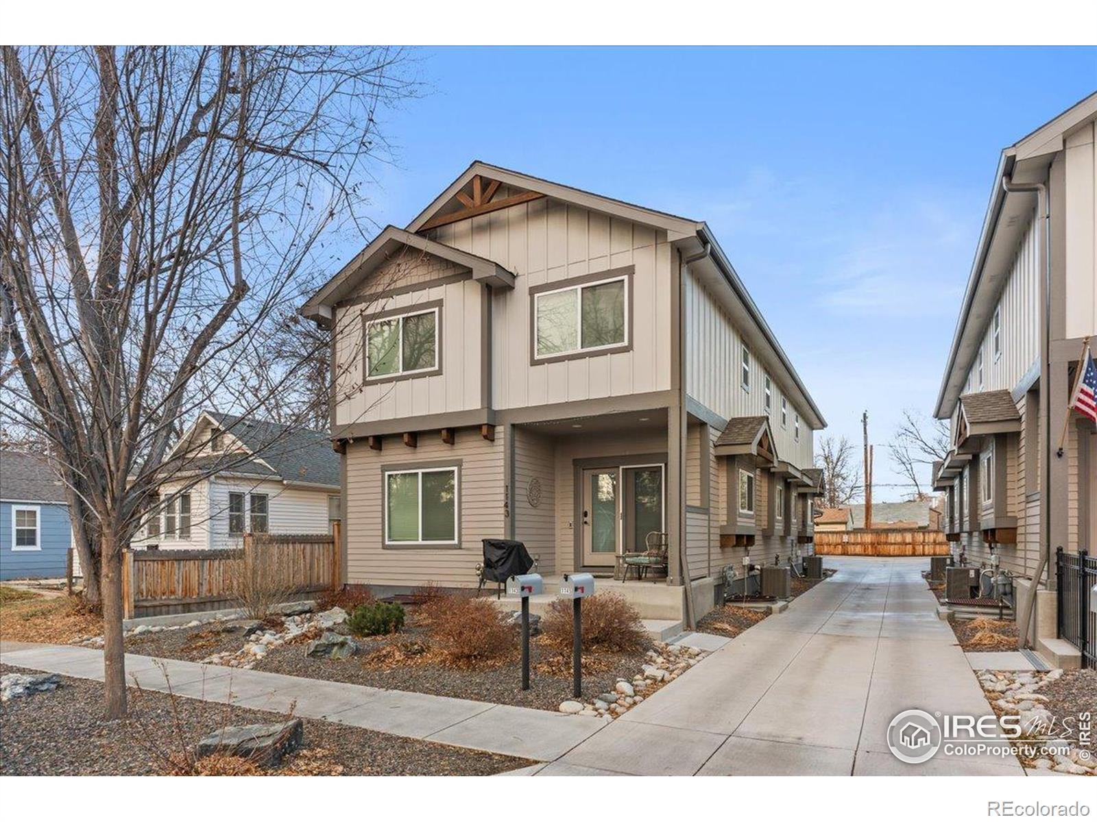 Immaculate high-end condo in old town Loveland. This is a rare opportunity to buy one of these condos built by Custom On-Site Builders, a long-time local custom home builder, and this is the first one listed for sale since they were built. This 2-story condo features 2 primary bedrooms each with a private full bath and an additional main-level half bath. The large kitchen includes custom knotty alder cabinetry with under cabinet lighting. Gorgeous finishes and upgrades throughout including slab granite counters, luxury vinyl plank flooring, stainless steel appliances and more. The laundry includes the washer and dryer and is on the upper level near the bedrooms. This condo also includes a full unfinished basement with 9' ceilings and a rough-in for a future bath. It also includes a 1 car stall of the nearby detached garage and an adjacent exterior parking space. The entire HOA includes only four units with two/building. No metro district. This was a successful, highly sought after, 5-star reviewed, short-term rental for 2.5 years which the future owner could continue, and all the furniture is also available. It is quiet, peaceful, and private.