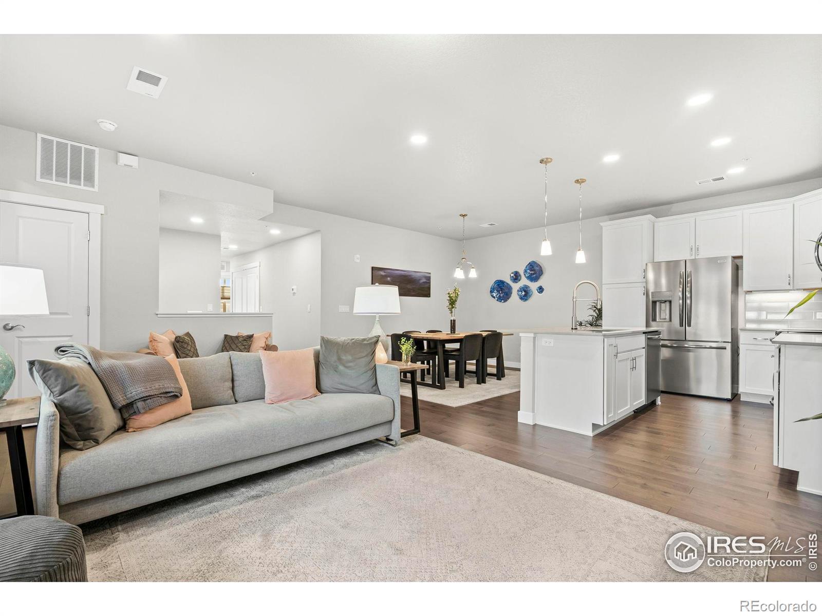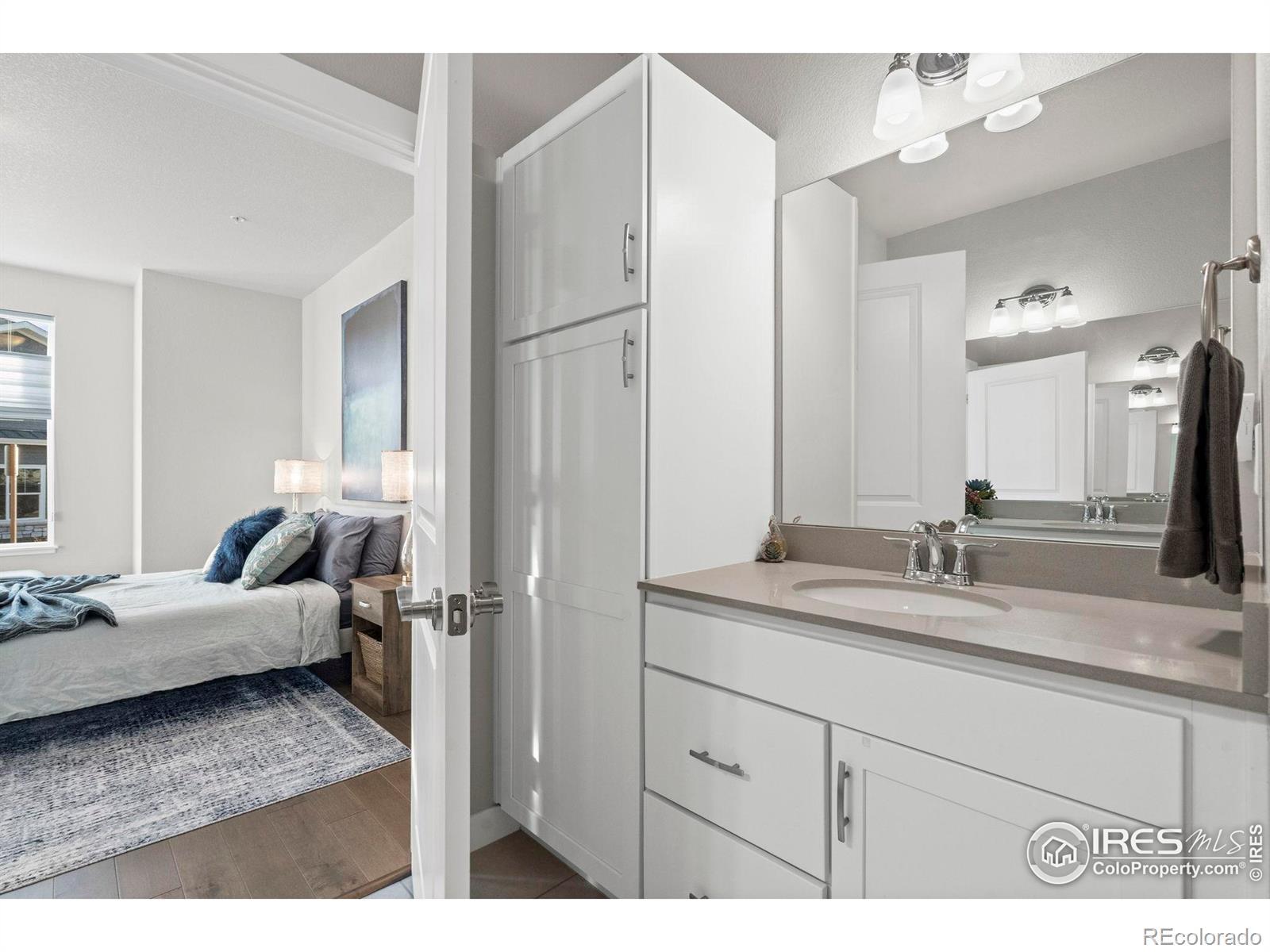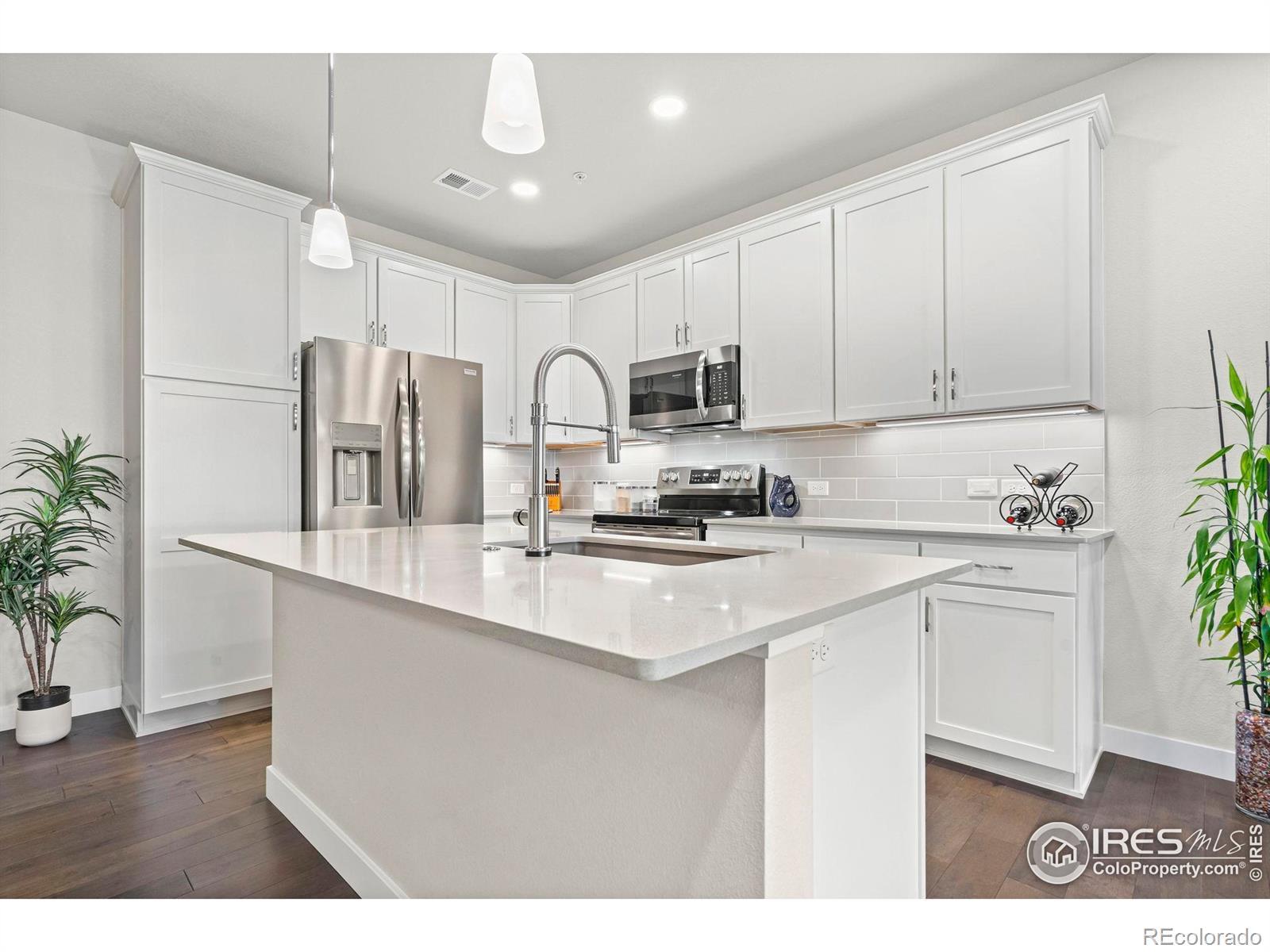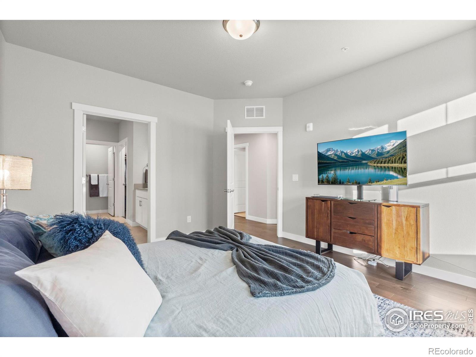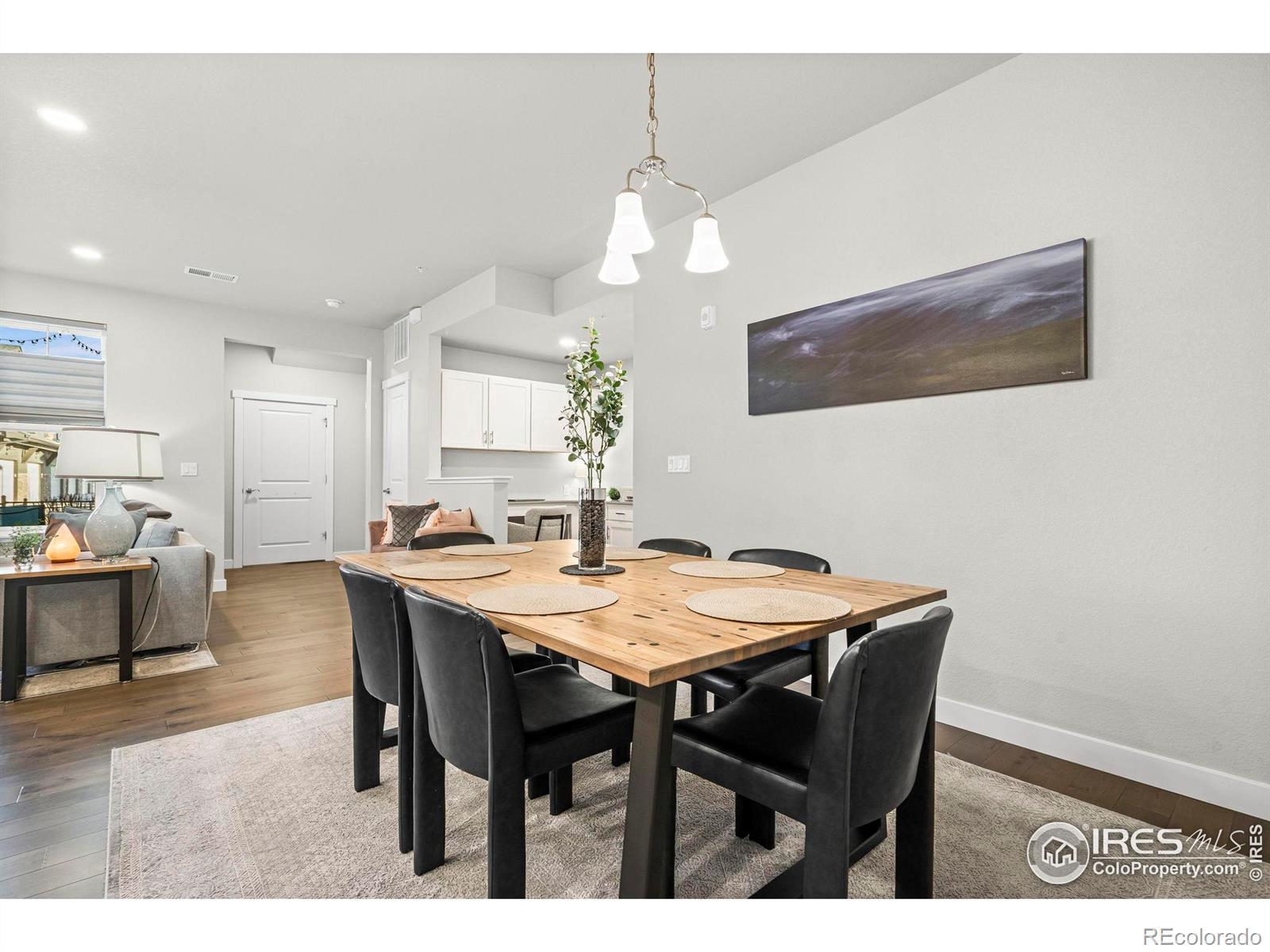 Easy living starts the moment you arrive in this main-floor condo at The Lakes! Designed for a true lock-and-leave lifestyle, this well-located unit puts everyday convenience front and center, with quick access to the shops, dining, and entertainment found throughout the Centerra area. Lovingly maintained by the original owners, this 2-bed, 2-bath unit shines with major upgrades already completed, creating a polished, move-in ready space that feels fresh and welcoming from the moment you arrive. Inside, the open main living area draws you in with abundant natural light and engineered hardwood flooring throughout, creating a seamless flow that's perfect for everyday living. The kitchen features quartz countertops, stainless steel appliances including a new refrigerator, generous prep space, and ample storage that keeps everything organized and within reach. Tucked neatly into the layout is a cozy office or study nook, perfect for focused work, creative projects, or a quiet reading corner without sacrificing the openness of the living space. The primary suite offers a relaxing escape with its own ensuite bathroom and a walk-in closet. Both bathrooms are finished with ceramic tile flooring, adding durability and a cohesive look that complements the rest of the home. A one-car garage adds secure parking and storage, while additional driveway parking offers flexibility for guests or extra vehicles. The home sits adjacent to a community park and is surrounded by scenic walking trails that wind around nearby Houts Reservoir and Equalizer Lake. A few minutes west is Boyd Lake State Park, where you can enjoy more trails, plus boating and water recreation. A community unlike any other, The Lakes proudly stands as Colorado's only Certified Community Wildlife Habitat, offering a rare blend of thoughtfully planned living and a deep connection to nature that truly sets it apart.