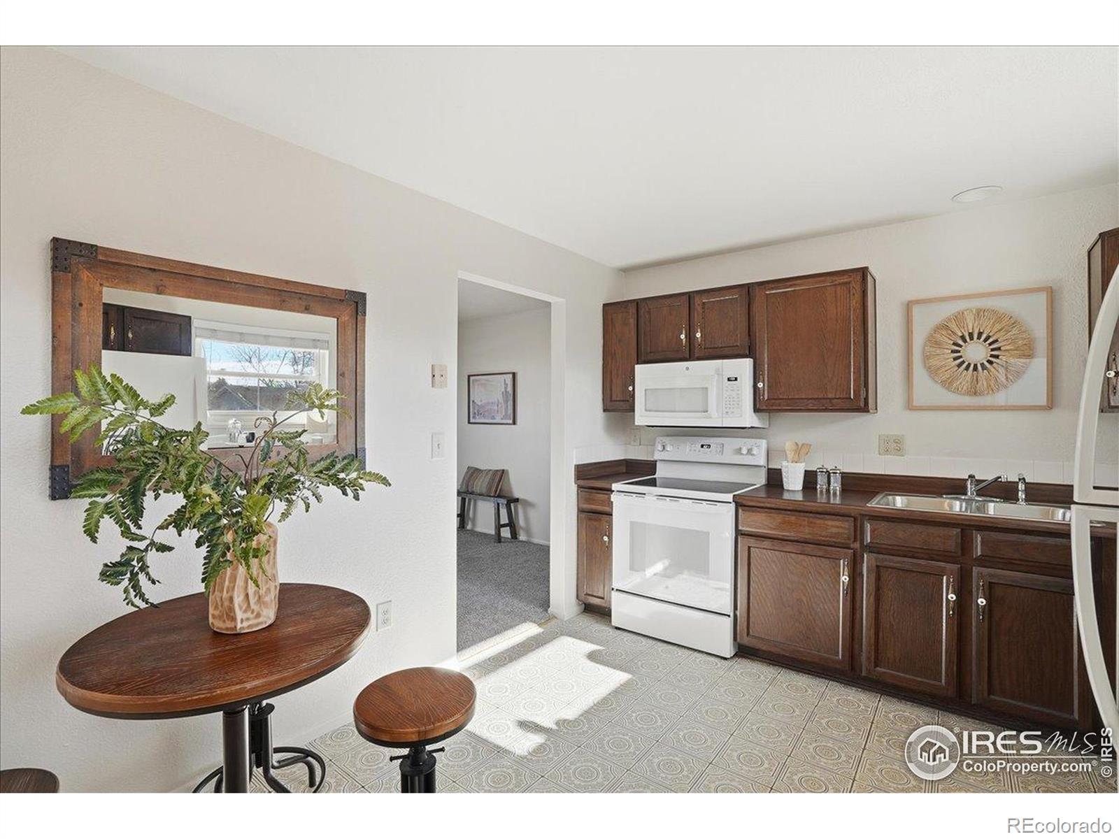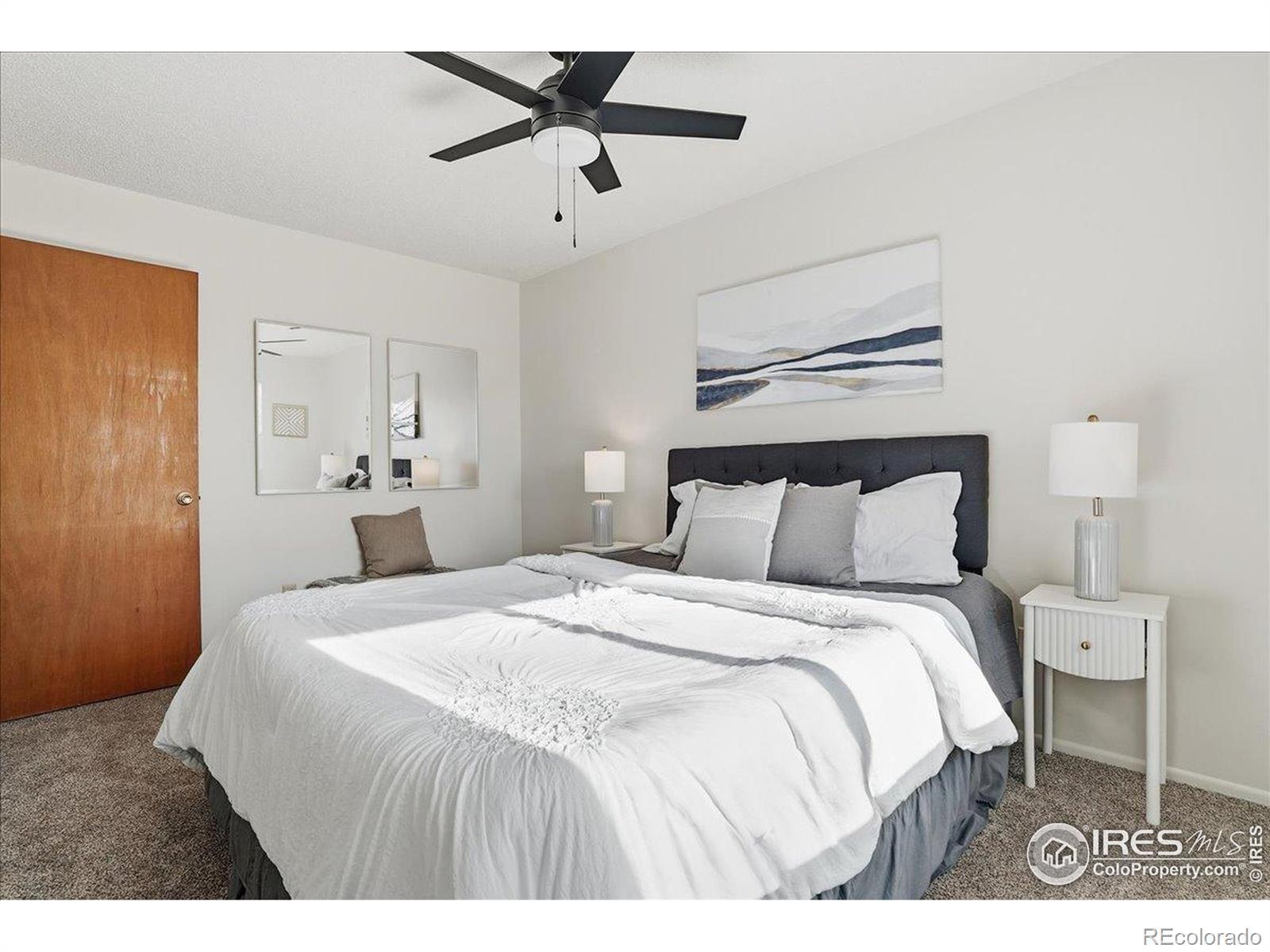 This one is a gem! Well cared for, clean and affordable ranch on quiet side street located within 1 block of Woodmere Park. Fresh interior paint, new carpet, light fixtures, toilets and kitchen sink with faucet define this space making it ready for your personal touch. Main floor full bath has cultured marble tub surround and tile floor. Primary bedroom has a walk-in closet. Enjoy the fully fenced yard from the large patio. Oversized garage has 220 service plus a garden shed for extra storage. This home is located close to schools, shopping and neighborhood park and offers easy access to downtown Loveland, Highway 34 and south Fort Collins