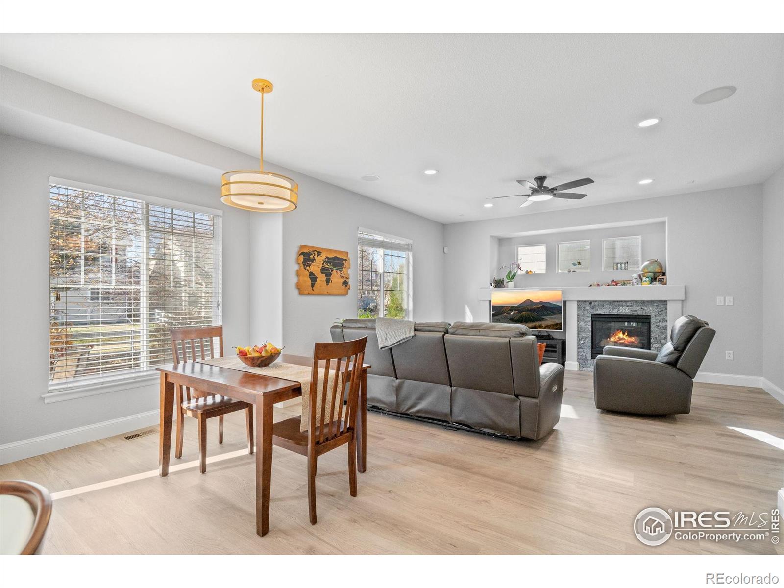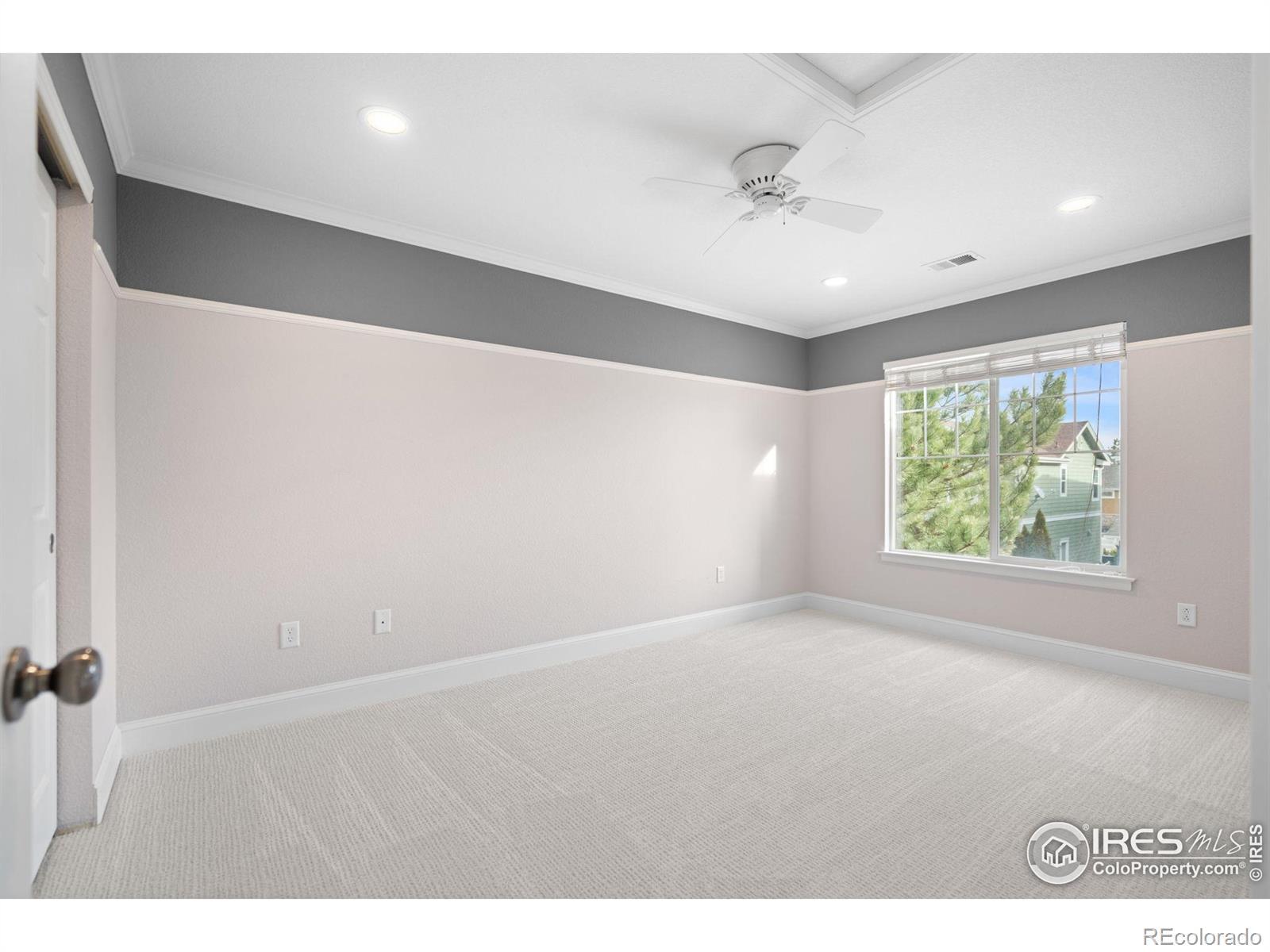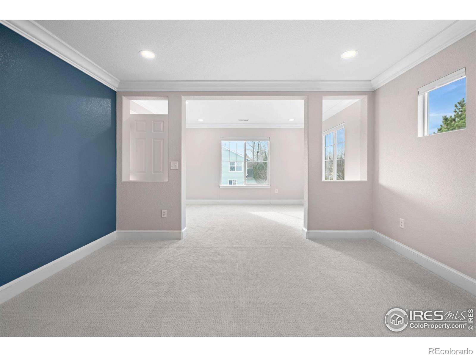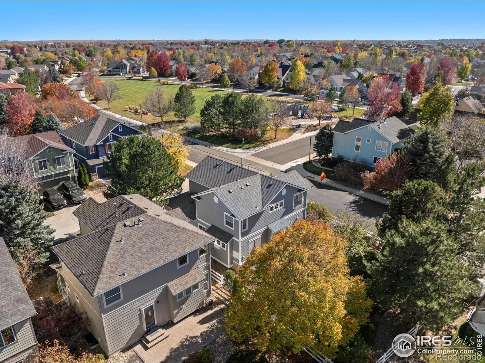 Welcome to Longmont's Renaissance neighborhood! This former model home sits on a desirable corner lot across from a park, offering privacy and a charming backyard with mature trees, shade, and a spacious patio. The home has been thoughtfully upgraded providing the most comfortable, clean and beautiful interiors. Recent updates include a sparkling new kitchen with purpose designed cabinets, quartz countertops, a generous island, stainless steel appliances, tile backsplash, and a walk-in pantry. Additional features include LVP flooring, new carpet, fresh interior and exterior paint, new light fixtures, smart home features and 9' ceilings. The main floor offers a study, powder room, dining area, open-concept kitchen and living room, a convenient laundry room leading to a spacious 2 car garage. The bright living area showcases large west-facing windows and a gas fireplace. Upstairs, the spacious 23' x 14' primary suite features a five-piece ensuite with a jetted tub, modern finishes, and a generous walk-in closet. Two bedrooms enjoy park views. Also, there's an unfinished basement ready for your design ideas. Pride of ownership shines throughout this beautifully maintained home in a highly sought-after neighborhood.