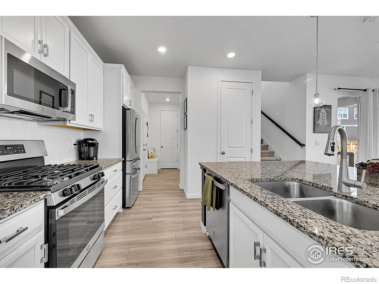 Welcome home to this beautifully updated paired residence by Lennar, featuring the sought-after Plateau floor plan and designer touches throughout. The heart of the home is a modern kitchen with a spacious oversized island, stainless steel appliances, 42-inch cabinets, and a gas range-perfect for cooking, entertaining, and gathering with loved ones. Upstairs, retreat to three generous bedrooms and two full bathrooms, including a luxurious primary suite with an impressive walk-in closet measuring 8'3" x 10'8". The main level offers an open, airy layout and a convenient powder room for guests. Downstairs, enjoy abundant storage or finish the basement to create the space of your dreams. Step outside to a backyard designed for relaxation and low maintenance, complete with covered patio and stamped concrete, turf, and a French drain system for peace of mind. This home blends comfort, style, and functionality
