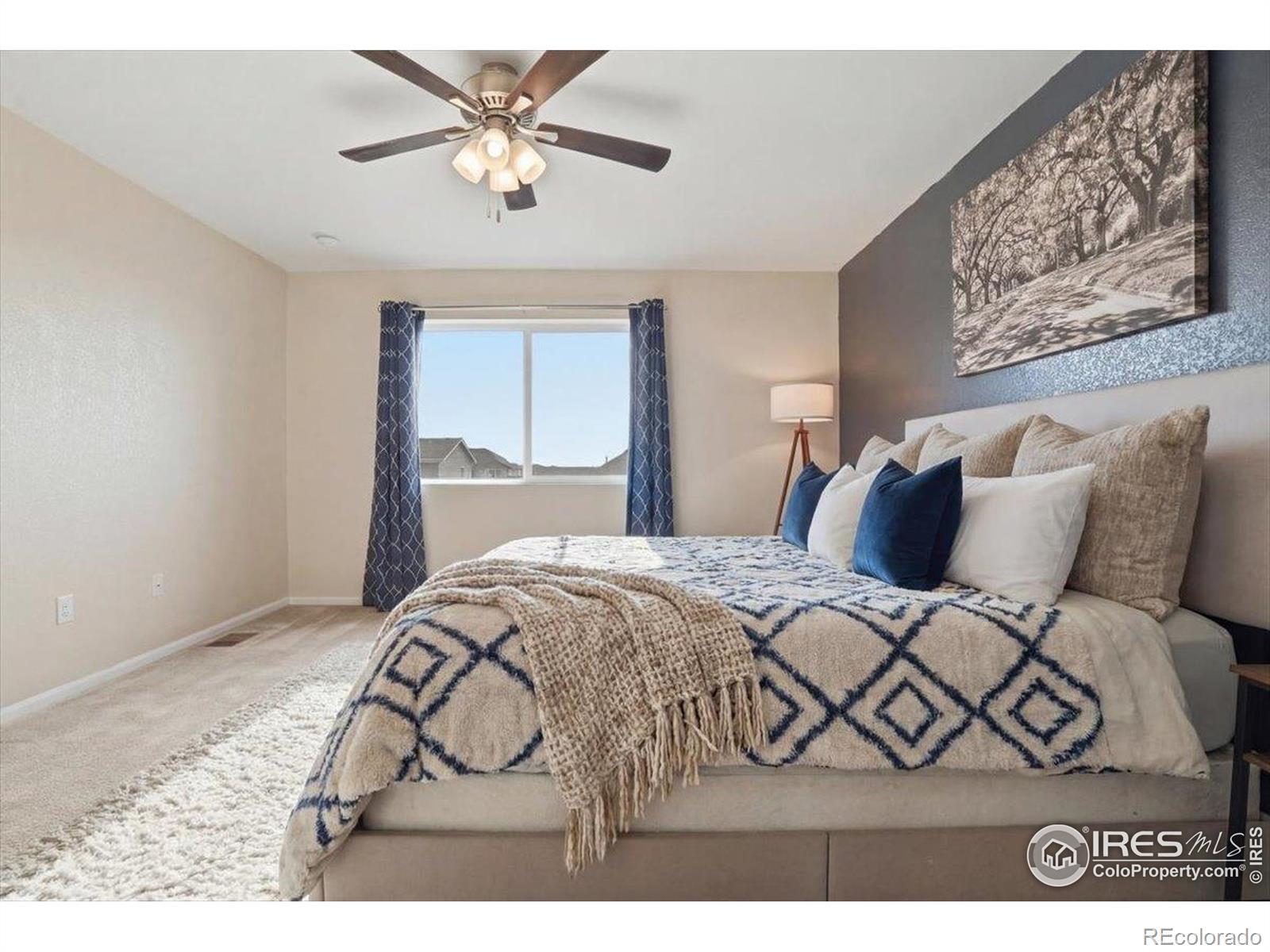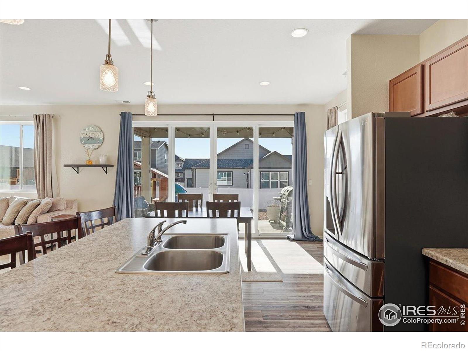 Take a look at this beautiful Windsor home in Harmony Ridge's 3rd filing. This gem is tucked away, in the back of the neighborhood, providing a quiet and peaceful location. The open floor plan is spacious and inviting, featuring a large living room and kitchen. An impressive kitchen island is great for added seating and counter space. Enjoy the natural light that fills the home through numerous windows. Beautiful and functional double patio doors, off the dining room, promote additional brightness. The main floor bedroom can be utilized as a guest suite or office. An added covered patio provides a great outdoor space that leads to a sizable xeriscaped backyard, including garden beds. This location is convenient for dining and shopping in downtown Windsor, Timnath, and Fort Collins. Schedule a showing today to see how this home can be the perfect fit for you.