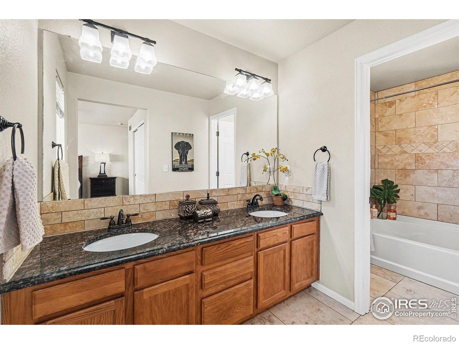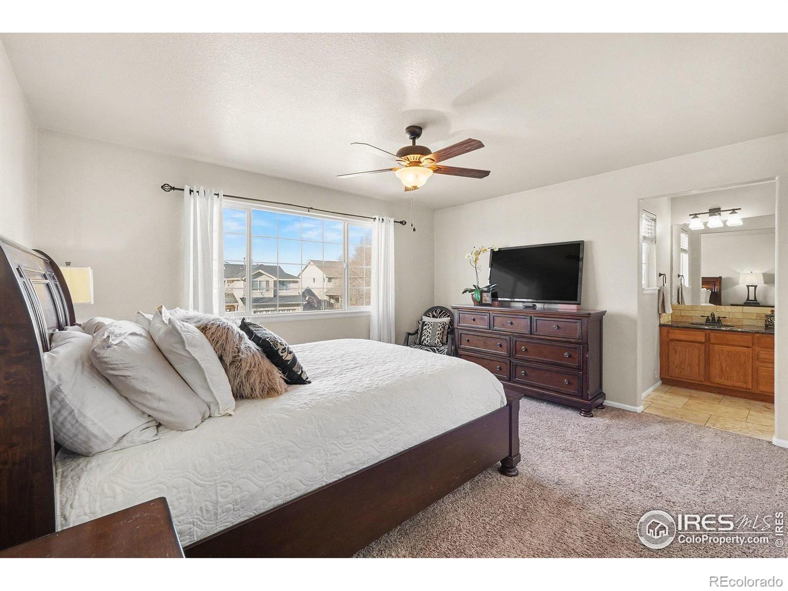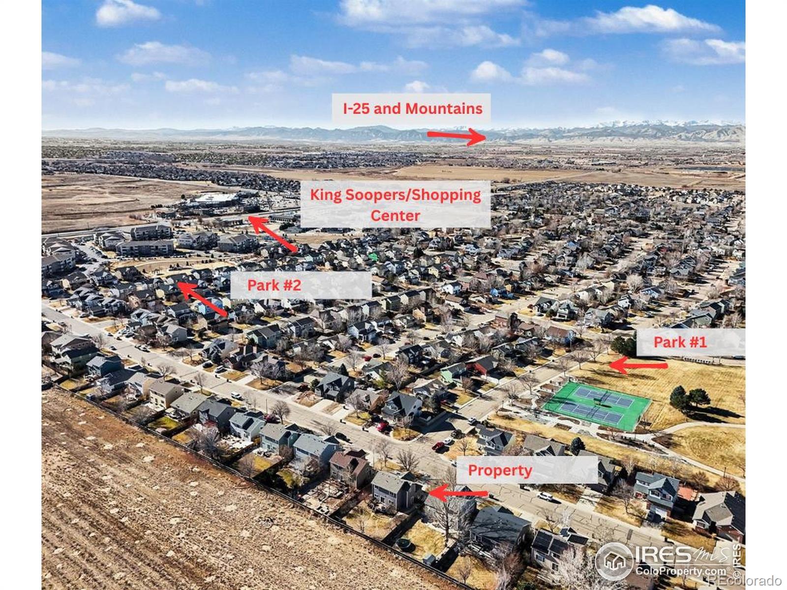 * BRAND NEW CARPET * Beautiful home with NO METRO DISTRICT and a ONE-YEAR HOME WARRANTY included. Step inside to an inviting two-story entry with expansive vaulted ceilings and an open, airy floor plan. The kitchen features granite countertops and new stainless-steel Samsung smart appliances, making it both stylish and functional. Upstairs, the spacious primary suite offers a peaceful retreat with a large west-facing window showcasing stunning mountain sunsets. The ensuite bath includes a double-sink granite vanity, a soaking tub, a private shower/toilet area, and a generous walk-in closet. Two additional bedrooms provide beautiful sunrise views overlooking open space, with one featuring a walk-in closet. A conveniently located laundry room and a full bathroom complete the upper level. The finished basement expands your living space with a large bedroom, a comfortable family room or recreation area, pocket room perfect for an office or craft room and ample storage space. Step outside to the professionally landscaped yard featuring mature flowering trees that provide privacy, a full drip and sprinkler system for easy maintenance, large newly redone deck while enjoying the quiet evening nights abutting private open land. This home is conveniently located steps away from direct access from one of the two neighborhood parks. The neighborhood offers unmatched amenities - including the only community featuring pickleball courts, in addition to basketball courts, soccer and baseball fields, volleyball, large playground, and a gazebo. Property exterior complete with 2 year old roof and gutters (comes with 10 year warranty), new paint, and upgraded exterior lighting. Just 7 minutes to I-25, with quick access to Denver, Boulder, and Fort Collins. Quickly growing, Firestone offers Super Target, Home Depot, Chick Fil A and much more in development.