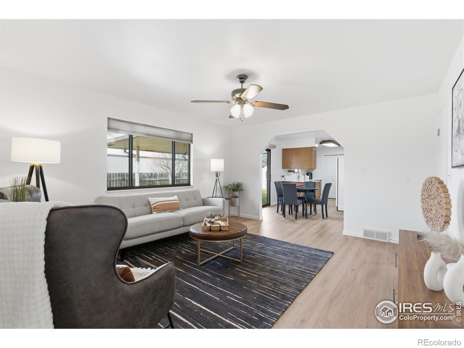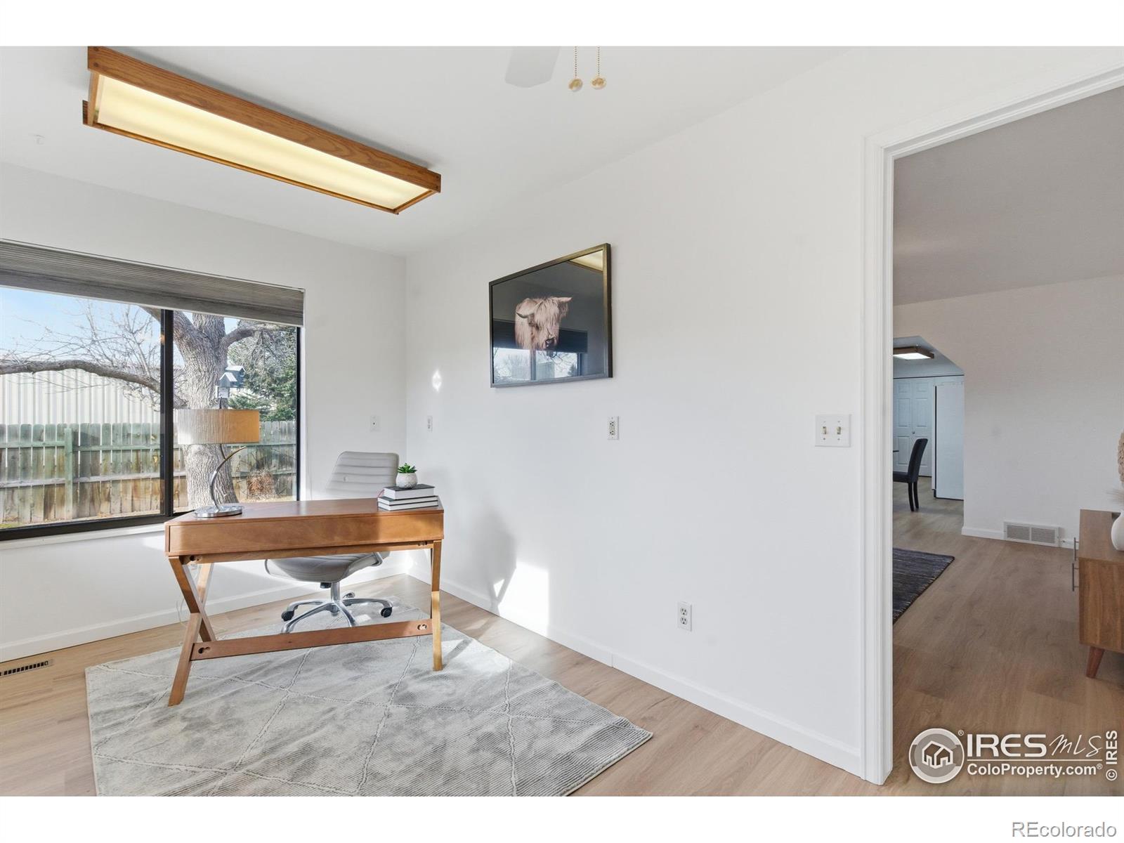 Welcome to your charming and versatile home nestled on a spacious .24-acre lot. This beautifully maintained property is in spectacular condition and offers 3 bedrooms and 3 bathrooms along with thoughtful updates and flexible living spaces. This home features fresh LVP flooring and updated paint throughout much of the home, creating a light and inviting feel. The kitchen shines with quartz countertops, a new sink, faucet, and disposal, while the updated primary bathroom adds a touch of modern comfort. A standout feature is the bonus room on the side of the home with its own exterior entrance. It is connected to the interior of the house but can be closed off with a door for added privacy, making it an excellent option for an in-home business, studio, office, or hobby space. Enjoy Colorado living on the covered back patio, overlooking the spacious yard and included storage shed. The oversized garage is a dream for hobbyists, offering brand-new garage doors, built-in shelving, and a dedicated workspace. Additional updates include many new light fixtures, giving the home a fresh, move-in-ready feel. All of this comes with no HOA, offering flexibility and freedom for how you use your property. With room to spread out inside and out, and so many recent upgrades, 617 Clifford Ct. is ready to welcome you home.