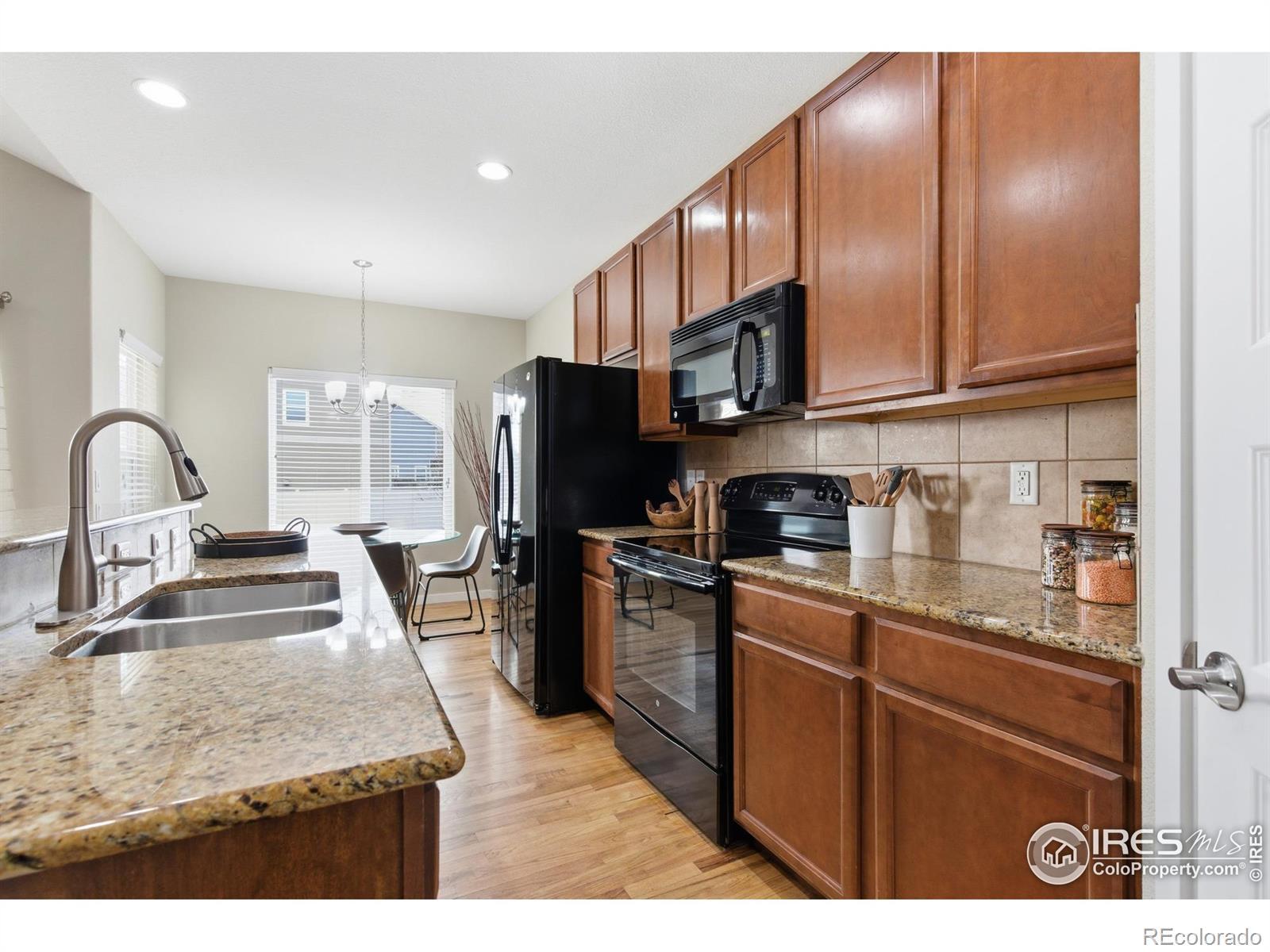 Welcome to 2884 Hydra Dr in Loveland, a well kept ranch home offering an open design and thoughtful upgrades throughout. From the moment you enter, the open floor plan draws you into the heart of the home, where the living room, dining area, and kitchen flow together seamlessly, finished in warm oak hardwood floors and highlighted by vaulted ceilings that fill the space with natural light. The kitchen is designed for both everyday living and entertaining, featuring hard stone countertops, tall cabinetry, and a walk in pantry. Just off the kitchen, the main floor laundry doubles as a convenient mud room with direct access from the garage. The main level offers a desirable layout with the primary suite separated for privacy. This spacious retreat features an oversized walk in closet and a true five piece bath with tile and hard stone, a glass shower surround, and a soaking tub. A second main level bedroom is generously sized and located near a full bathroom. Downstairs, the fully finished basement expands the living space with an oversized family room ideal for movie nights, game days, or gatherings, along with two additional bedrooms and a full bathroom. Dedicated storage areas add even more functionality. Outside, enjoy the Colorado lifestyle in the fully fenced backyard while relaxing on the patio and taking in clear views of Longs Peak and Mount Meeker. The home backs to a paved walking and biking path. Major upgrades provide peace of mind, including a new furnace and air conditioning installed in summer 2025, an owned water filtration system, updated sprinkler backflow preventer, and an active radon mitigation system. The home was professionally painted inside and out in 2024, and carpets and padding were replaced in December 2025 by JT's Flooring. The fully finished three car garage offers ample space for trucks, gear, and storage. Ideally located near shopping, dining, and major medical facilities, with quick access to I 25 just five to six minutes away.
