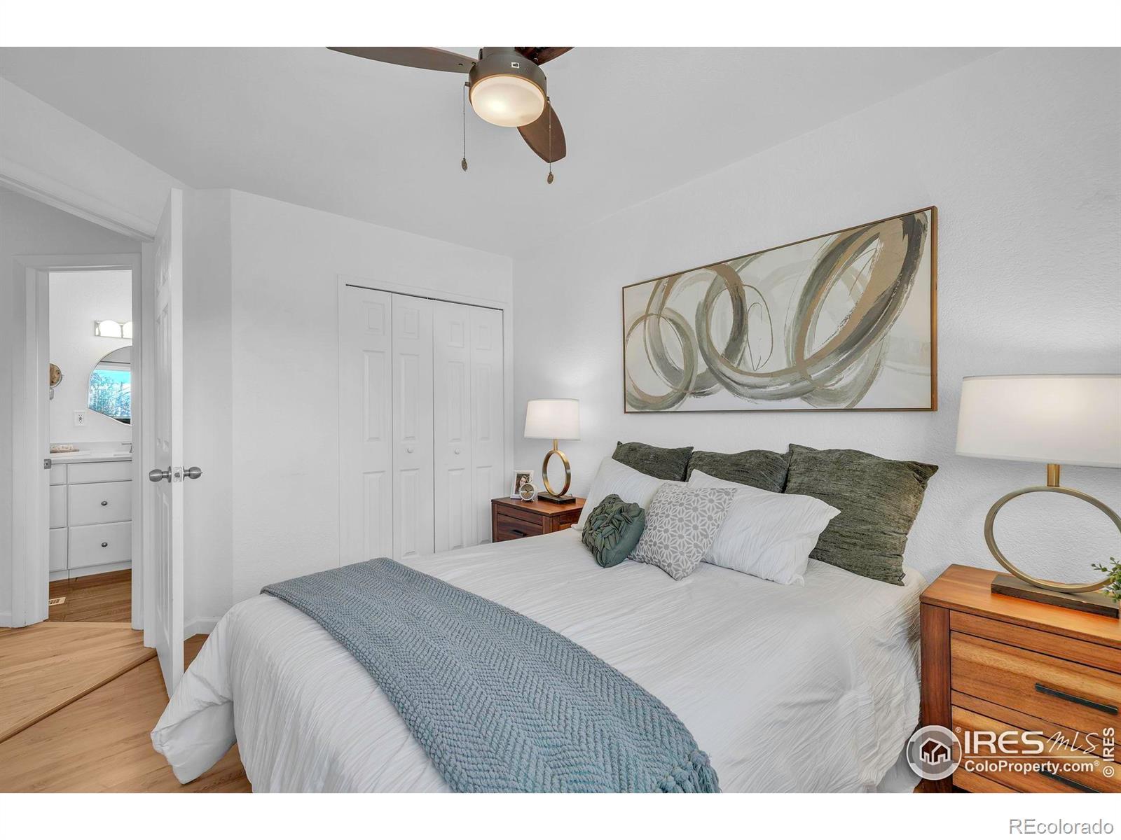Move in ready two story 3 BR 2BTH west facing light filled townhome located within walking distance of 29th St (Anne's a la Mode & Pie Cafe, West 29th Rest & Bar, Wolf & Wildflower). This townhome's main level has an open floor plan with a seamless walk out to the patio from the living room. Enjoy the sunset and views of the mountains from the patio and upstairs bedroom windows. Kitchen has nice finishes and both bathrooms have been updated. There are hardwood floors throughout the main floor. Efficient separation of space with 2 bedrooms and a full bathroom upstairs and a finished basement with an updated 3/4 bathroom that makes for a spacious private primary suite or area can be used as a flex space.There are 2 assigned parking spaces along with street parking. Walk to the Richard Hart Estate park. Bike or Walk to Sloans Lake, Edgewater marketplace and to nearby restaurants and shops. Easy access to I70. See note in Additional Documents from sellers about what they enjoyed about living there.
