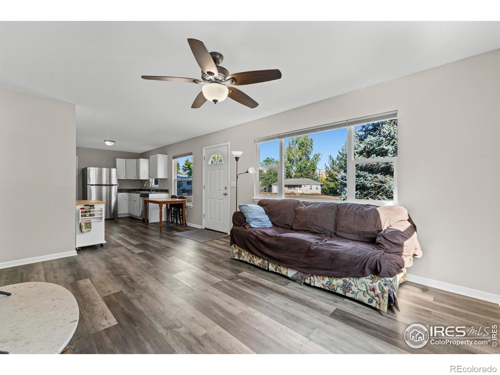 Just minutes from UNC, downtown Greeley, and Hwy 34, this bright and efficient home pairs comfort with Colorado charm-and an assumable FHA loan at just 4.375% makes it even more attractive. Completely rebuilt in 2022, meaning all appliances and major systems are only 3 years old! Native xeriscaping adds year-round beauty with low maintenance, while solar panels and new energy-efficient windows keep utility costs low. Inside, durable LVP flooring connects open living spaces, a stylish kitchen with stainless appliances, and a movable island ready for meal prep or mingling. The fenced backyard features raised garden beds, a covered patio for sunny-day lounging, and a thriving blackberry bush. With high-speed fiber internet, a Honeywell thermostat, and a spacious primary retreat, this home is as practical as it is inviting.