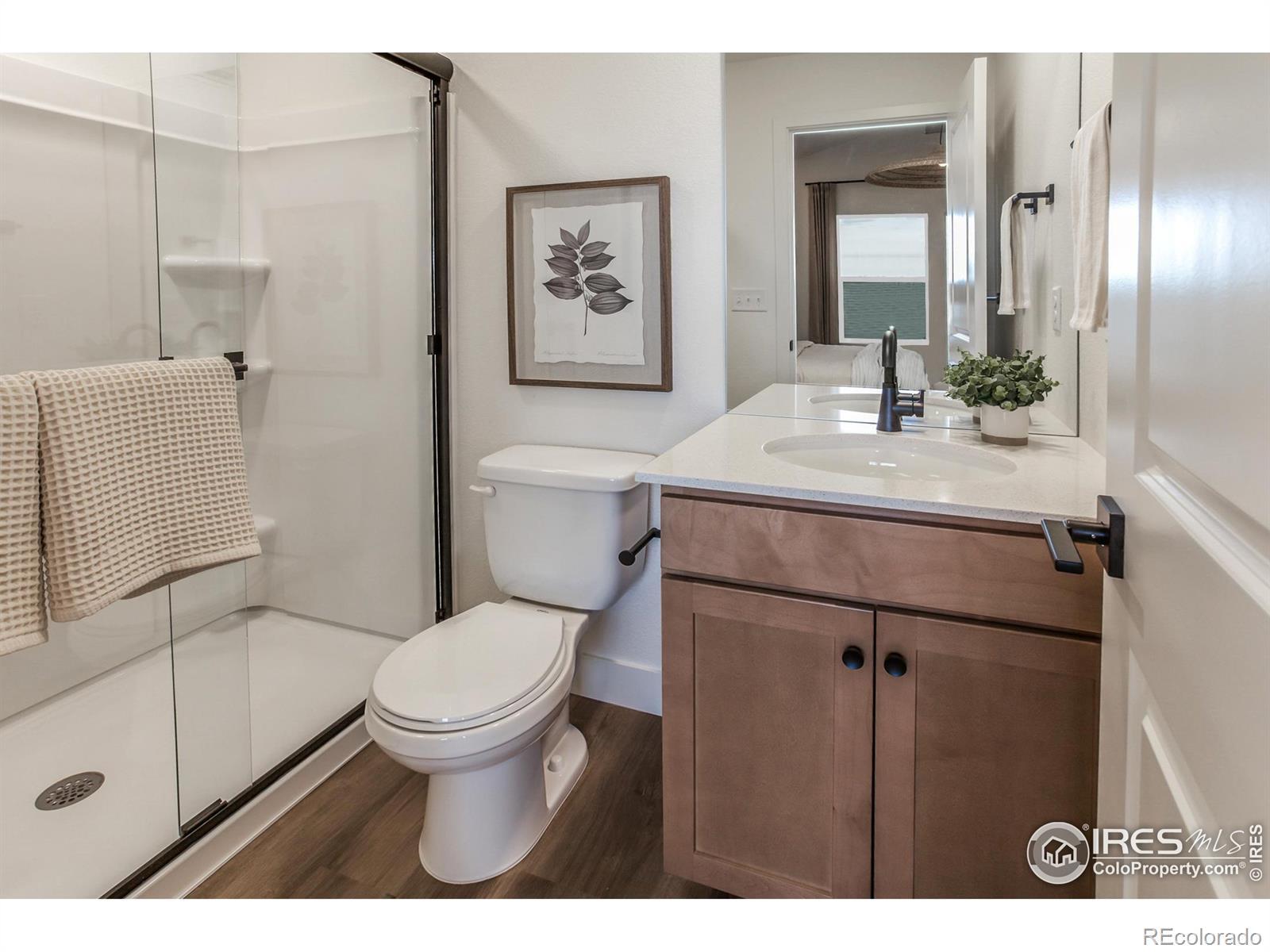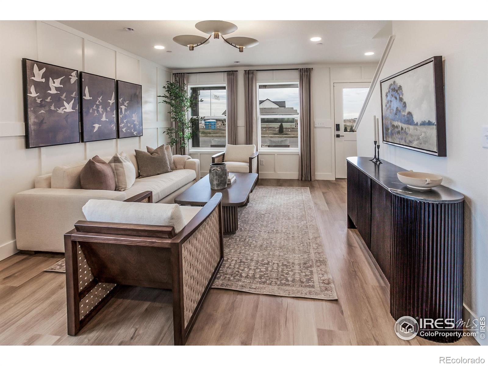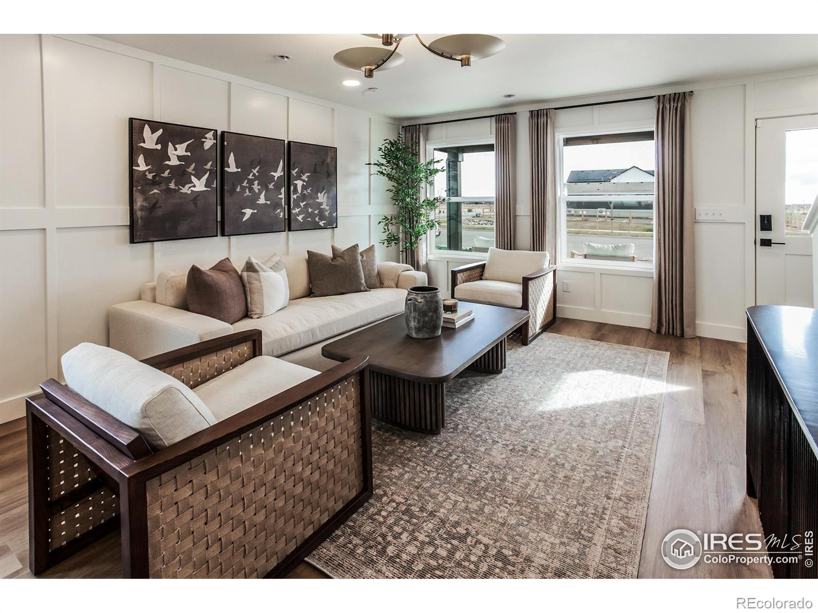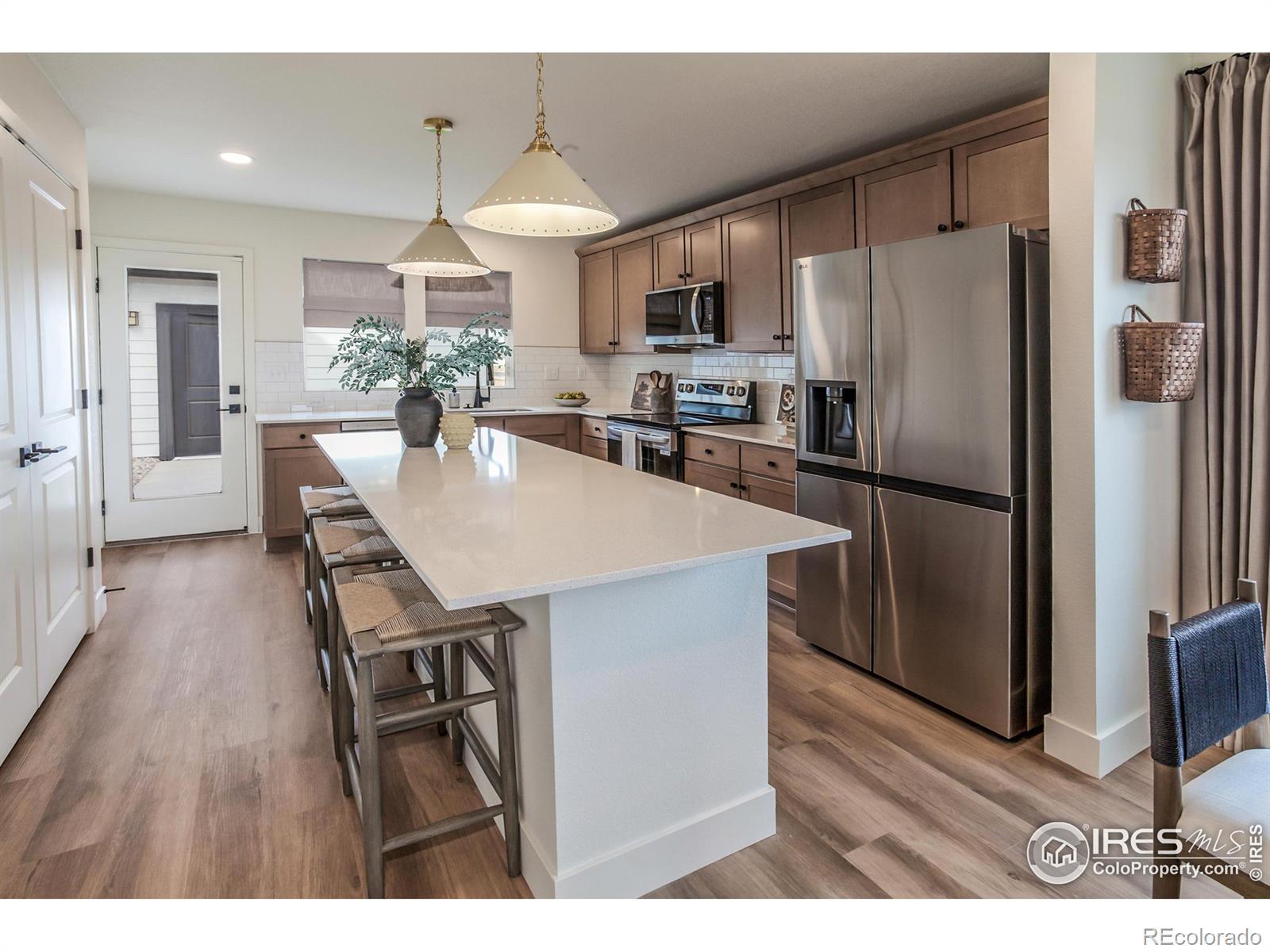 Model home for sale as a lease-back to the builder while needed. Ask about lease terms. Farmhouse elevation Magnolia plan by Hartford Homes in Prairie Song in Windsor. New construction cottage home. Open floor plan, two story. Kitchen w/ island. Powder bath on main level. Biscotti stained maple cabinetry. Blanco maple quartz countertops. Vinyl plank flooring throughout main level and carpet in bedrooms. S.s. dishwasher, fridge, microwave, range. Second level has 2 bedrooms and laundry w/ Washer & dryer included. Central a/c. 2 car garage. Garage door opener and keypad. Passive radon system. Fenced yard w/ landscaping included (artificial turf in backyard). Future community plans for a pool, parks and trails. There is a $200 annual non-potable water fee to be paid to metro district. $125 monthly o & m fee for metro district. model home lease back