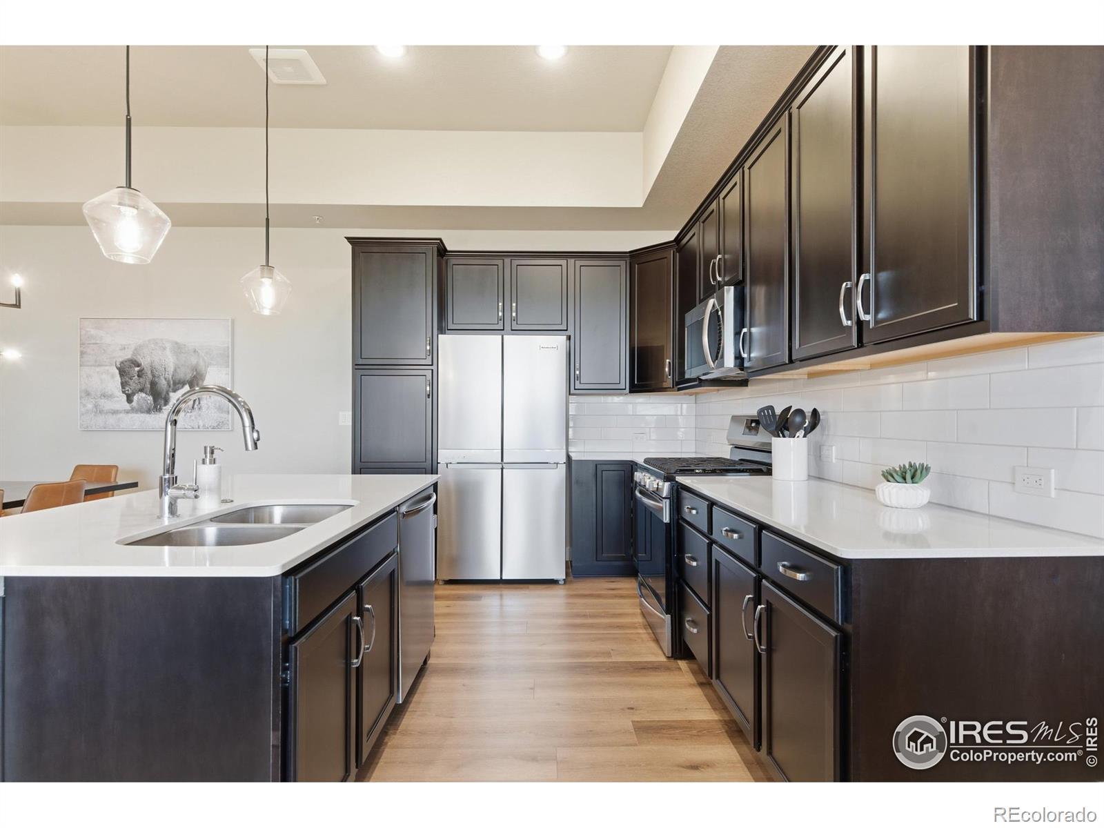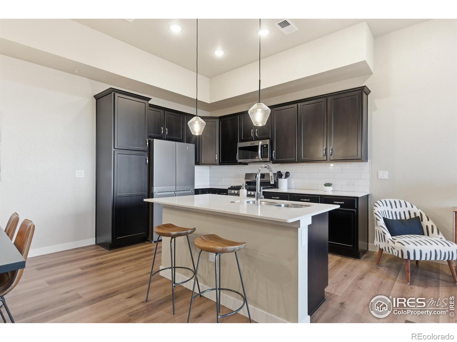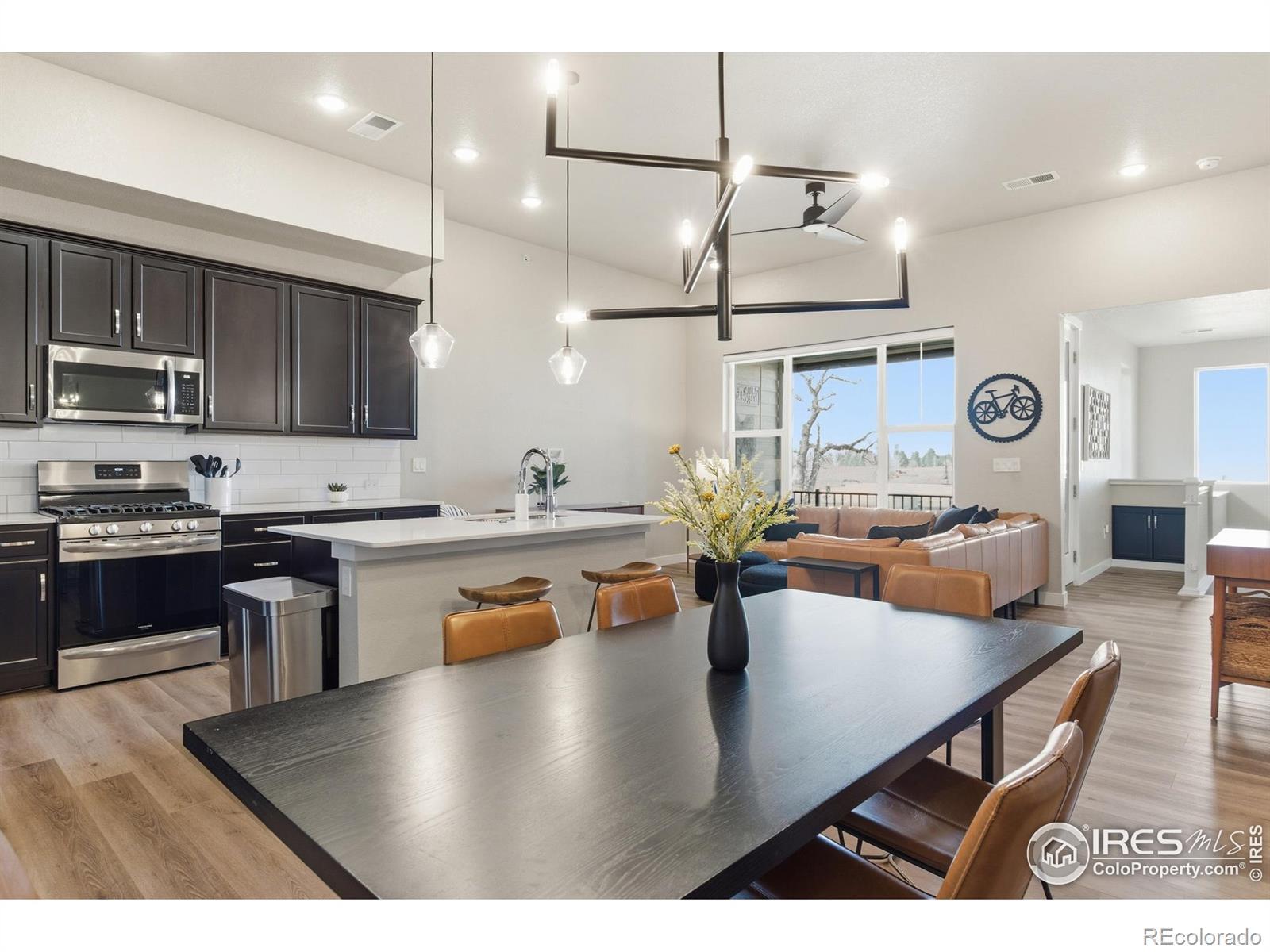 FULLY FURNISHED LUXURY TOWNHOME! Welcome to this stylish townhome-style condo with mountain views located just a 15-minute walk from historic Old Town Fort Collins, a 10-minute walk to New Belgium and O'Dell's breweries and the Poudre River Trail. This 3 bedroom, 2 bath home was built in 2022 by Landmark Homes but features many tasteful upgrades including a gas range, brand new high end LVP flooring, automatic blinds and patio shade and designer window coverings. The garage has been fully finished and painted and the floor sealed with epoxy. The value of the mountain view lot and all the upgrades is over $50k! In addition, included in the purchase price are high end furnishings from Crate and Barrel, Pottery Barn and West Elm, a $38K value. As you enter through a private courtyard, step inside to find an open concept living area perfect for entertaining, a modern kitchen with large island with quartz countertop, high-end finishes & a cozy dining space. Three ample bedrooms and two well finished bathrooms complete the package! This home is LEED Certified for eco- friendly living and has a high efficiency furnace, central air conditioning, tankless hot water heater, interior fire sprinklers and solar panels provide energy efficient savings the owners can enjoy. The Metro District is planning for a future gym, pool and clubhouse.