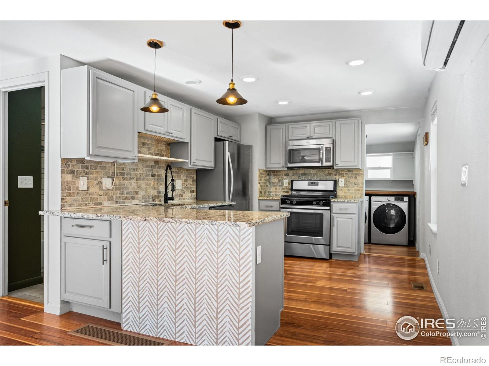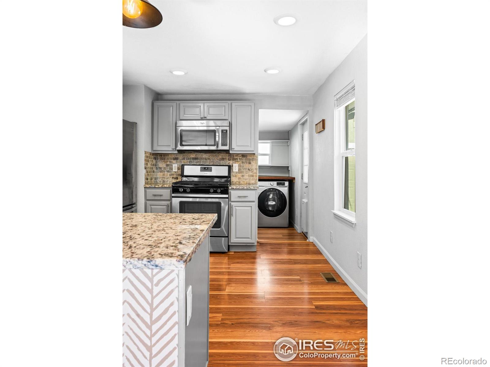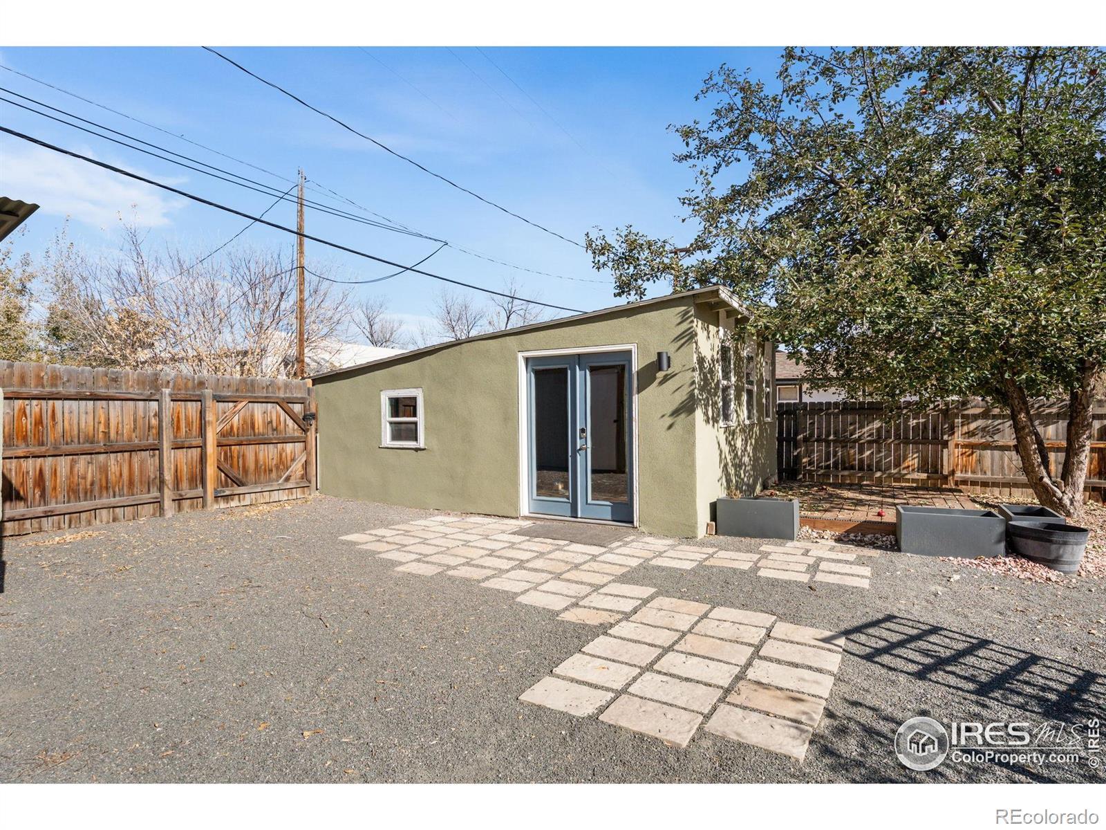 Charming Bungalow in Historic Downtown Loveland. Just minutes from downtown, this beautifully remodeled bungalow perfectly blends vintage character with modern comfort. Inside, an inviting open floor plan features three bedrooms, newer stainless-steel appliances, washer and dryer, hot water heater, updated cabinetry, and granite countertops that combine style and function. Custom finishes, accent walls, and upgraded fixtures make this home truly one of a kind. The outdoor spaces are just as impressive, with multiple outbuildings including a temperature-controlled building for flex space - ideal for guests, a home office, or a recreation room. The property has been completely refreshed with new landscaping and a sprinkler system designed for easy Colorado living and outdoor enjoyment. Relax in the sunroom off the oversized one-car garage, garden in the spacious backyard with alley access, or tinker in the workshop and garden shed - there's a space for every passion. A newly installed solar-powered electric gate provides secure driveway and garage access, enhancing privacy and adding an executive feel to this backyard sanctuary. The garage also features an upgraded electrical system, perfect for hobbies or toys. Mature apple trees and colorful flower beds add to the charm of this generous lot, offering the perfect blend of downtown convenience and relaxed neighborhood living. This home is a must-see!