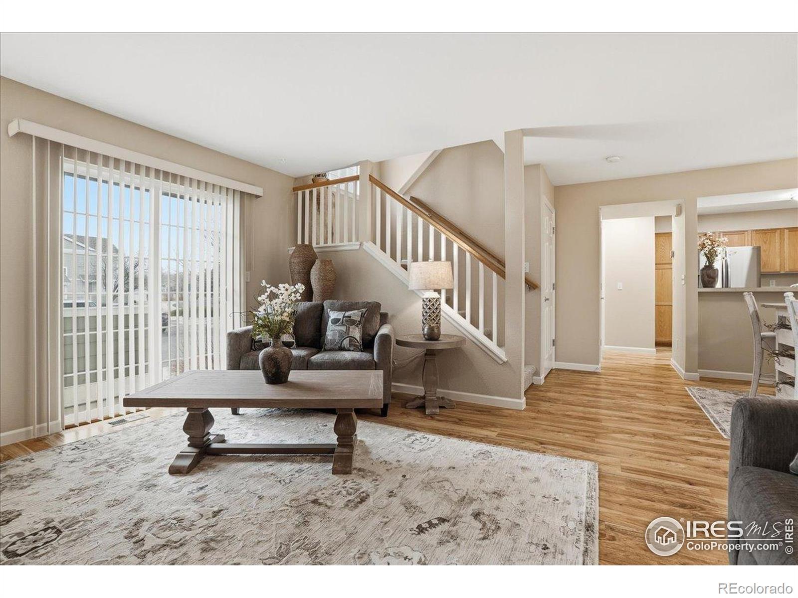 Check out this super clean, well-maintained 3 bedroom, three bath townhome tucked into a quiet West Loveland community. This inviting home offers three spacious bedrooms upstairs and three bathrooms, providing a comfortable layout with room to grow. The main level features durable laminate wood flooring and a large living room with a cozy gas log fireplace-perfect for relaxing evenings. Recent updates include brand-new StainMaster carpet with pad and fresh interior paint completed by professionals, giving the home a crisp, move-in-ready feel. Downstairs, the full unfinished basement presents excellent potential for future expansion-create additional living space, a home office, or a workout room to suit your needs. Enjoy outdoor living on the private patio, and appreciate the convenience of a 1-car attached garage plus ample guest parking. All kitchen appliances are included, and as an added bonus, water and sewer are covered by the HOA, helping keep monthly expenses predictable. Ideally located near shopping, dining, trails, and everyday conveniences, this well-cared-for home offers comfort, value, and opportunity in a desirable Loveland setting.