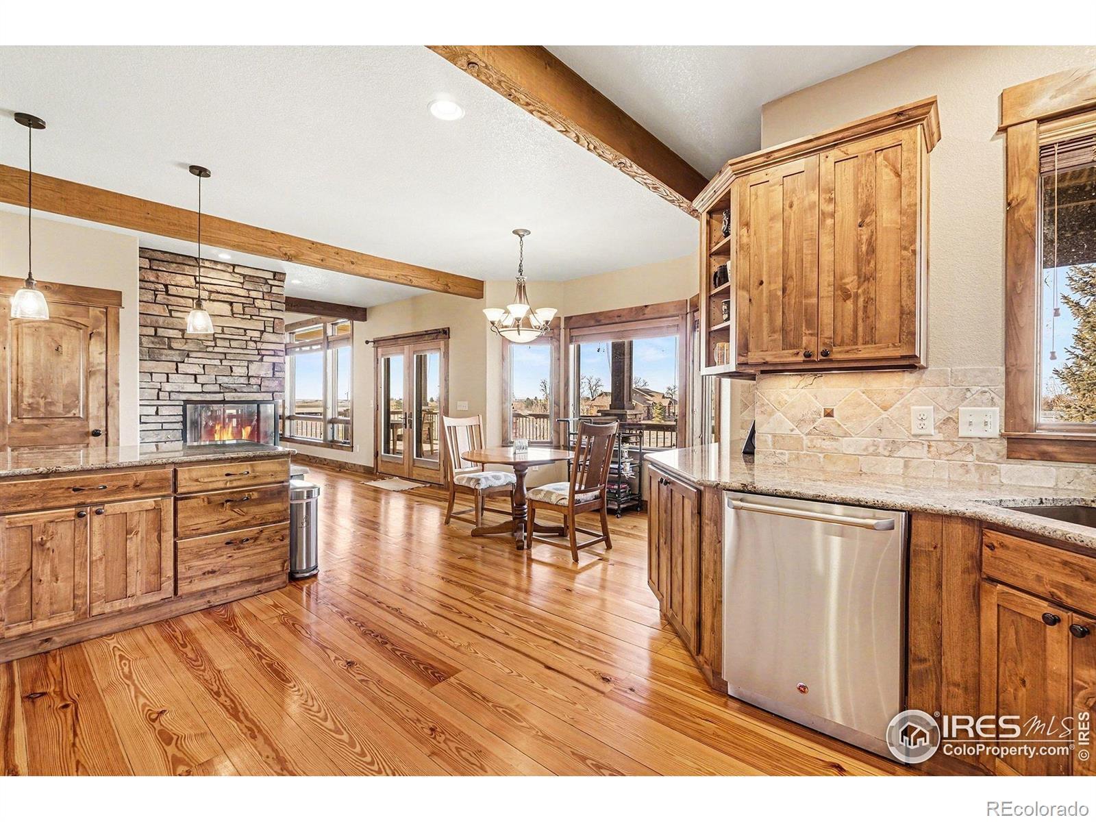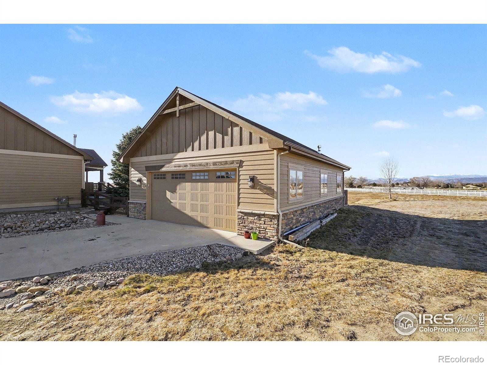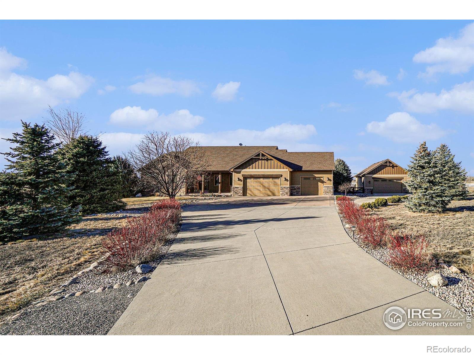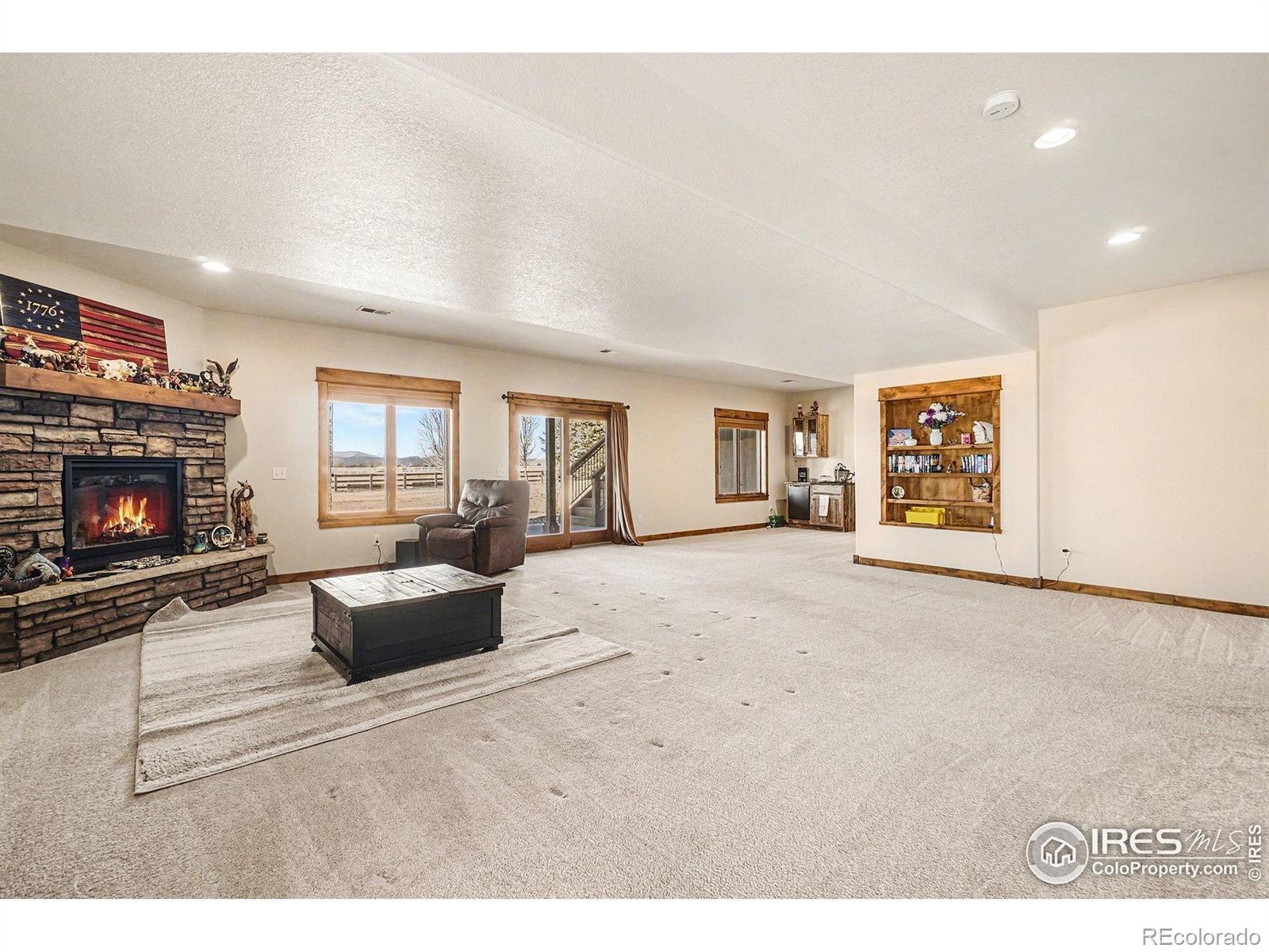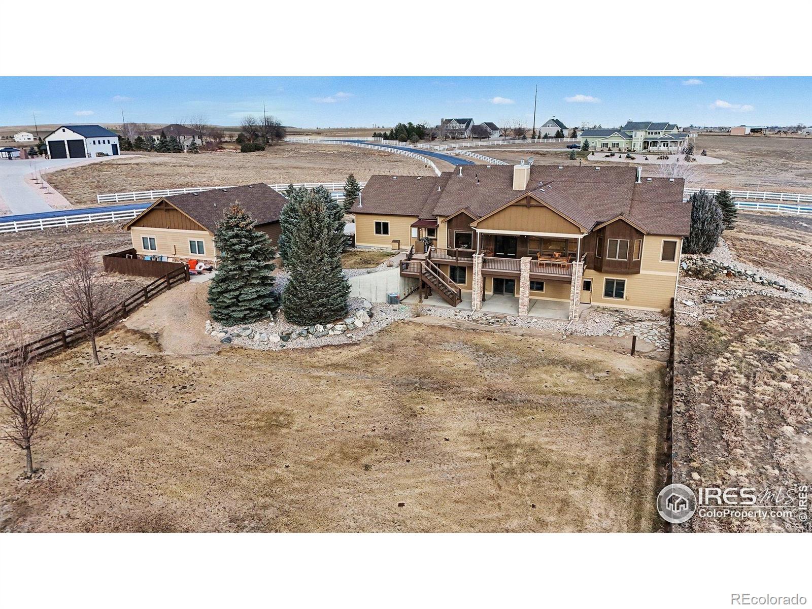 Set on an elevated lot in the gated Belmont Farms community, this custom ranch-style home with a walkout basement offers sweeping mountain views, privacy, and room to breathe-just minutes from I-25 with no metro district.Designed to capture the surrounding scenery, the great room features floor-to-ceiling windows, hardwood floors, and a dramatic three-sided fireplace that anchors the main living space. The kitchen opens seamlessly to the living area and includes granite countertops, stainless appliances, generous cabinetry, and a pantry-ideal for both everyday living and entertaining.The primary suite is a true retreat with a private sitting area, fireplace, spa-style bath, and oversized walk-in shower, all oriented to take in the expansive views. A second main-floor bedroom provides flexibility for guests or a home office, along with convenient main-floor laundry.The finished walkout basement expands the living space with a large recreation and entertainment area, wet bar, fireplace, two additional bedrooms, a full bath, and abundant storage-perfect for hosting, hobbies, or multi-generational living.Outside, the property continues to impress with mature landscaping, a covered deck, and a walkout patio ideal for enjoying Colorado sunsets. In addition to the attached heated three-car garage, the detached heated shop offers exceptional versatility with high doors, storage, and its own bathroom-well suited for vehicles, equipment, or workshop use.A rare combination of acreage, views, and thoughtful design in a quiet, gated setting-this is Colorado living at its best.