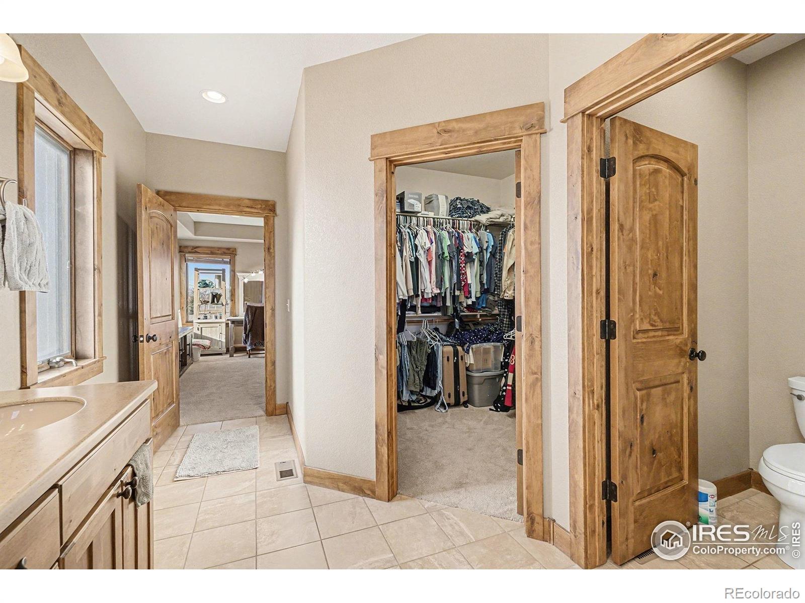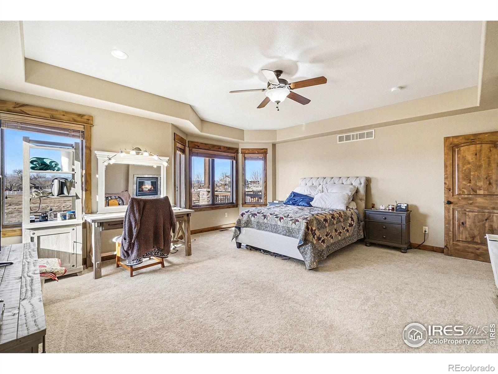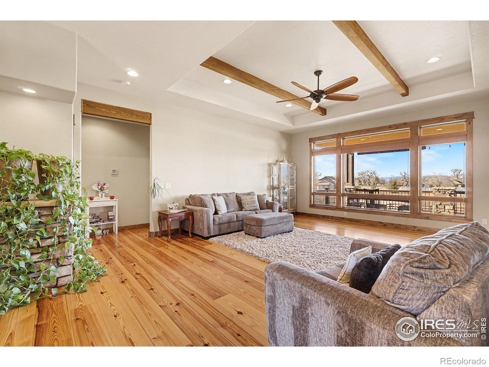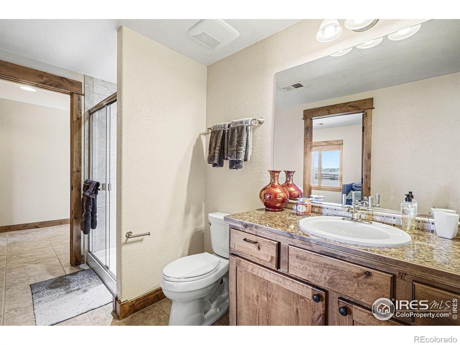 Set on an elevated lot in the gated Belmont Farms community, this custom ranch-style home with a walkout basement offers sweeping mountain views, privacy, and room to breathe-just minutes from I-25 with no metro district.Designed to capture the surrounding scenery, the great room features floor-to-ceiling windows, hardwood floors, and a dramatic three-sided fireplace that anchors the main living space. The kitchen opens seamlessly to the living area and includes granite countertops, stainless appliances, generous cabinetry, and a pantry-ideal for both everyday living and entertaining.The primary suite is a true retreat with a private sitting area, fireplace, spa-style bath, and oversized walk-in shower, all oriented to take in the expansive views. A second main-floor bedroom provides flexibility for guests or a home office, along with convenient main-floor laundry.The finished walkout basement expands the living space with a large recreation and entertainment area, wet bar, fireplace, two additional bedrooms, a full bath, and abundant storage-perfect for hosting, hobbies, or multi-generational living.Outside, the property continues to impress with mature landscaping, a covered deck, and a walkout patio ideal for enjoying Colorado sunsets. In addition to the attached heated three-car garage, the detached heated shop offers exceptional versatility with high doors, storage, and its own bathroom-well suited for vehicles, equipment, or workshop use.A rare combination of acreage, views, and thoughtful design in a quiet, gated setting-this is Colorado living at its best.