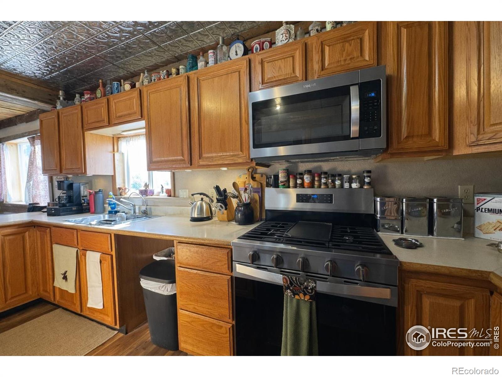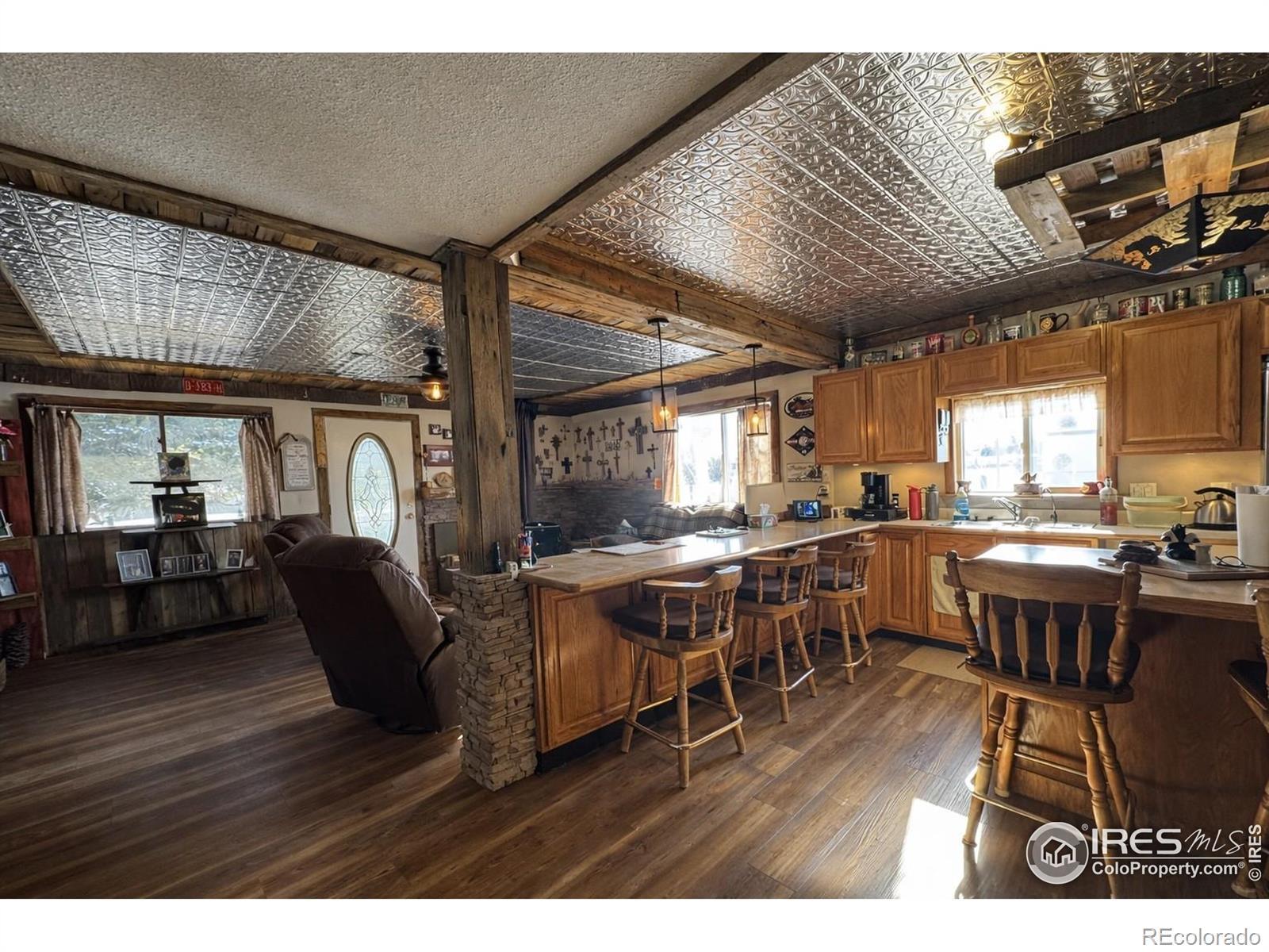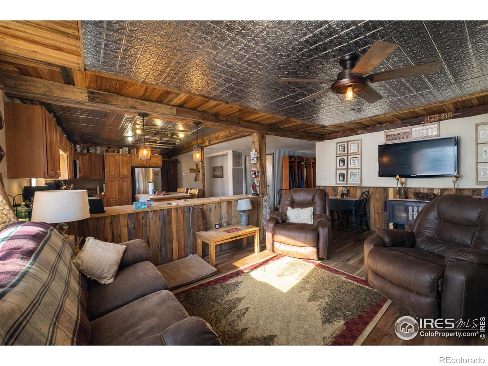 Welcome to 170 Logan St! This 3-bedroom, 1.75-bath home offers space, functionality, and rustic charm, featuring a new metal roof (2025) and beautiful new flooring throughout much of the home. The open living areas showcase exposed beams, rich wood accents, distinctive ceiling details, and abundant natural light. Cozy gathering spaces are enhanced by multiple wood stoves, creating a warm and inviting atmosphere. The kitchen features new appliances, generous counter and cupboard space along with a large island, ideal for everyday living and entertaining. The detached 24' x 32' insulated multi-bay shop/garage provides excellent storage, workspace, or hobby potential, while the second story offers exciting possibilities for bonus living space, a game room, or studio apartment. Outside, enjoy the private patio surrounded by well-maintained landscaping, mature trees, and a charming pond with waterfall-perfect for relaxing or entertaining.