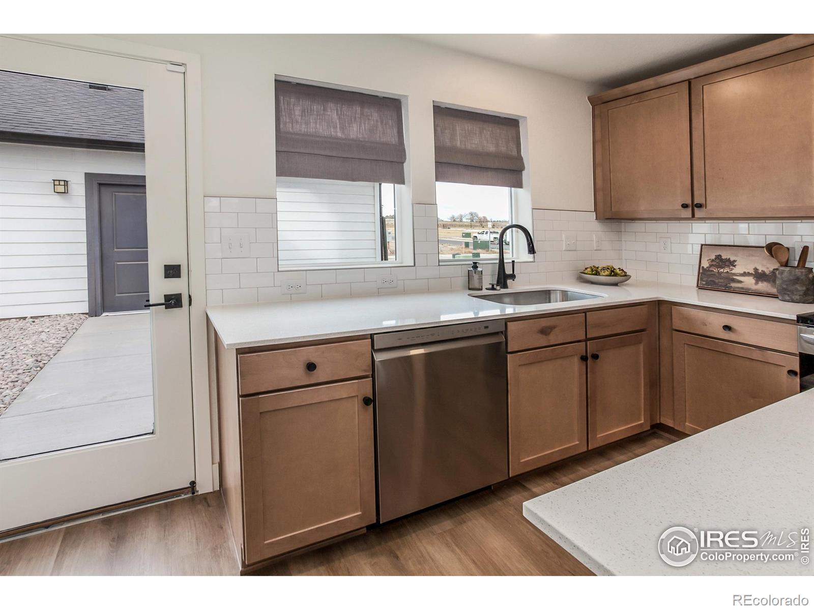 Welcome to Hartford Homes' Cottage Collection and the Magnolia plan! This home is designed for low-maintenance living without sacrificing style or comfort. With 2 bedrooms, 2.5 bathrooms and a bright interior, the home features finishes that are both warm and modern. Some highlights include Maple cabinetry in Biscotti with matte black hardware, Desert Silver quartz countertops throughout the home, and upgraded luxury vinyl plank flooring complemented by plush carpet in the bedrooms. The kitchen is finished with a full-height white subway tile backsplash and a sleek black Moen pull-down faucet, while the owner's suite offers a beautifully tiled walk-in shower with a glass door. Enjoy a private backyard and fully landscaped outdoor space complete with privacy fencing and low-maintenance artificial turf. Inside, the home comes move-in ready with a complete stainless steel appliance package, including an electric range, dishwasher, microwave, refrigerator, washer, and dryer.Additional highlights include a two-car garage and a layout designed to support an easy, lock-and-leave lifestyle-making this home an exceptional opportunity in one of Windsor's most inviting new communities. Minutes from downtown Windsor and Windsor Lake, this thoughtfully planned neighborhood has so much to offer including Future plans for a pool, parks and trails! Photos are of previously built home.