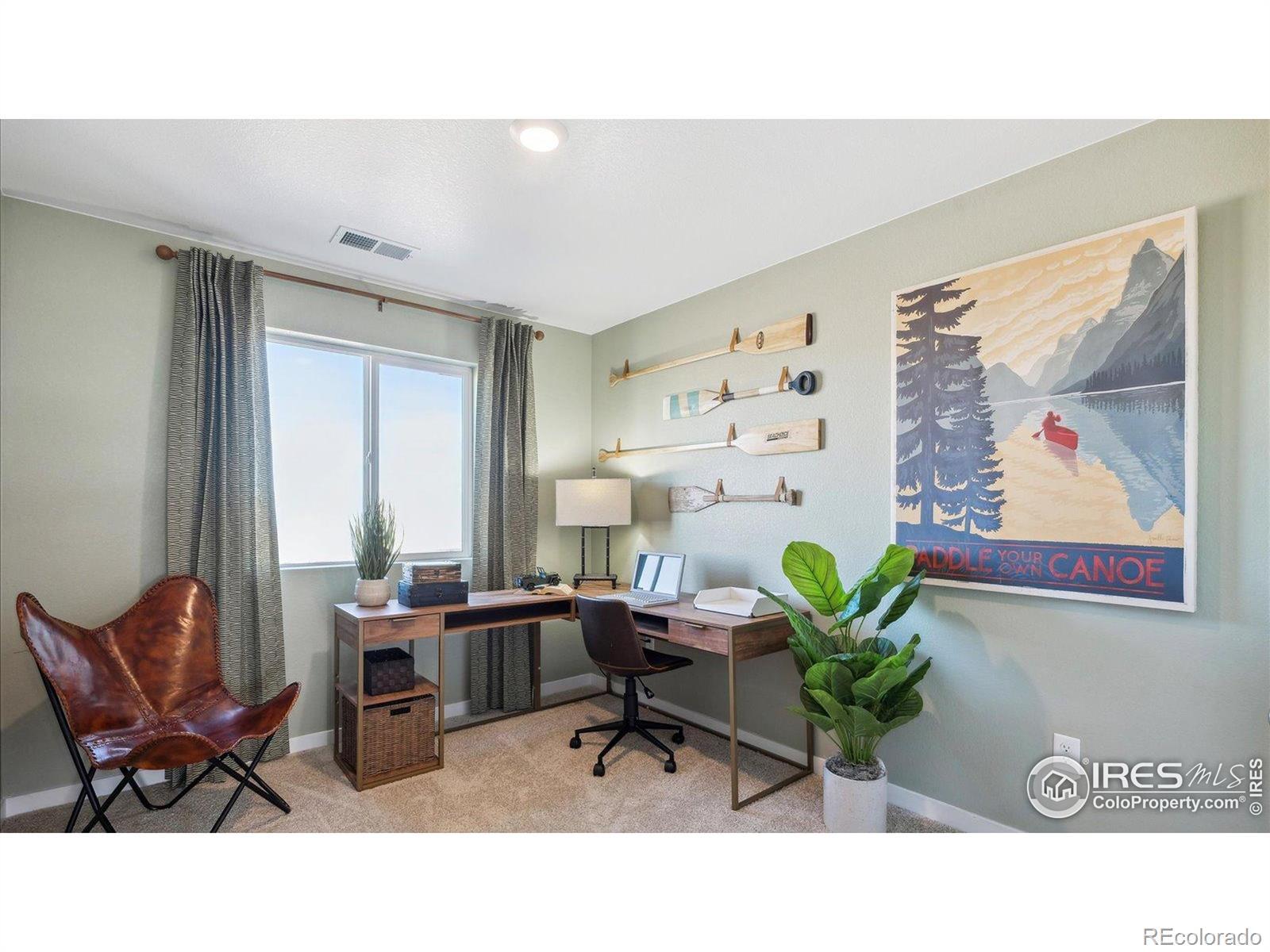 This home features 3 beds, a loft, 2.5 baths, and a 2 car garage. This home also fronts onto a large grassed common courtyard with maintenance-free front yard landscaping, tankless water heater, active Radon system, blinds, and Smart Home technology with remote capabilities in a location backdropped by water and mountain views. Also includes incredible amenities such as TPC Colorado privileges including use of their world-class Fitness Center, Resort Style Pool with swim-up bar and hot tub, and restaurants. Use of Vantage Pool, Splashpad, Grilling Area, Playground and 2 Dog Parks in the 5-acre, on-site complex are also included in the HOA. ***Photos are representative and not of actual property***