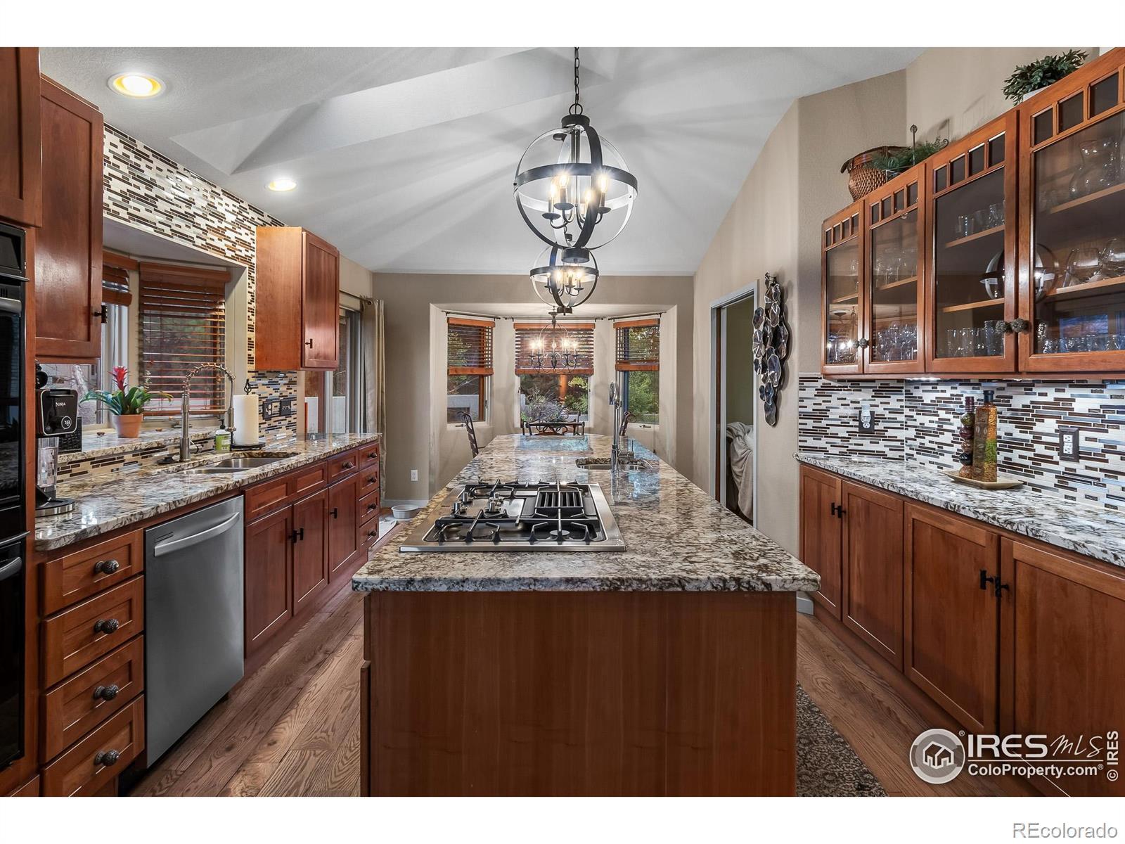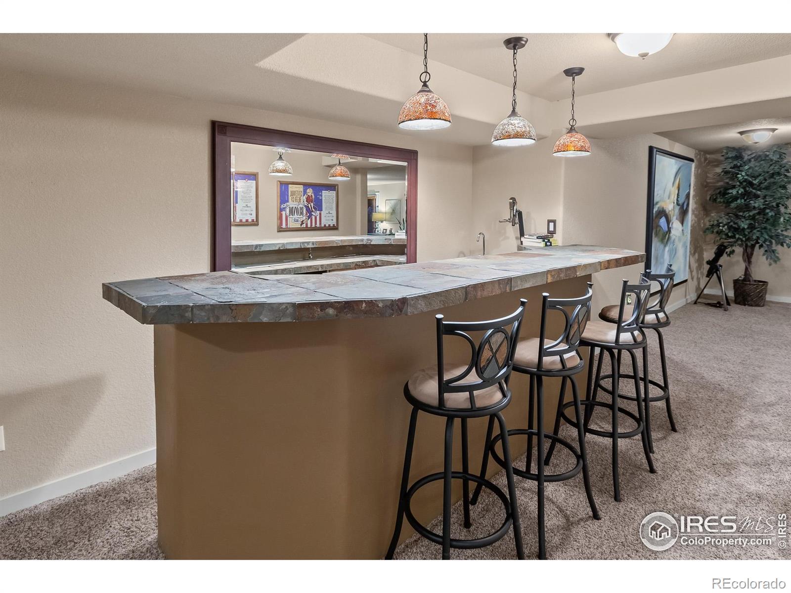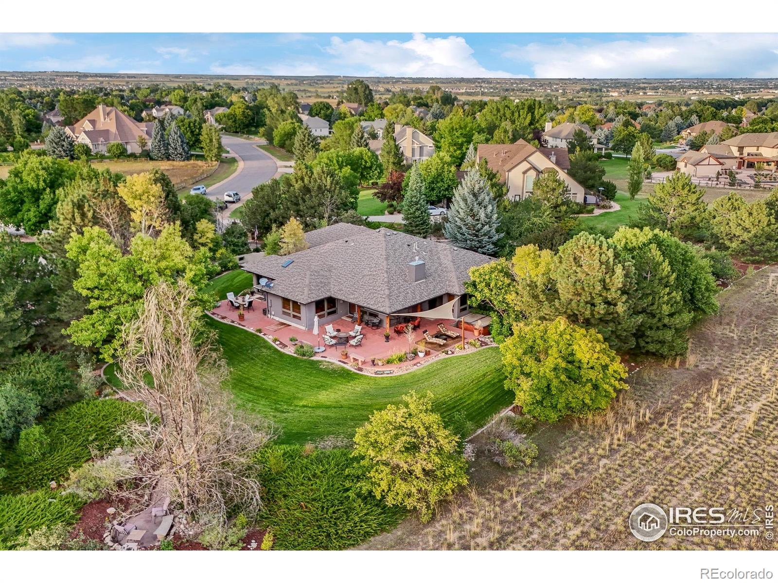Tucked away on an expansive, and private lot in the desirable Highland Hills Neighborhood, this sprawling walkout ranch is your outdoor living dream home. Nestled on nearly a full acre and featuring 7 different outdoor living areas, this home offers unparalleled tranquility and privacy with its meticulously manicured and mature landscaping. Your private drive awaits pulling into the end of the quiet culdesac. As you follow one of the properties 2 waterfalls up the entry way, through the beautiful and lush landscaping, you are greeted with expansive views from the driveway and backyard. Inside, the entryway leads you to the spacious and open living area featuring a gas fireplace, wet bar, and south and west facing windows that offer abundant natural light, overlooking your outdoor oasis. The kitchen features double ovens, an island prep sink, hardwood floors and an eat-in kitchen area. Main floor living at its finest with your spacious owners retreat, featuring a massive en-suite bath with separate soaking tub and shower and direct access to the primary south and east facing patio. The fully finished basement is the ultimate entertainment getaway, complete with a bar area, movie theatre, and additional living/ billiards room. Grab a drink at the bar, and step out from the walk-out basement to, yet another, lower level outdoor entertaining area featuring the homes second water fall and koi pond. Additionally the home offers and incredibly spacious 3-car garage, plus a massive driveway, primed for all of your vehicles, toys and hobbies. If you've been looking for private, quiet and luxurious living in Fort Collins at an unbeatable value and location, your home search ends at the end of this culdesac, Welcome home to 8264 Scenic Ridge.