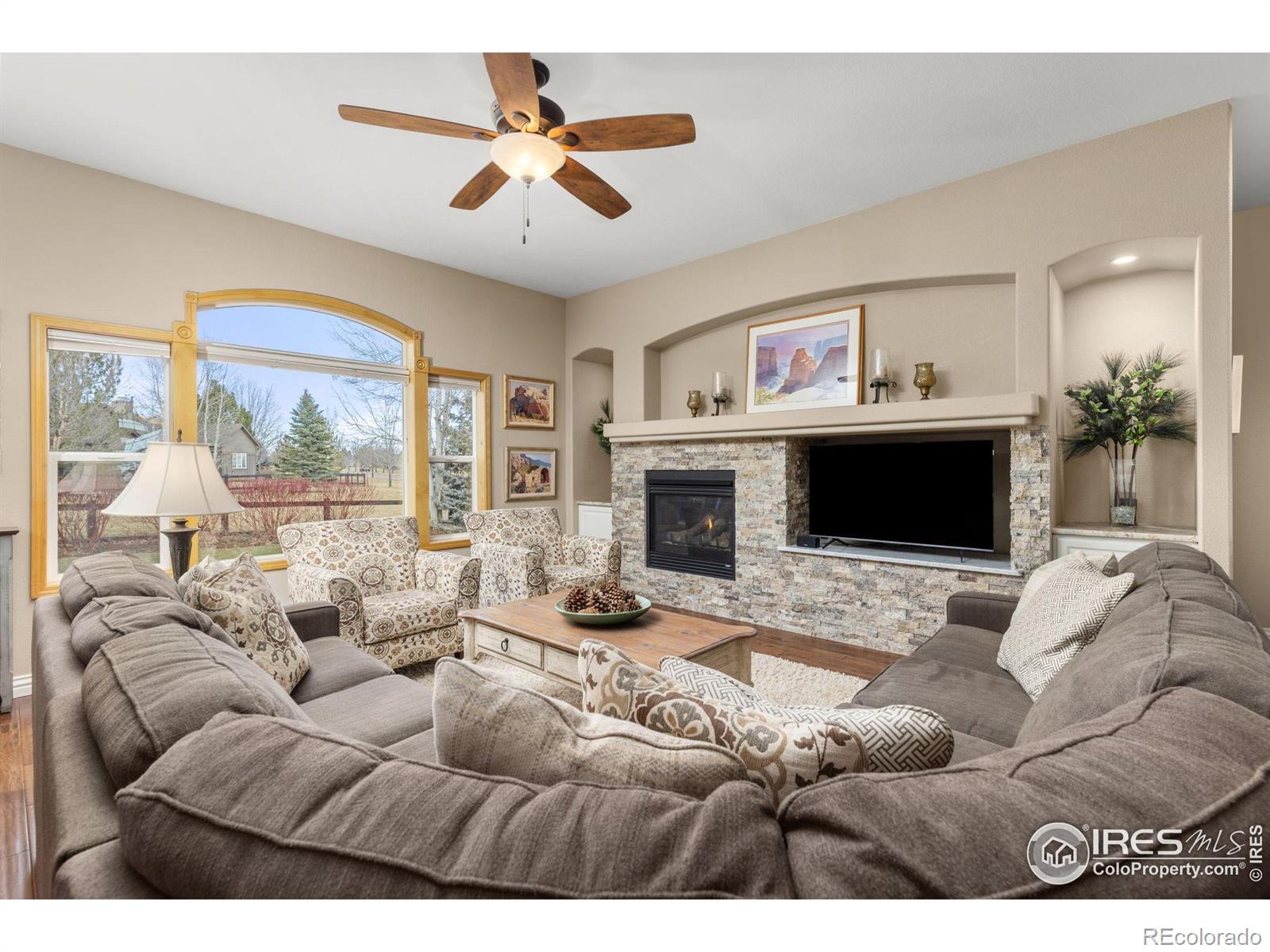 Beautifully maintained home in a prime golf course location, offering exceptional privacy with open space across the street, to the side, and behind the property. Enjoy outdoor living on the spacious patio featuring a natural gas line ready for a fire pit, plus a dedicated pad and electrical prep for a future hot tub. Inside, the main level showcases updated wood flooring and a thoughtfully remodeled kitchen (2018) with granite countertops, new appliances, and more. The home has been meticulously cared for with major updates including a new roof and exterior paint in 2018, and a new furnace and air conditioning system in 2020. Additional features include a spacious three-car garage, bonus storage area in the basement, custom blinds, ceiling fans, surround sound, and a newer water heater. The fully fenced yard. Plus tons of green space that you can enjoy (without the maintenance). South-facing. Located in a neighborhood with outstanding amenities including a pool, parks, tennis courts, club house, gym, greenbelts, and walking paths. A perfect home for entertaining or as a peaceful retreat.