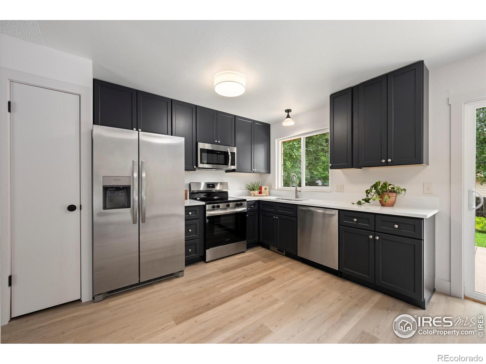 This one is all new! Inside you will find new flooring throughout, new cabinets, quartz counters, stainless appliances, paint, bathrooms, even a brand new roof! Don't foget the wood burning fireplace for relaxing warmth in the winter. Outside you will find a private backyard with mature landscaping and a large east facing concrete patio for shady dinners in the evening. The home is located in the popular Larkborough neighborhood, just two blocks from Troutman Park and two blocks to the Max station. Commuting anywhere from this south Fort Collins location will be a breeze. This one is literally completely turn-key so all you have to do is move right in!